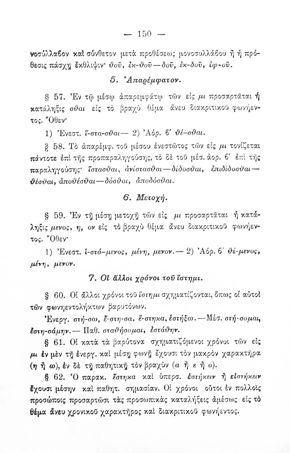 Σχολικό εγχειρίδιο Αρχαίων Ελληνικών για τα Ελληνικά Σχολεία, Παρθεναγωγεία και Γυμνάσια που περιέχει τους κανόνες γραμματικής και είναι χωρισμένο σε φθογγολογικό, τυπολογικό και ετυμολογικό μέρος.