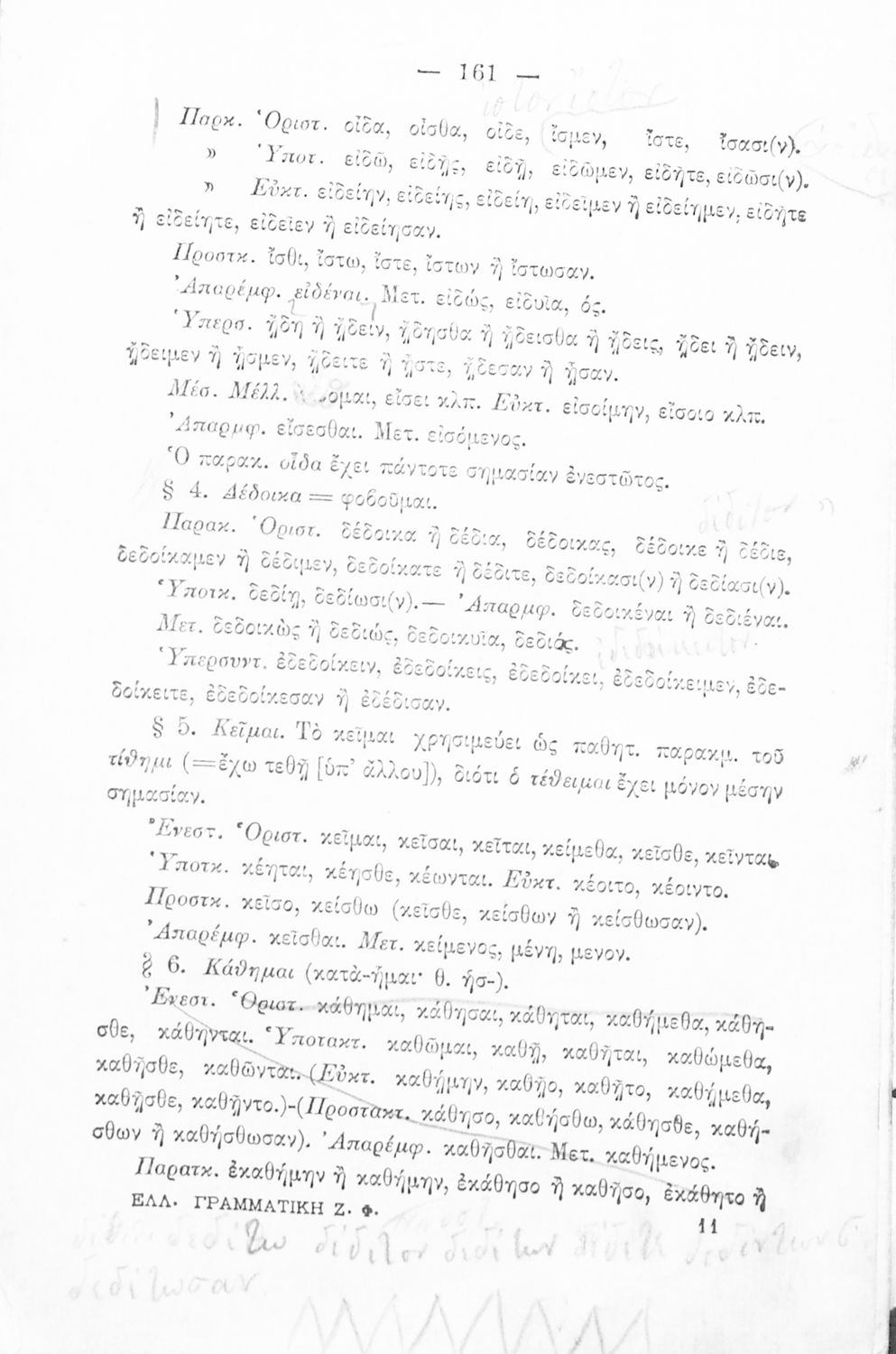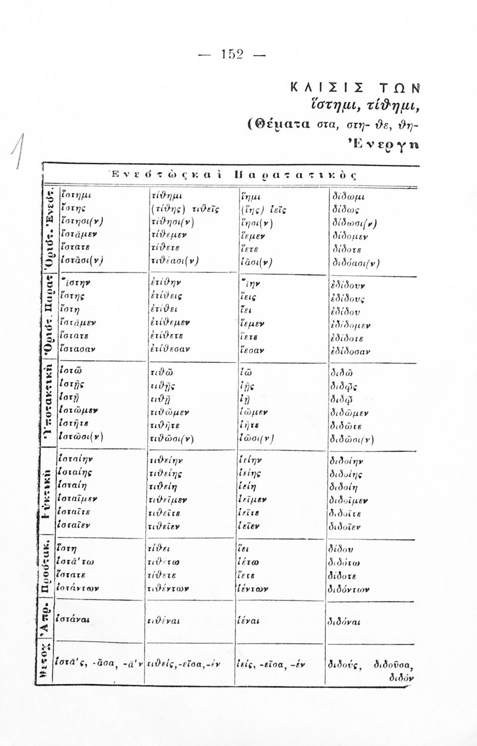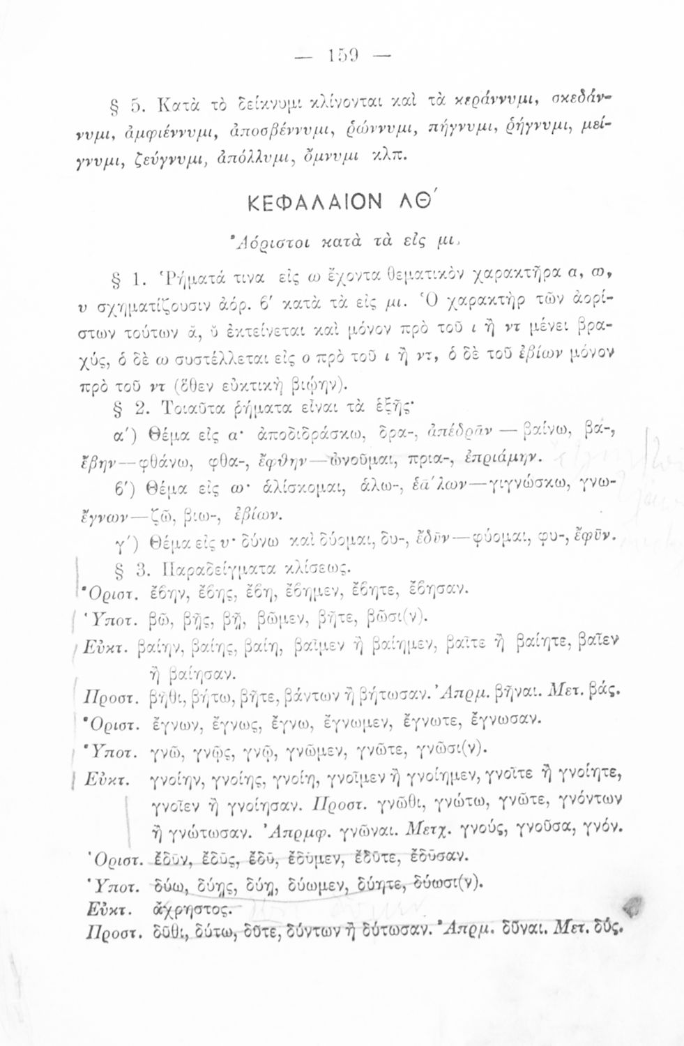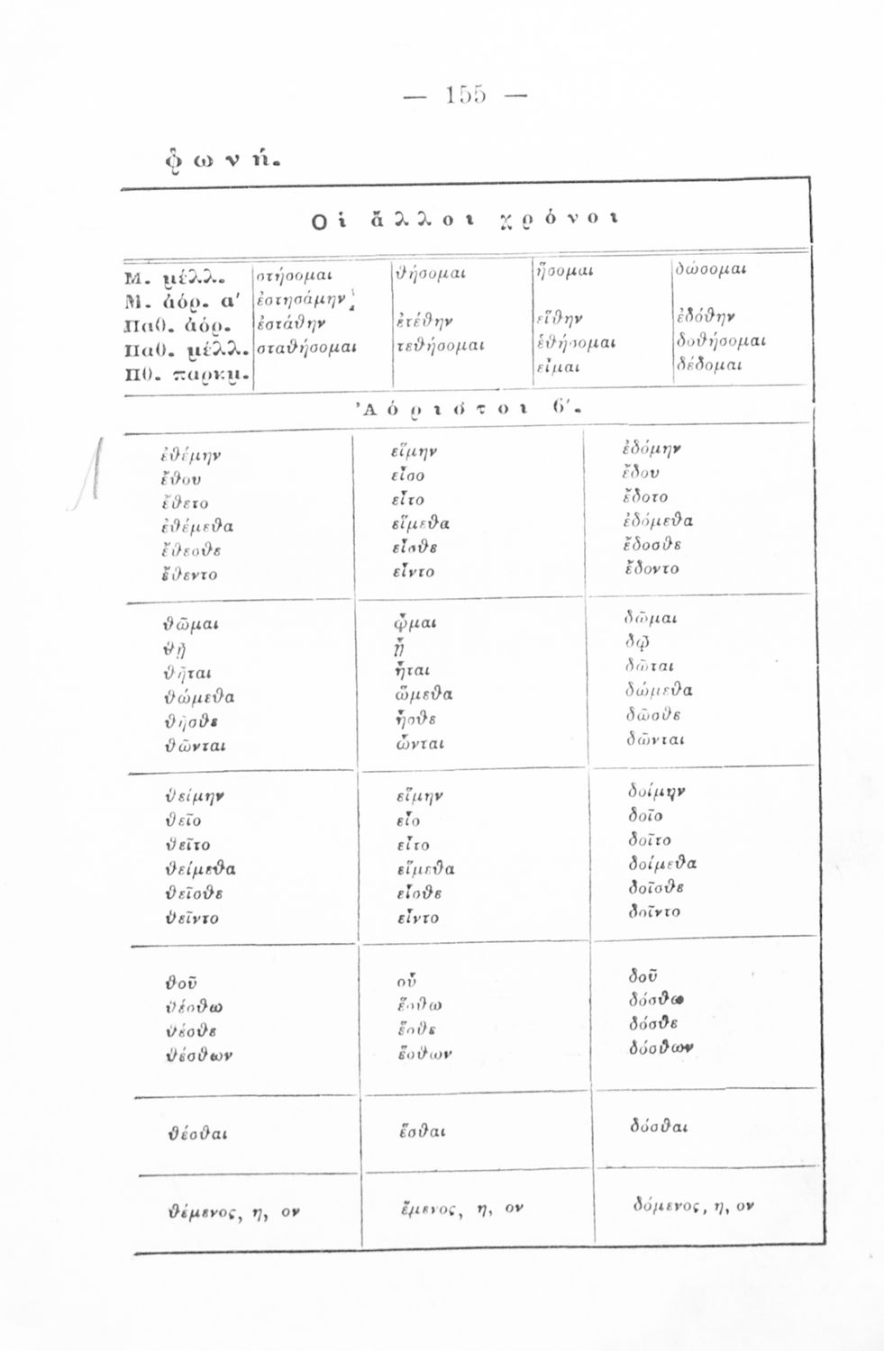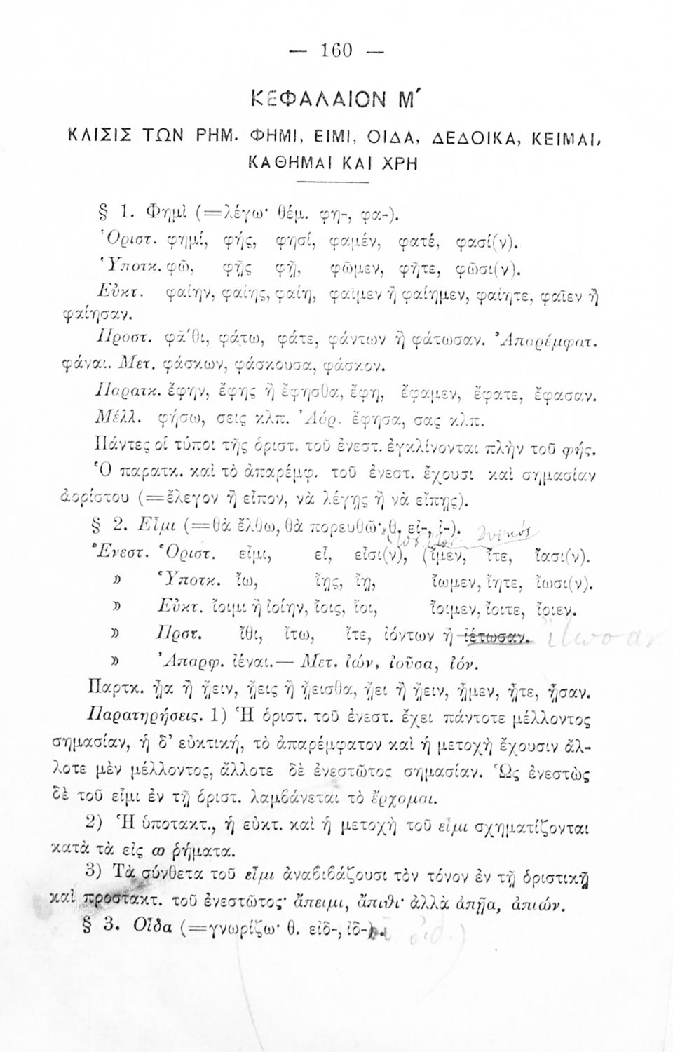 Σχολικό εγχειρίδιο Αρχαίων Ελληνικών Γυμνασίου που περιλαμβάνει τη γραμματική της αρχαίας ελληνικής και είναι χωρισμένο σε φθογγολογικό και τυπολογικό μέρος Περιέχει και κατάλογο ανωμάλων ρημάτων.