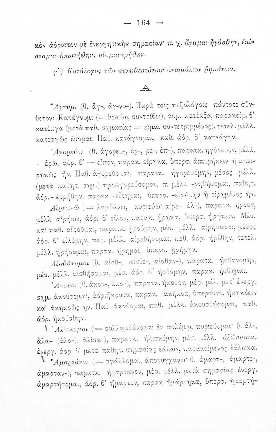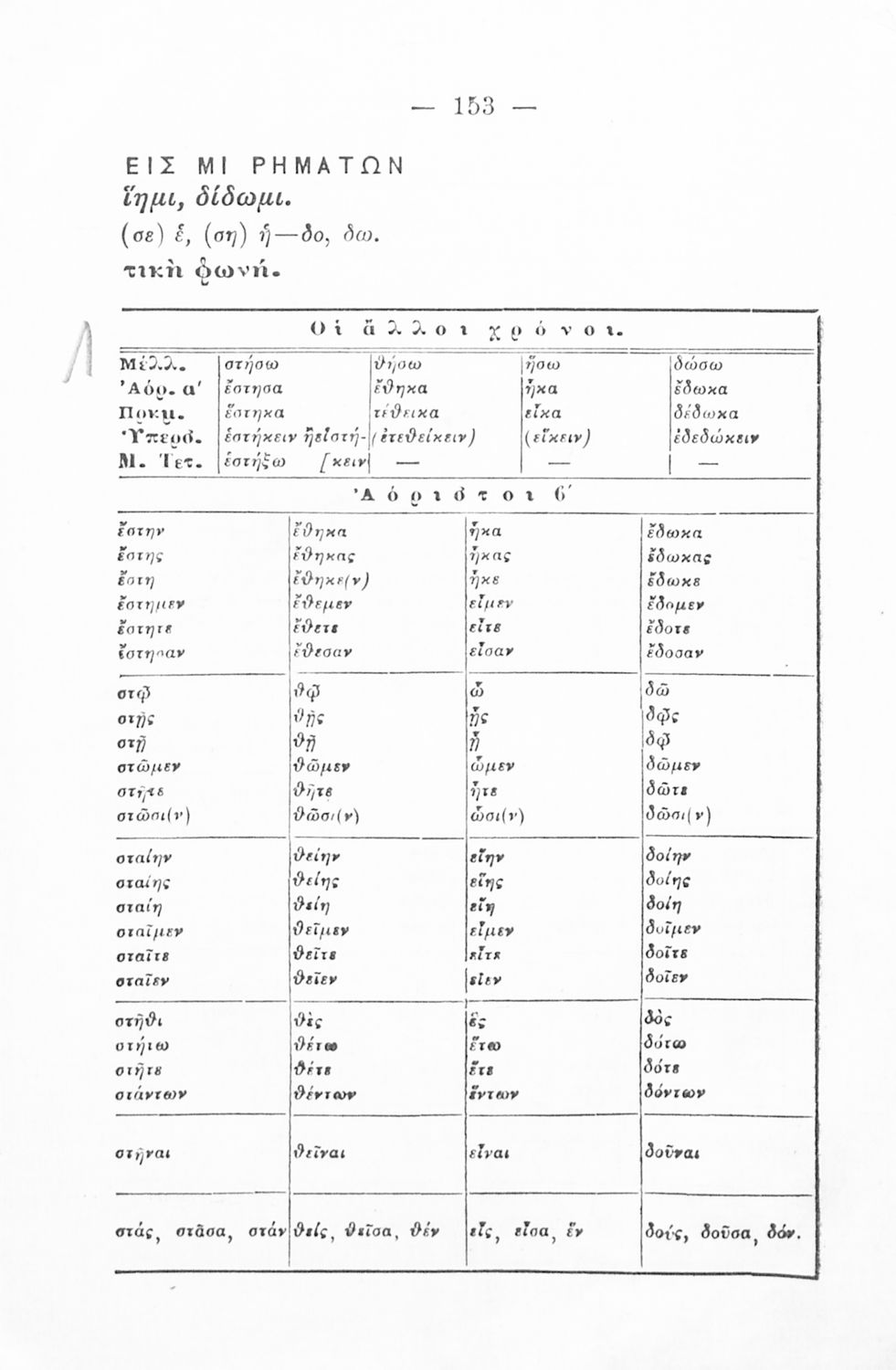 Μαθητικό βοήθημα Αρχαίων Ελληνικών για τα Ελληνικά Σχολεία, Παρθεναγωγεία και Γυμνάσια που περιλαμβάνει γραμματική της αρχαίας ελληνικής και κατάλογο ανωμάλων ρημάτων.