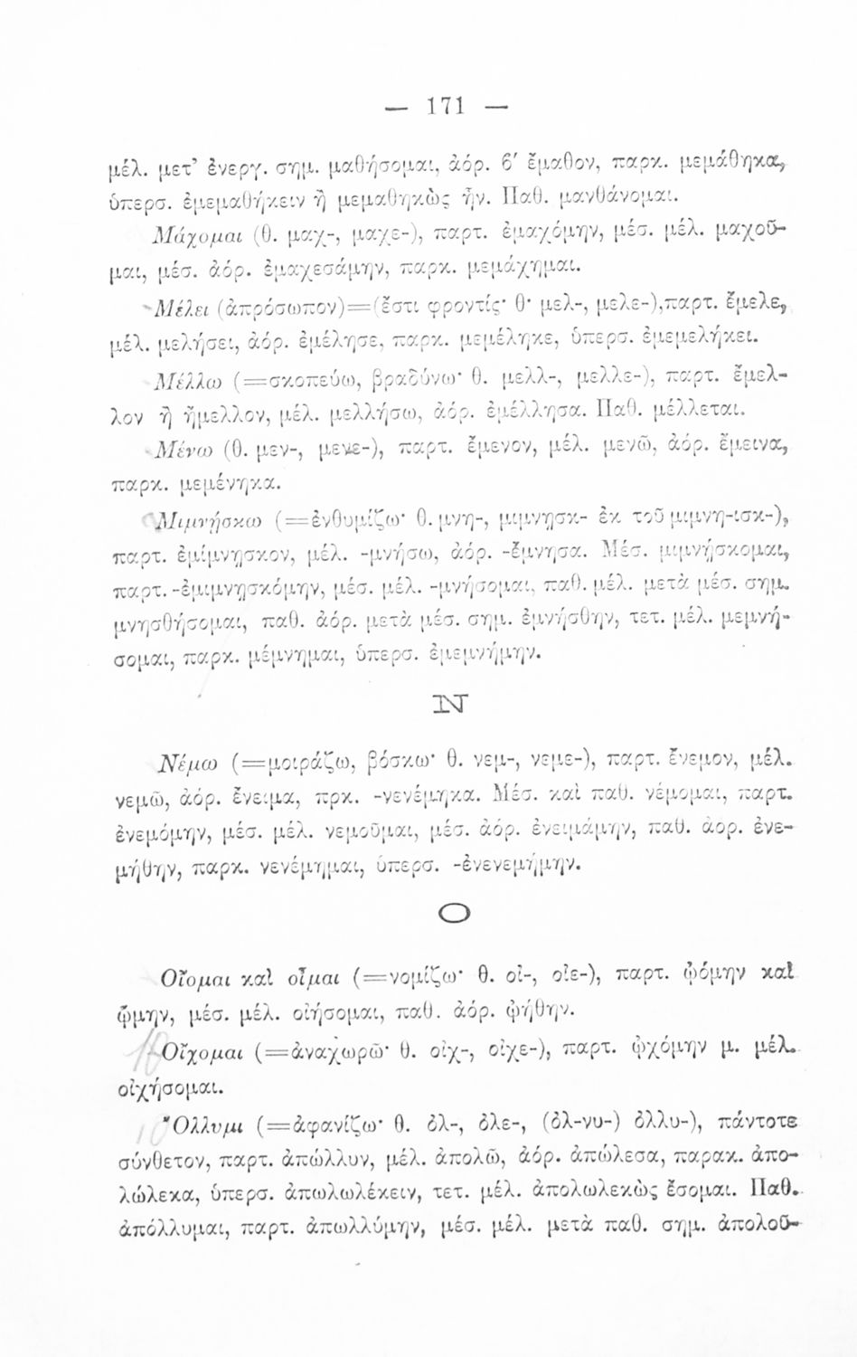 Μαθητικό βοήθημα Αρχαίων Ελληνικών για τα Ελληνικά Σχολεία, Παρθεναγωγεία και Γυμνάσια που περιλαμβάνει γραμματική της αρχαίας ελληνικής και κατάλογο ανωμάλων ρημάτων.