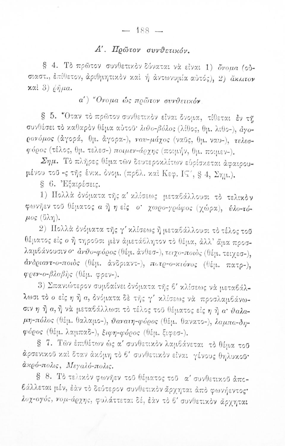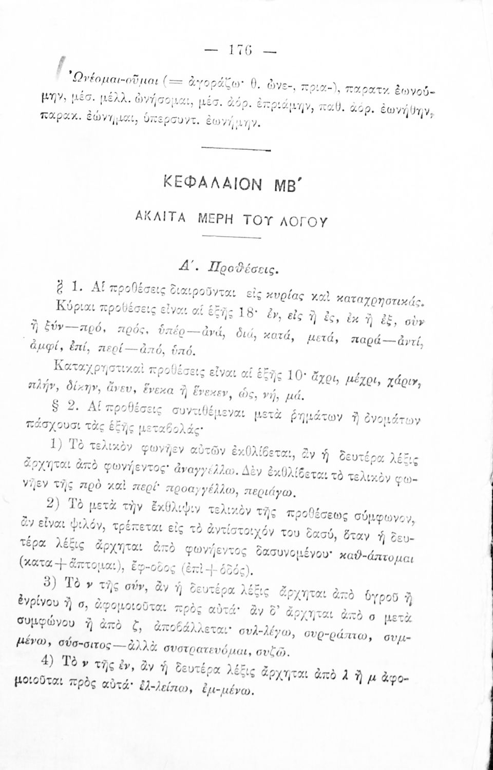 Σχολικό εγχειρίδιο Αρχαίων Ελληνικών για τα Ελληνικά Σχολεία, Παρθεναγωγεία και Γυμνάσια που περιέχει τους κανόνες γραμματικής και είναι χωρισμένο σε φθογγολογικό, τυπολογικό και ετυμολογικό μέρος.