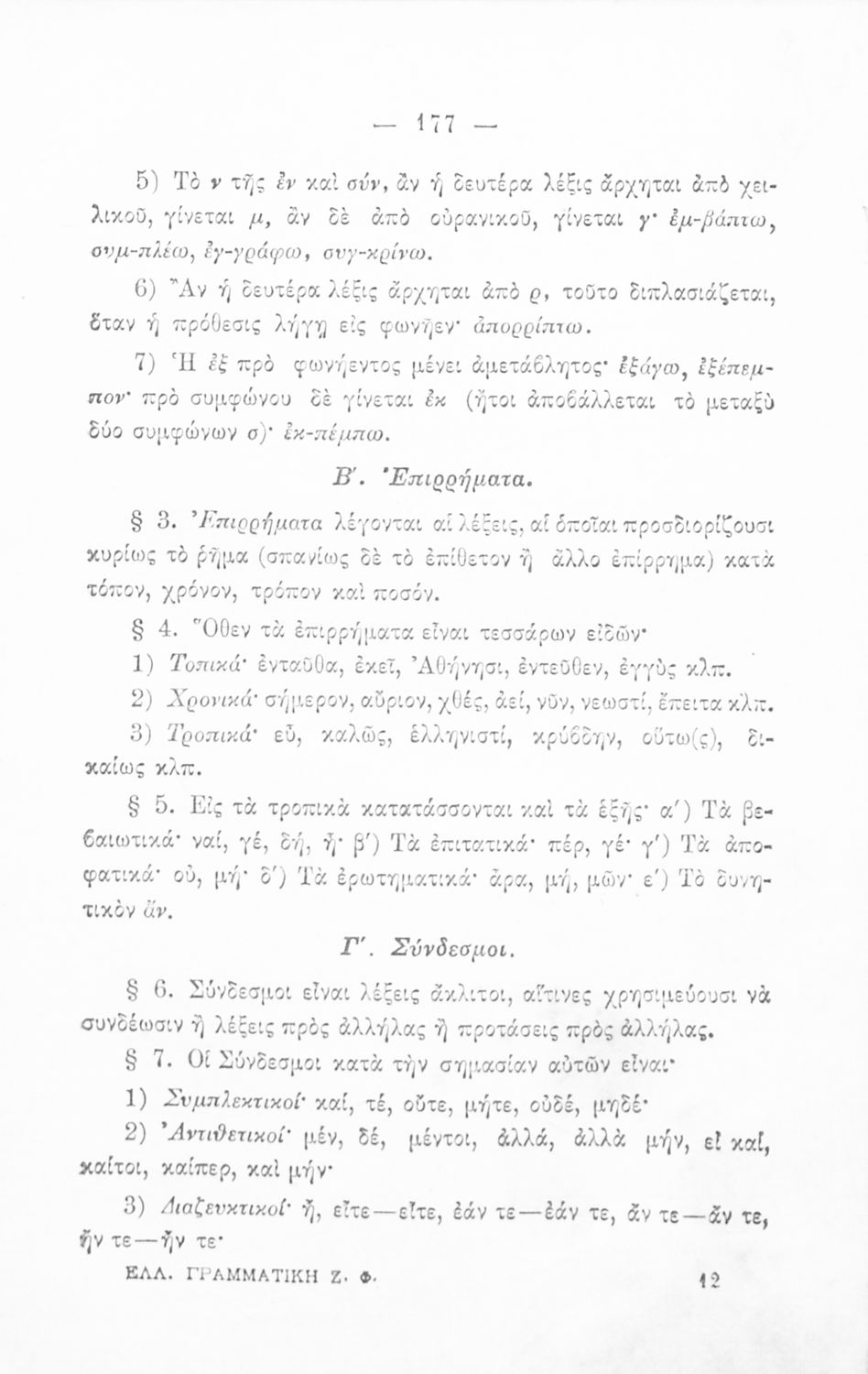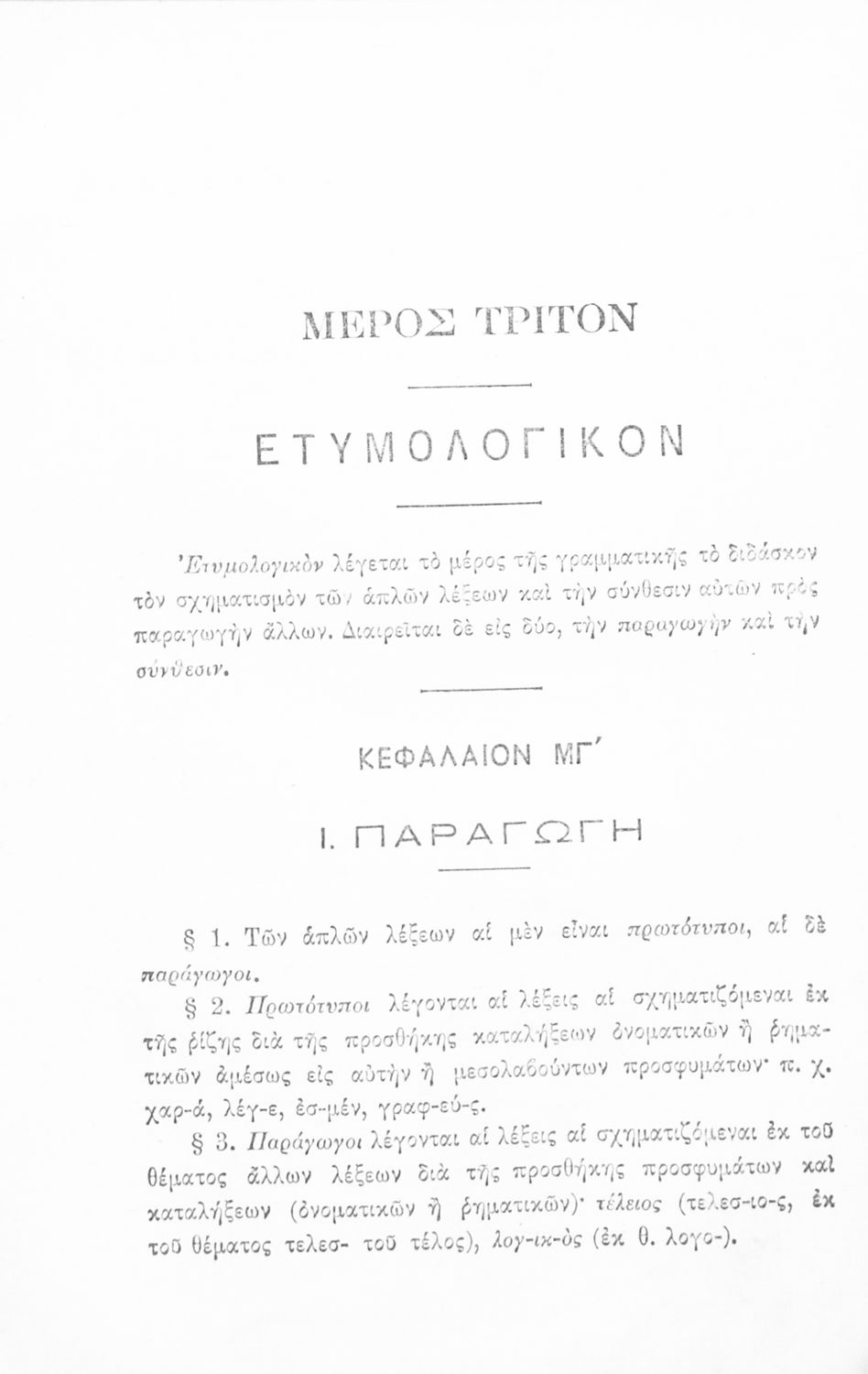 Σχολικό εγχειρίδιο Αρχαίων Ελληνικών για τα Ελληνικά Σχολεία και Παρθεναγωγεία που περιέχει τους κανόνες γραμματικής και είναι χωρισμένο σε φθογγολογικό, τυπολογικό και ετυμολογικό μέρος.