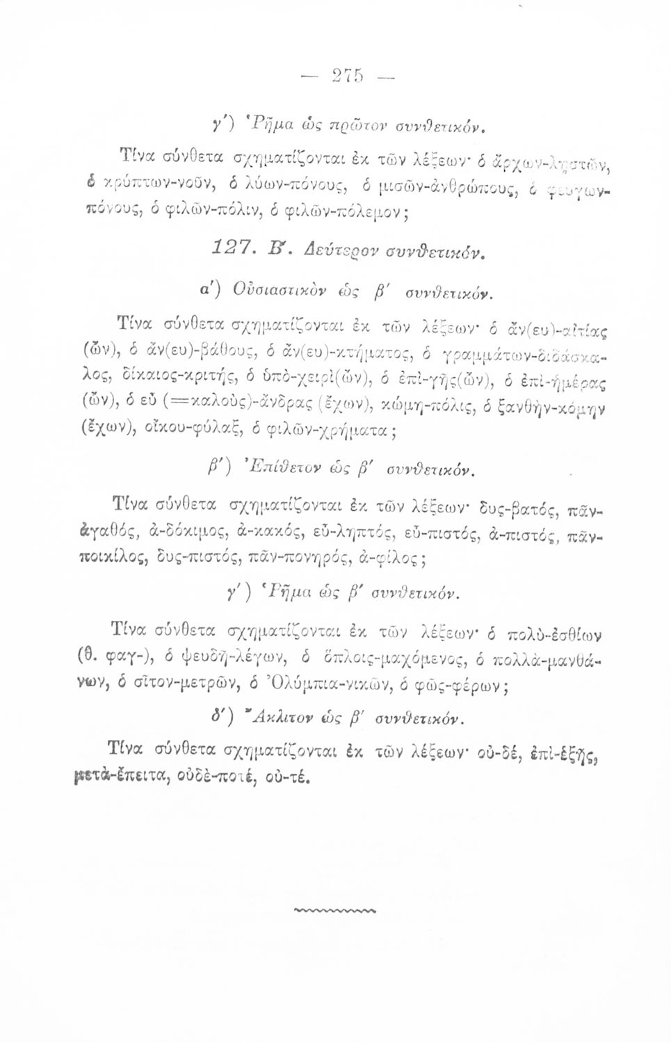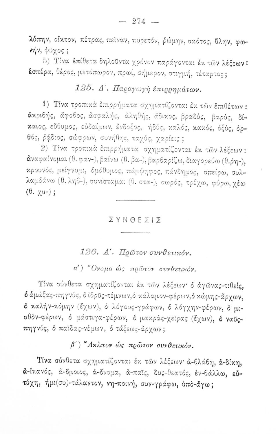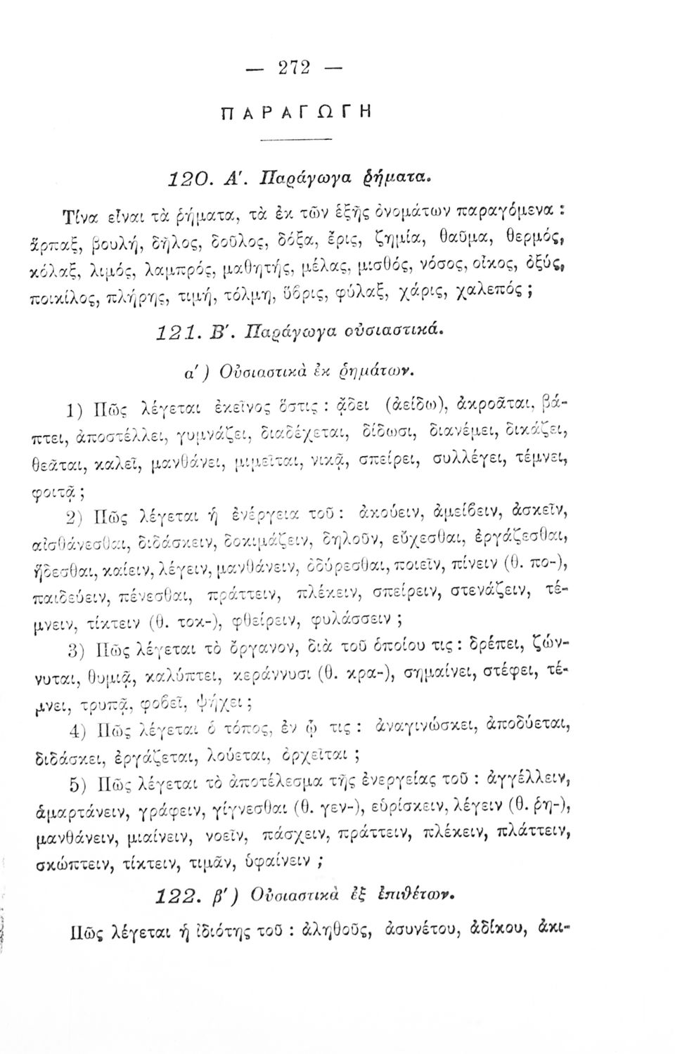 Σχολικό εγχειρίδιο Αρχαίων Ελληνικών για τα Ελληνικά Σχολεία, Παρθεναγωγεία και Γυμνάσια που περιέχει τους κανόνες γραμματικής και είναι χωρισμένο σε φθογγολογικό, τυπολογικό και ετυμολογικό μέρος.