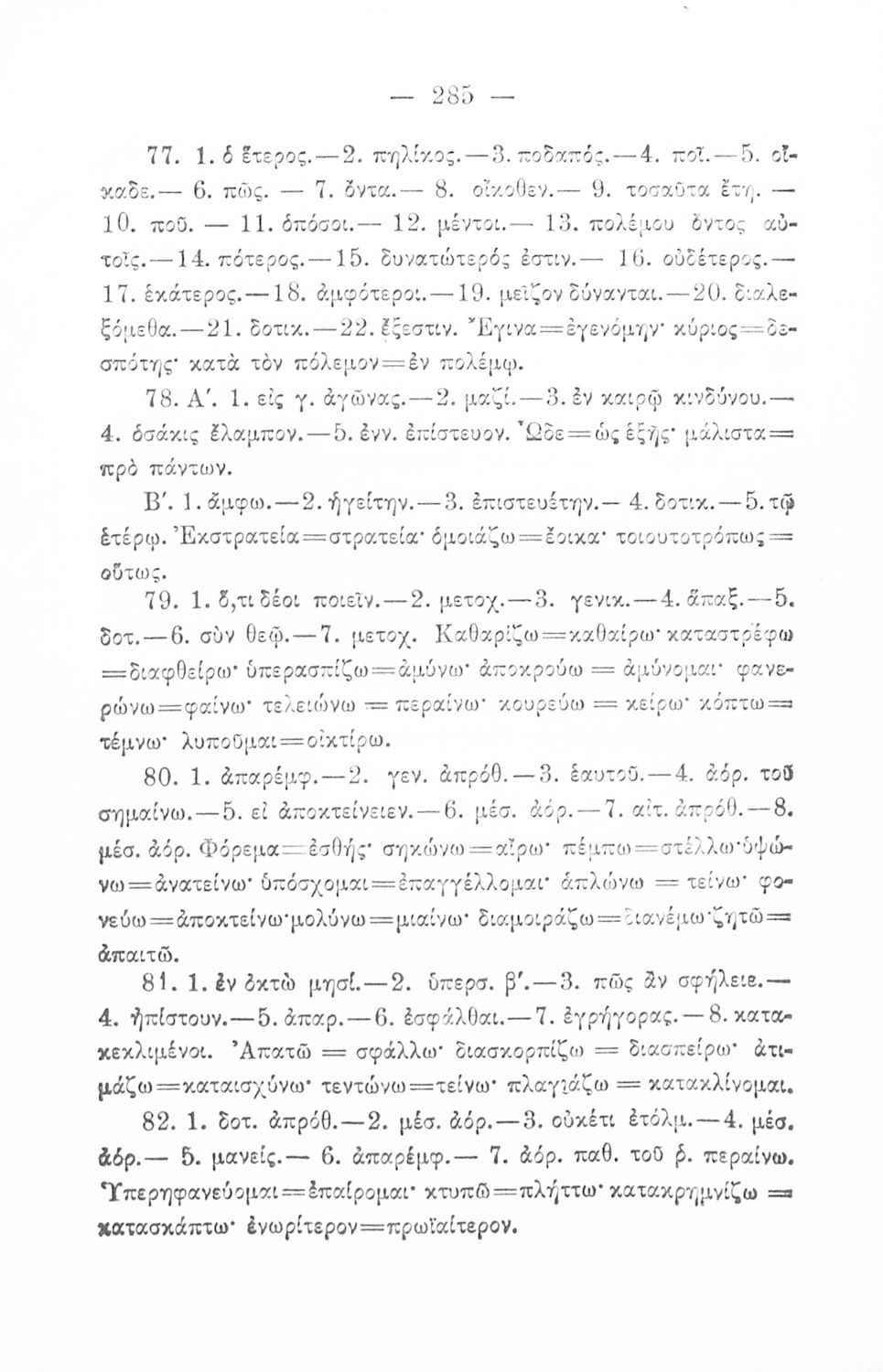 Μαθητικό βοήθημα Αρχαίων Ελληνικών για τα Ελληνικά Σχολεία, Παρθεναγωγεία και Γυμνάσια που περιλαμβάνει γραμματική της αρχαίας ελληνικής και κατάλογο ανωμάλων ρημάτων.