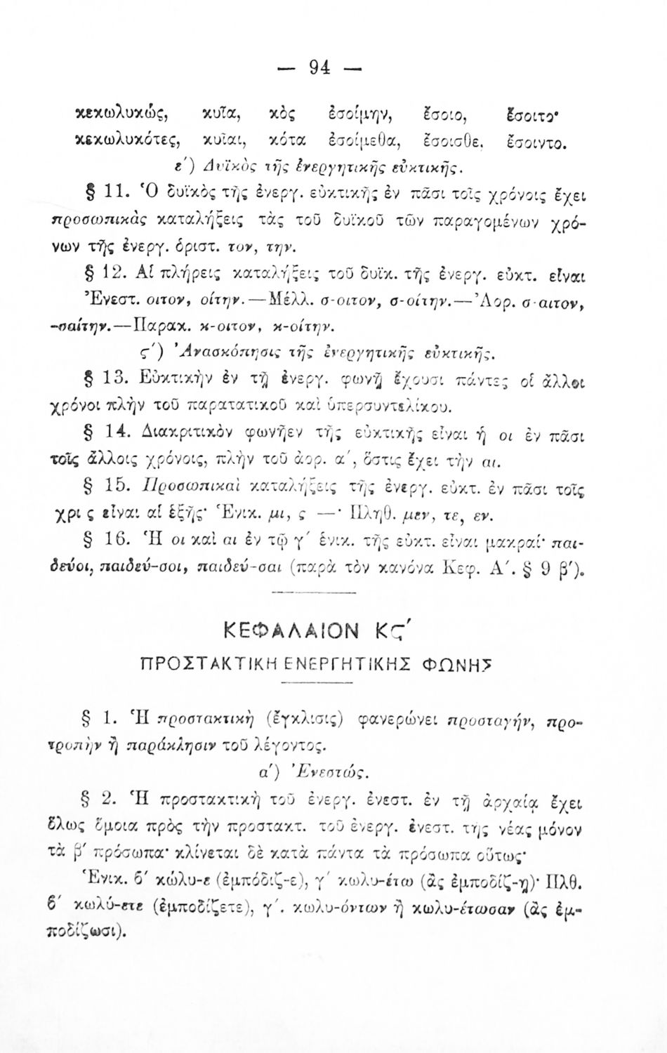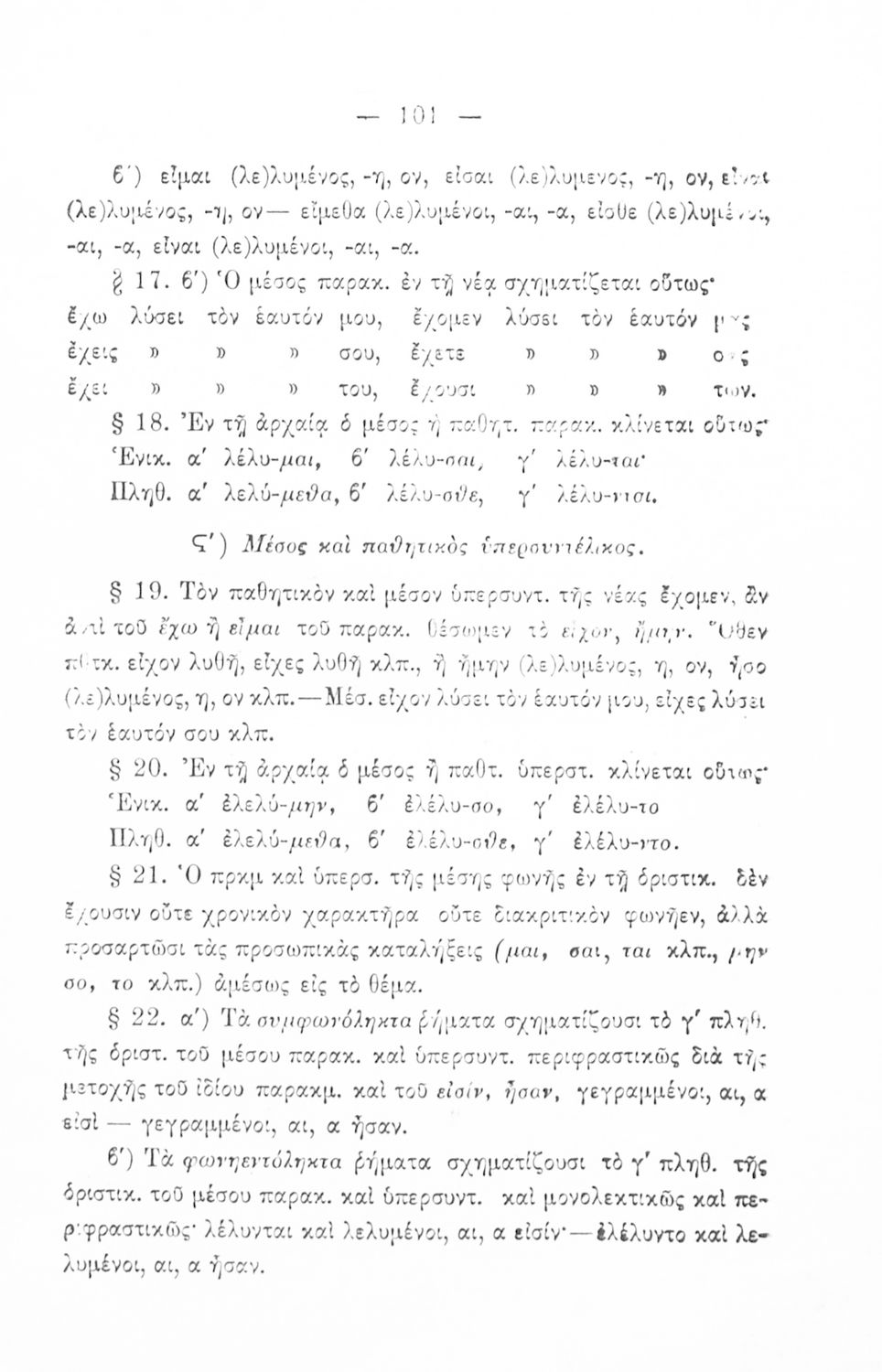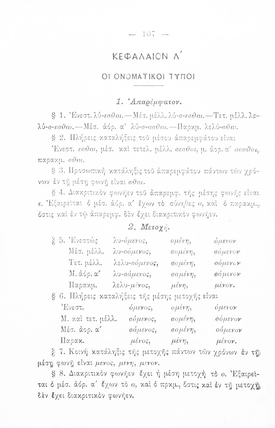 Σχολικό εγχειρίδιο Αρχαίων Ελληνικών Γυμνασίου που περιλαμβάνει τη γραμματική της αρχαίας ελληνικής και είναι χωρισμένο σε φθογγολογικό και τυπολογικό μέρος Περιέχει και κατάλογο ανωμάλων ρημάτων.