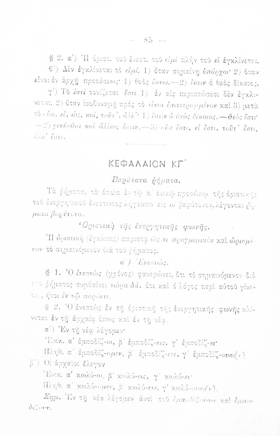 Σχολικό εγχειρίδιο Αρχαίων Ελληνικών για τα Ελληνικά Σχολεία, Παρθεναγωγεία και Γυμνάσια που περιέχει τους κανόνες γραμματικής και είναι χωρισμένο σε φθογγολογικό, τυπολογικό και ετυμολογικό μέρος.