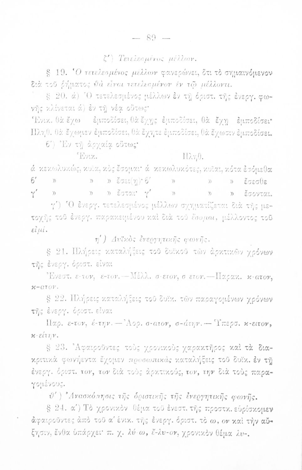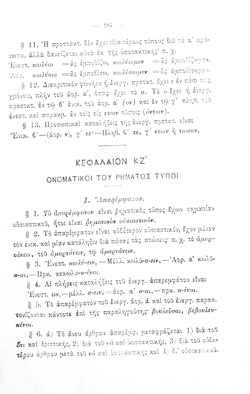 Σχολικό εγχειρίδιο Αρχαίων Ελληνικών για τα Ελληνικά Σχολεία και Παρθεναγωγεία που περιέχει τους κανόνες γραμματικής και είναι χωρισμένο σε φθογγολογικό, τυπολογικό και ετυμολογικό μέρος.