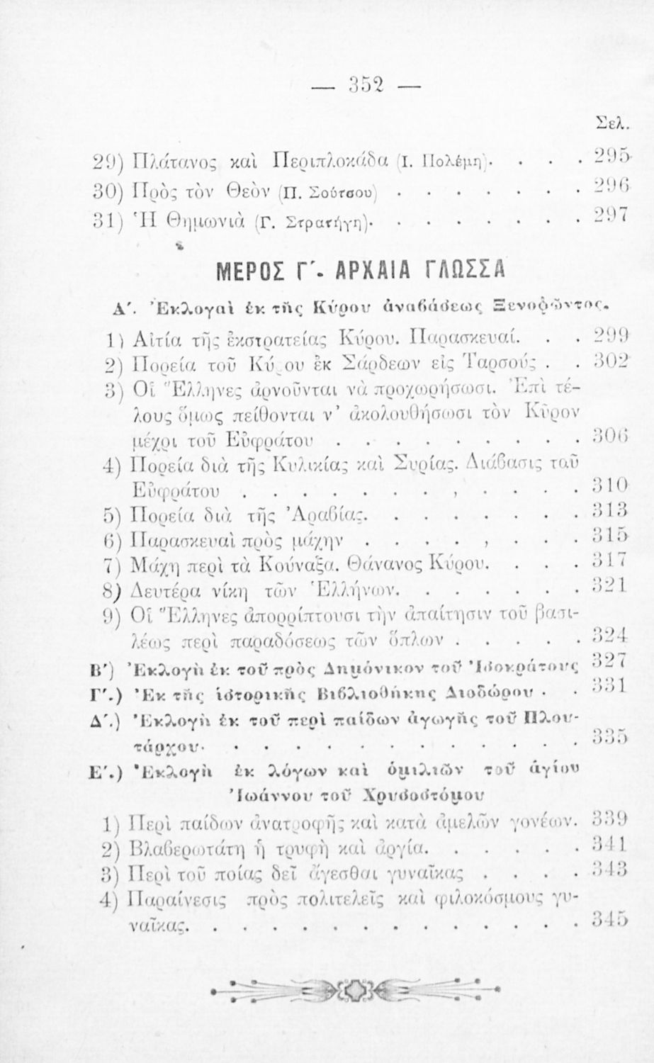 Κωδικός αναγνώρισης: 02-02168 Τίτλος: Αναγνώσματα της νέας και αρχαίας ελληνικής γλώσσης προς χρήσιν των Αστικών Σχολών και Παρθεναγωγείων έτος σχολικόν ΣΤ΄ δια την τελευταίαν τάξιν των Αστικών ή Β΄ των Ελληνικών Σχολείων Συγγραφέας: Πλάτων Κριτόβουλος Μέγεθος και υπόστρωμα: Σχολικό εγχειρίδιο, σκληρό εξώφυλλο, 352 σελίδες. |