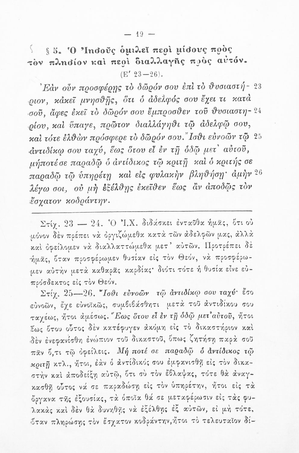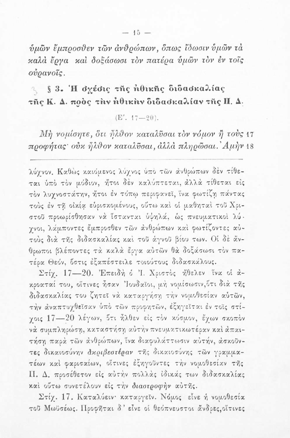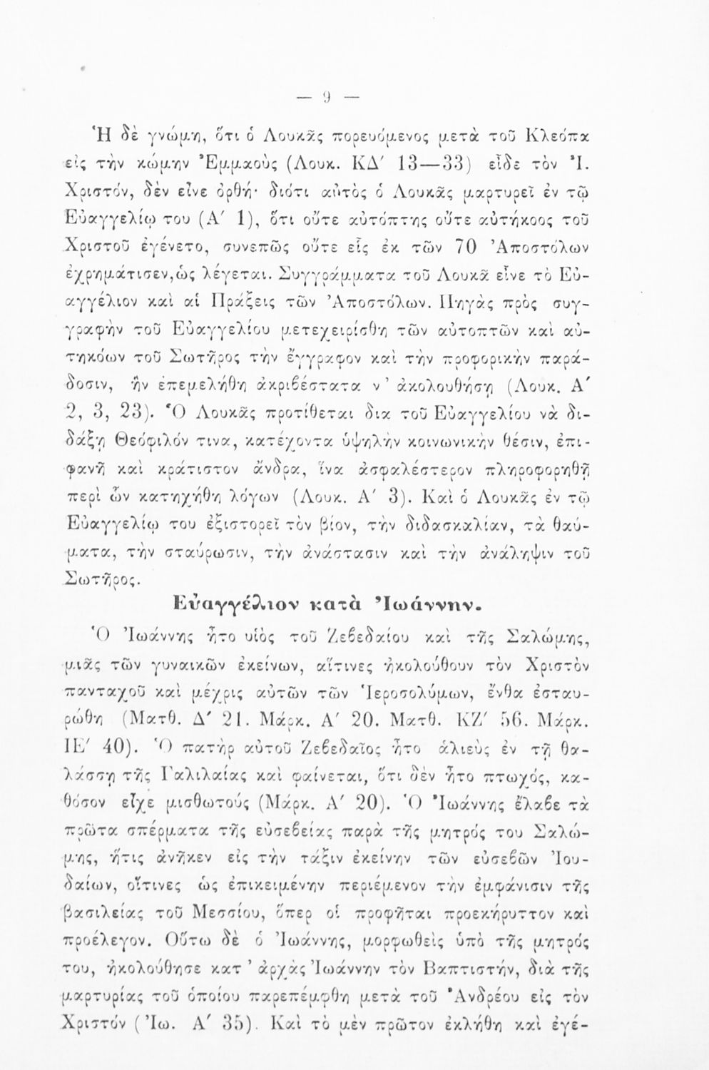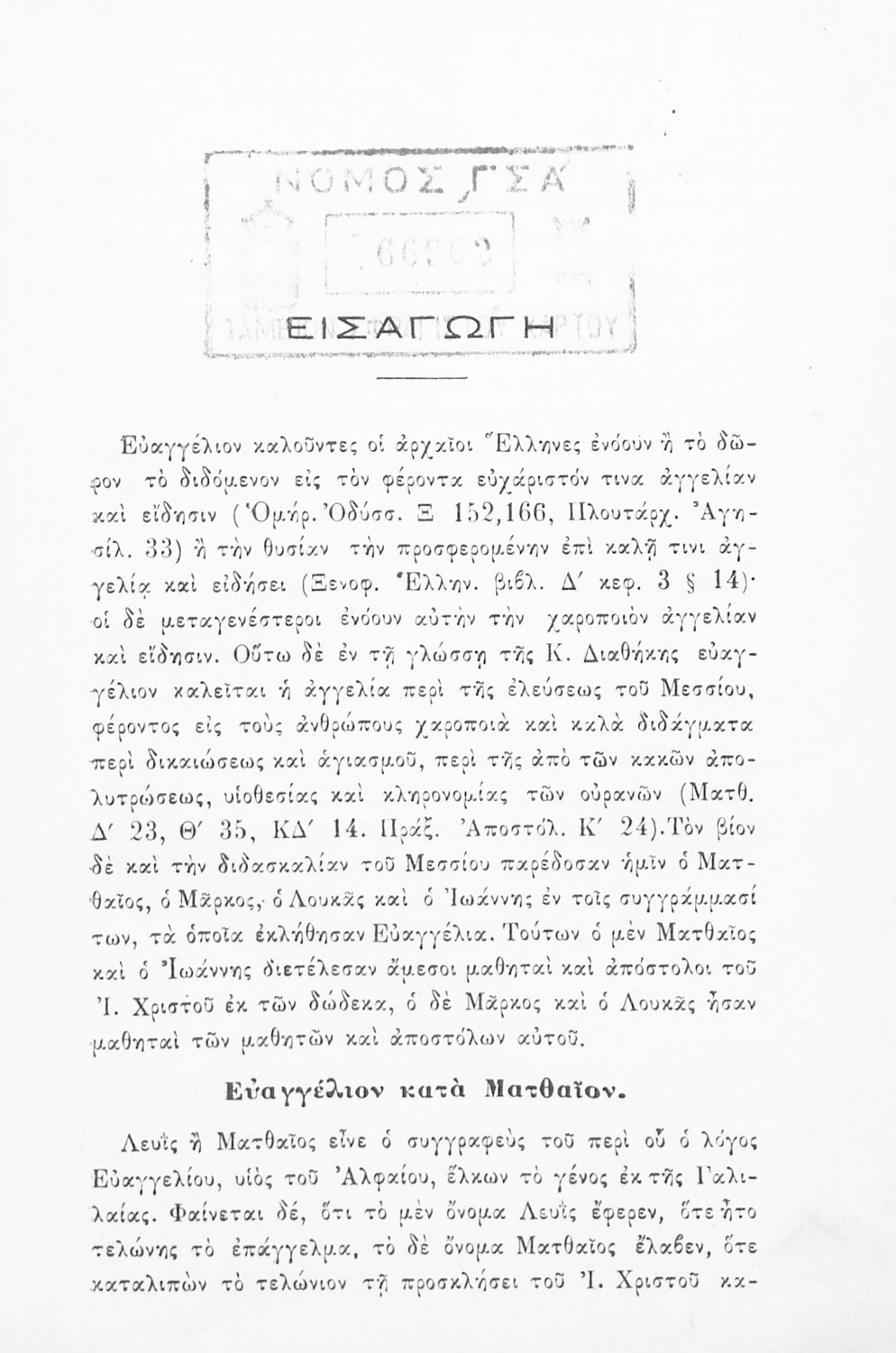 Σχολικό εγχειρίδιο Θρησκευτικών για την Γ΄ Γυμνασίου, τα Διδασκαλεία και τα Ανώτερα Παρθεναγωγεία που περιέχει περικοπές από τα βιβλία της Καινής Διαθήκης και ερμηνευτικές σημειώσεις.