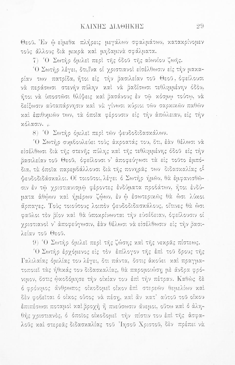 Σχολικό εγχειρίδιο Θρησκευτικών για τα Ελληνικά Σχολεία και Παρθεναγωγεία που συνιστά μία εξιστόρηση της Καινής Διαθήκης από τη γέννηση της Θεοτόκου ως την ανάληψη του Χριστού και τη δράση των Αποστόλων.