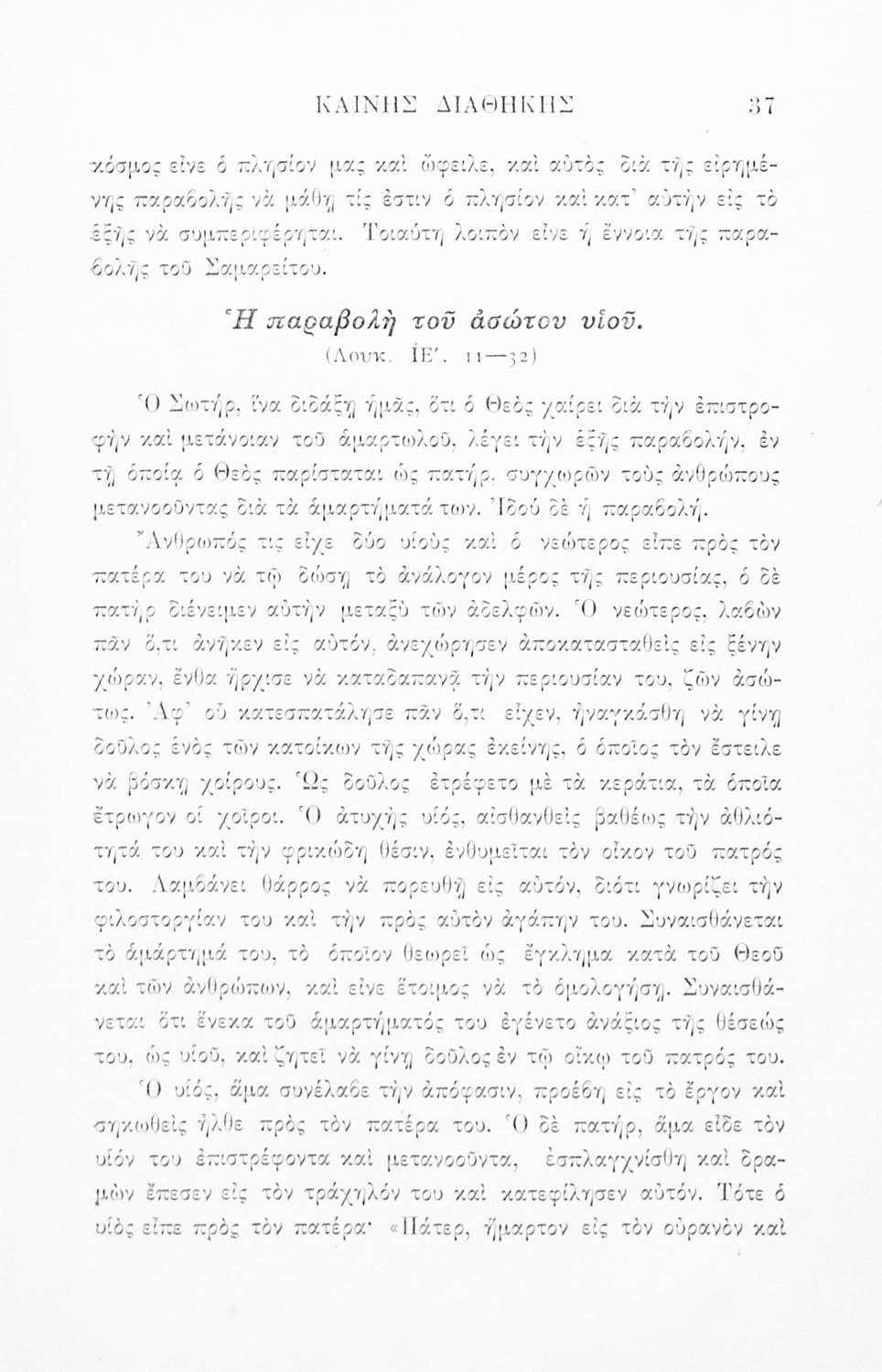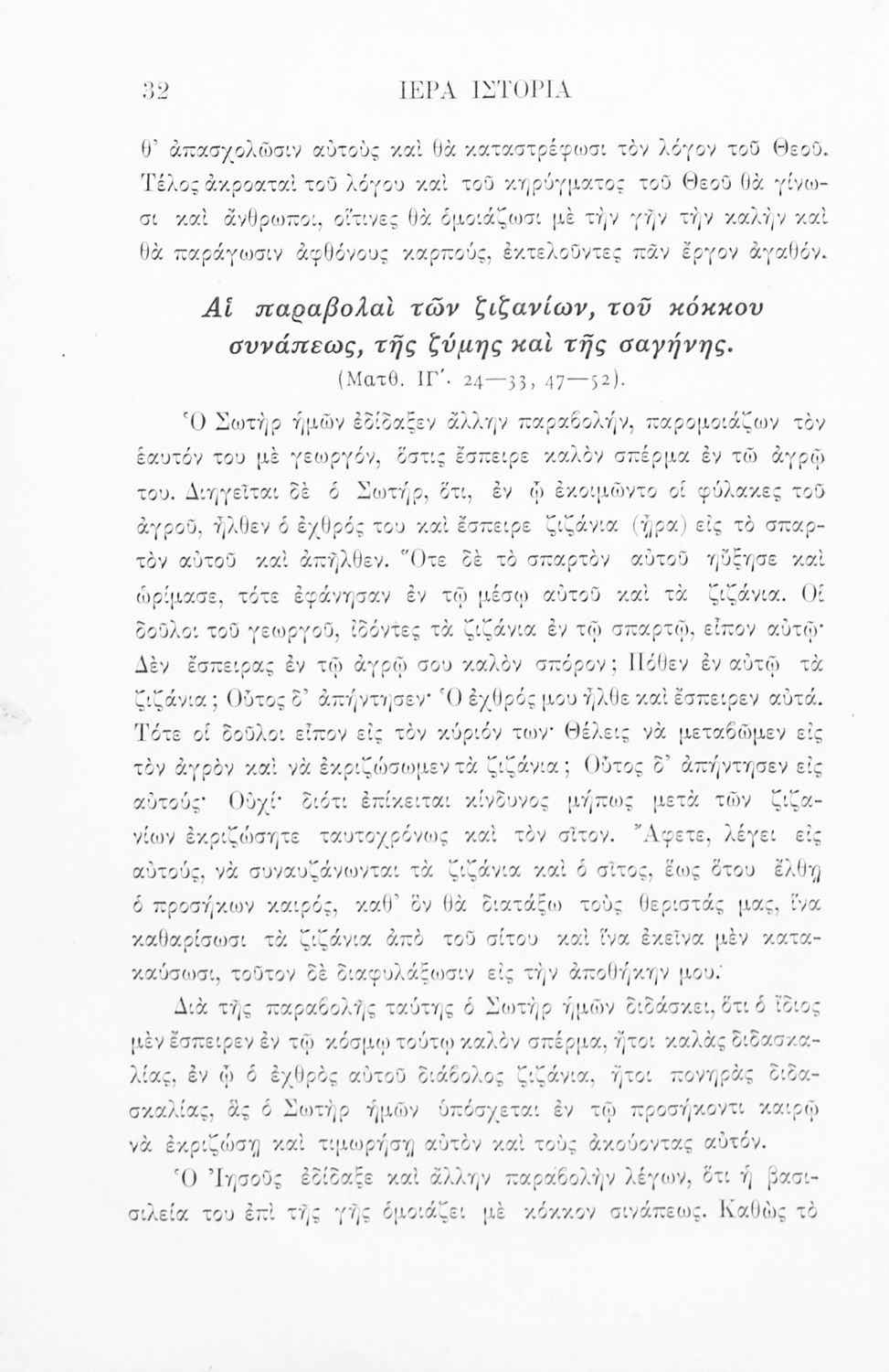 Σχολικό εγχειρίδιο Θρησκευτικών για τα Ελληνικά Σχολεία και τα Παρθεναγωγεία που αποτελεί μια εξιστόρηση της Καινής Διαθήκης από την γέννηση του Ιησού Χριστού ως το έργο των Αποστόλων