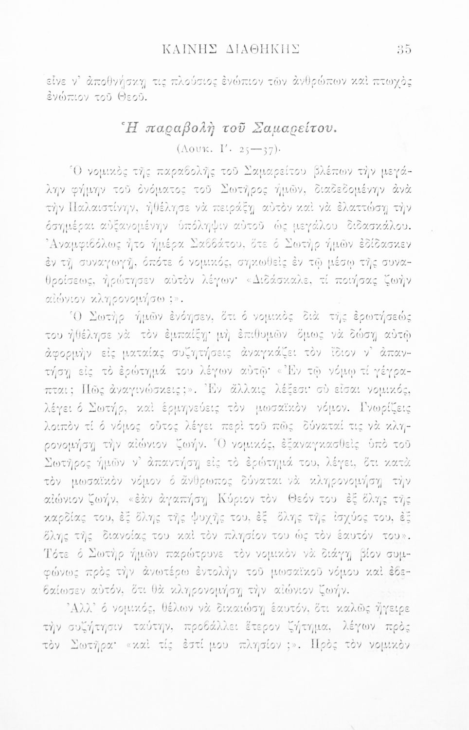 Σχολικό εγχειρίδιο Θρησκευτικών για τα Ελληνικά Σχολεία και τα Παρθεναγωγεία που περιλαμβάνει την ιστορία της Καινής Διαθήκης από τον Ευαγγελισμό της Θεοτόκου μέχρι την ανάληψη του Ιησού Χριστού