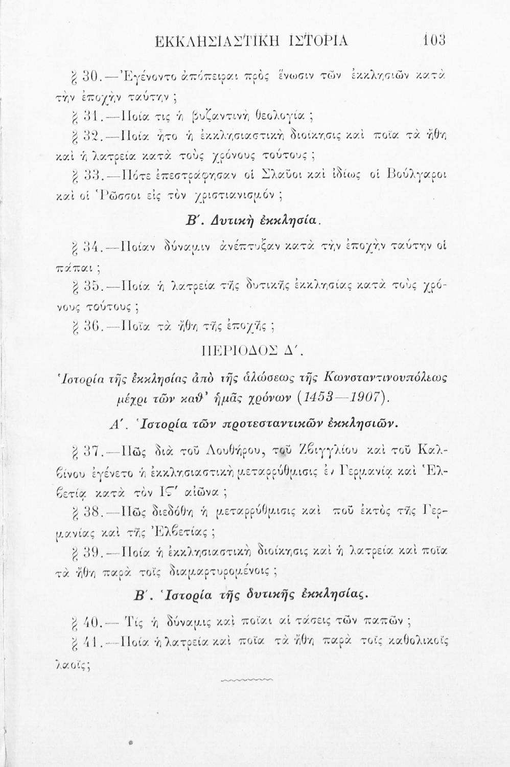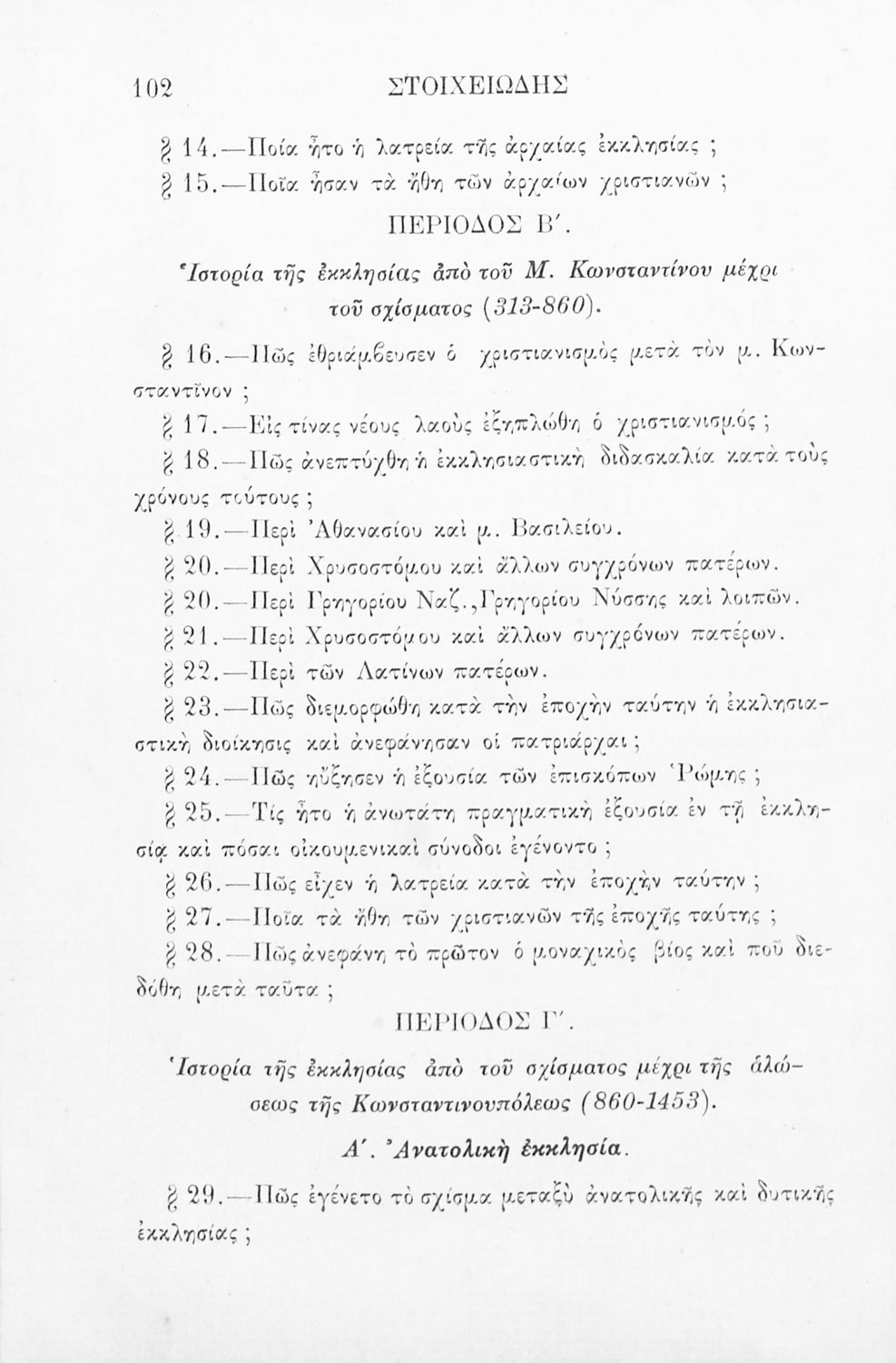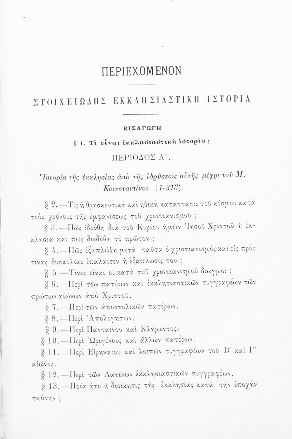 520 ## _aΣχολικό εγχειρίδιο Εκκλησιαστικής Ιστορίας δομημένο ιστορικά με βάση το σχίσμα των εκκλησιών σε ανατολική και δυτική και την άλωση της Κωνσταντινούπολης. Το εγχειρίδιο εγκρίθηκε από την Ιερά Σύνοδο. Ο συγγραφέας ήταν καθηγητής Θεολογίας στο Εθνικό Πανεπιστήμιο.