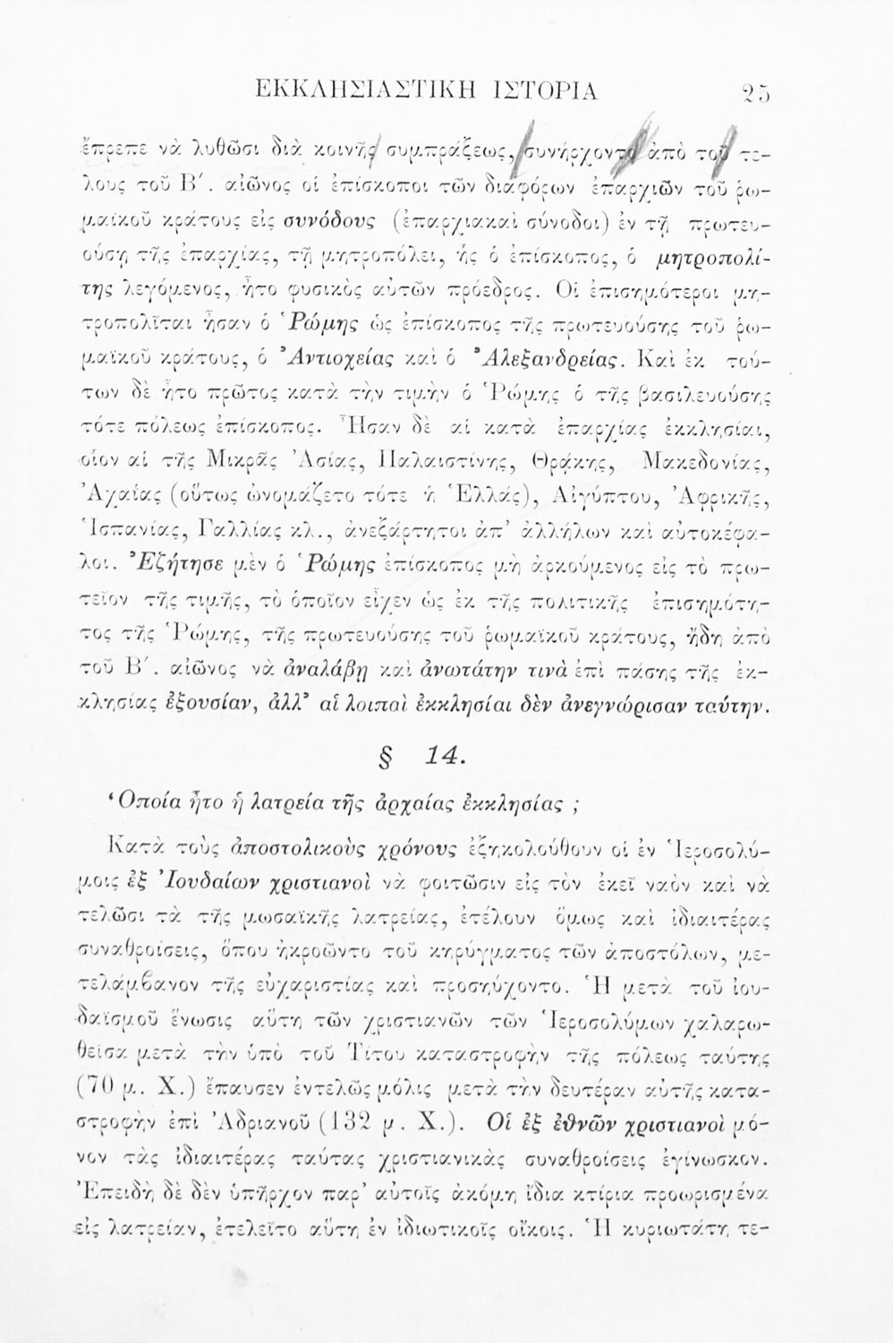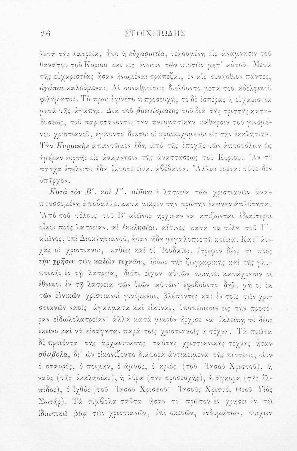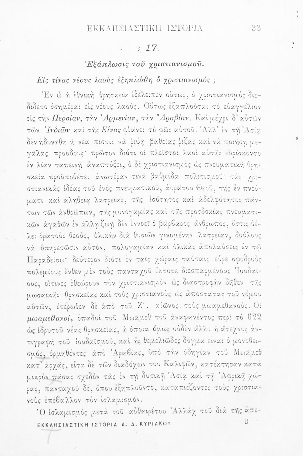 Σχολικό εγχειρίδιο Εκκλησιαστικής Ιστορίας δομημένο ιστορικά με βάση το σχίσμα των εκκλησιών σε ανατολική και δυτική και την άλωση της Κωνσταντινούπολης. Το εγχειρίδιο εγκρίθηκε από την Ιερά Σύνοδο. Ο συγγραφέας ήταν καθηγητής Θεολογίας στο Εθνικό Πανεπιστήμιο.