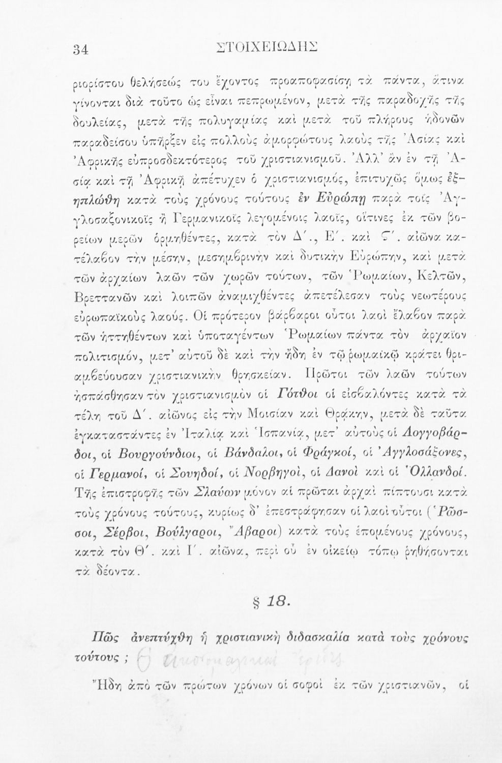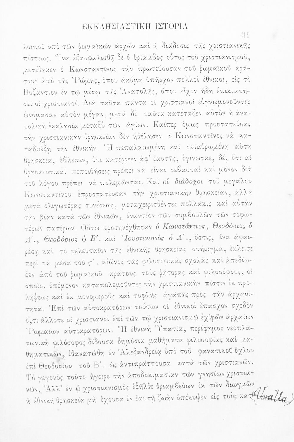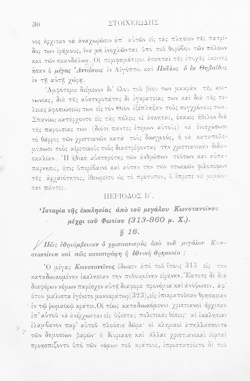 Σχολικό εγχειρίδιο Εκκλησιαστικής Ιστορίας δομημένο ιστορικά με βάση το σχίσμα των εκκλησιών σε ανατολική και δυτική και την άλωση της Κωνσταντινούπολης. Το εγχειρίδιο εγκρίθηκε από την Ιερά Σύνοδο. Ο συγγραφέας ήταν καθηγητής Θεολογίας στο Εθνικό Πανεπιστήμιο.