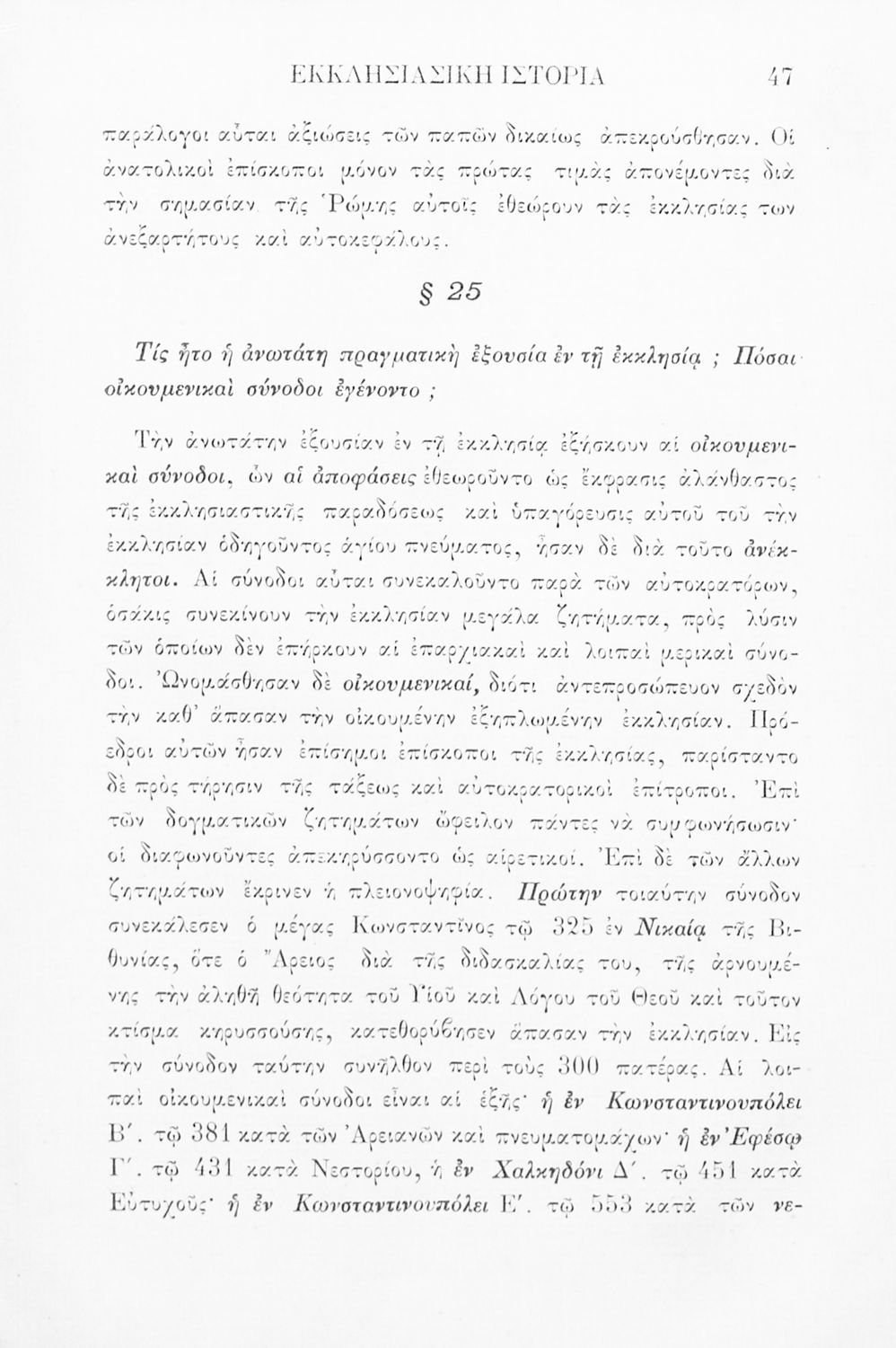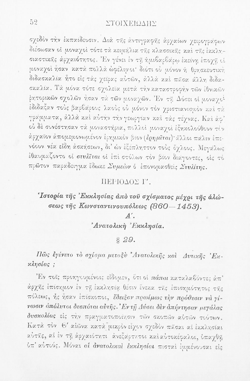 520 ## _aΣχολικό εγχειρίδιο Εκκλησιαστικής Ιστορίας δομημένο ιστορικά με βάση το σχίσμα των εκκλησιών σε ανατολική και δυτική και την άλωση της Κωνσταντινούπολης. Το εγχειρίδιο εγκρίθηκε από την Ιερά Σύνοδο. Ο συγγραφέας ήταν καθηγητής Θεολογίας στο Εθνικό Πανεπιστήμιο.