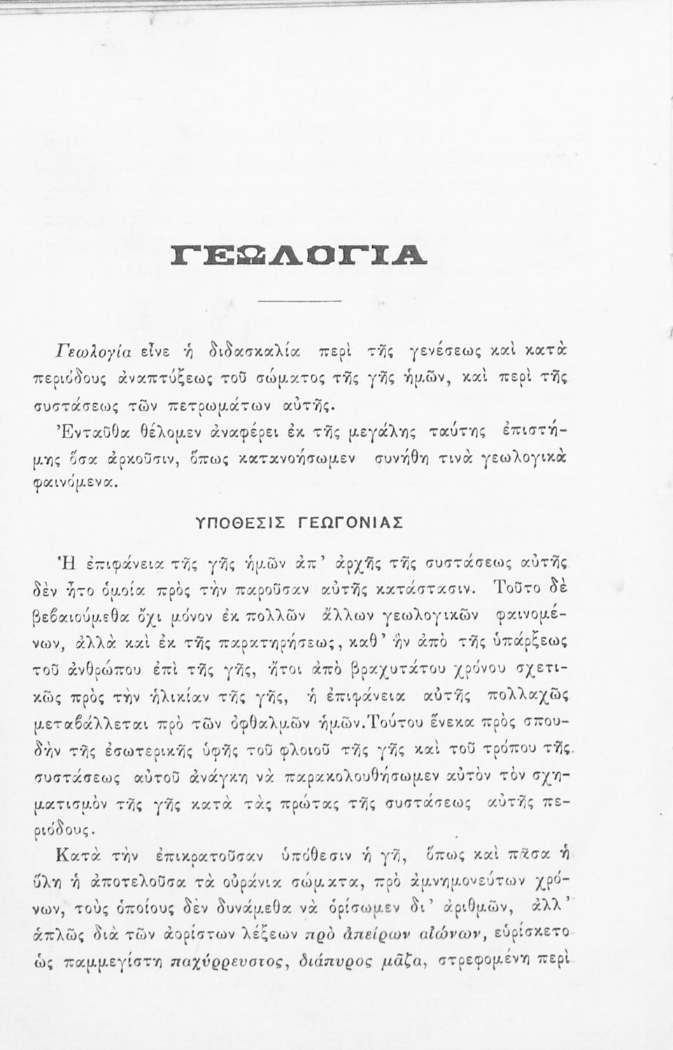Βαθμίδα εκπαίδευσης: Δευτεροβάθμια Τάξη: Β' Γυμνασίου Μάθημα: Γεωλογία Γλώσσα: Καθαρεύουσα Παρουσίαση περιεχομένου: Σχολικό εγχειρίδιο Γεωλογίας και Φυτολογίας Β΄ Γυμνασίου που παρουσιάζει τις διάφορες κατηγορίες φυτών και αναλύει τα μέρη από τα οποία αποτελούνται. Περιέχει και στοιχεία Γεωλογίας. |