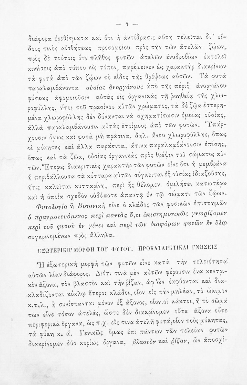 Βαθμίδα εκπαίδευσης: Δευτεροβάθμια Τάξη: Β' Γυμνασίου Μάθημα: Γεωλογία Γλώσσα: Καθαρεύουσα Παρουσίαση περιεχομένου: Σχολικό εγχειρίδιο Γεωλογίας και Φυτολογίας Β΄ Γυμνασίου που παρουσιάζει τις διάφορες κατηγορίες φυτών και αναλύει τα μέρη από τα οποία αποτελούνται. Περιέχει και στοιχεία Γεωλογίας. |