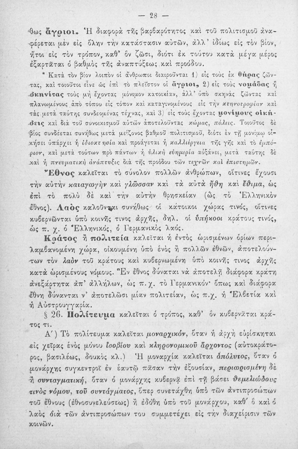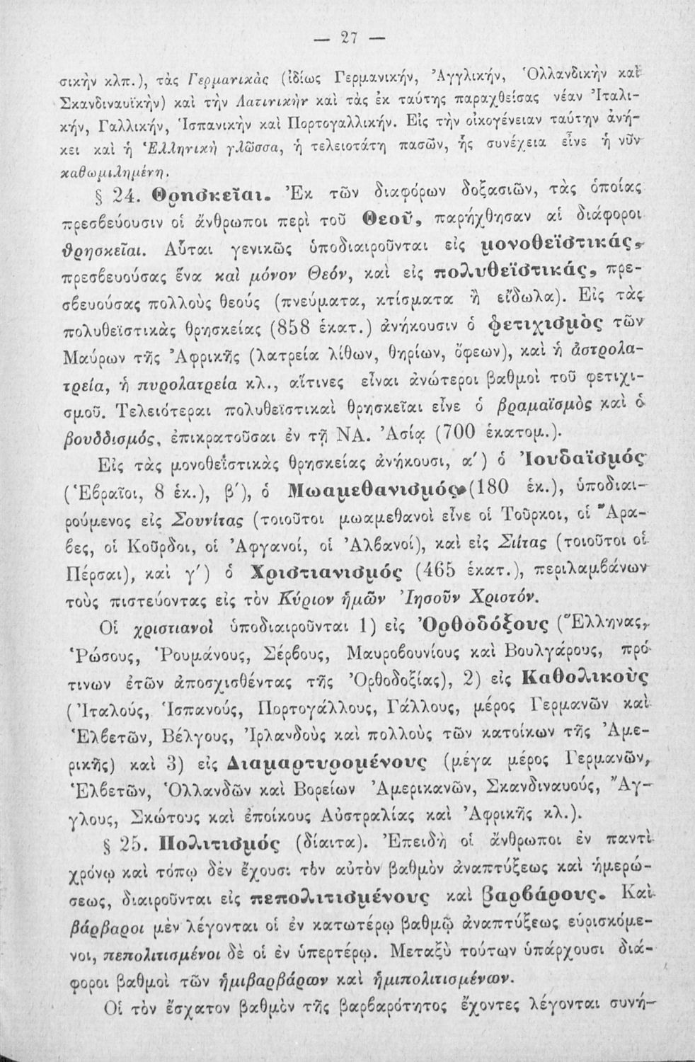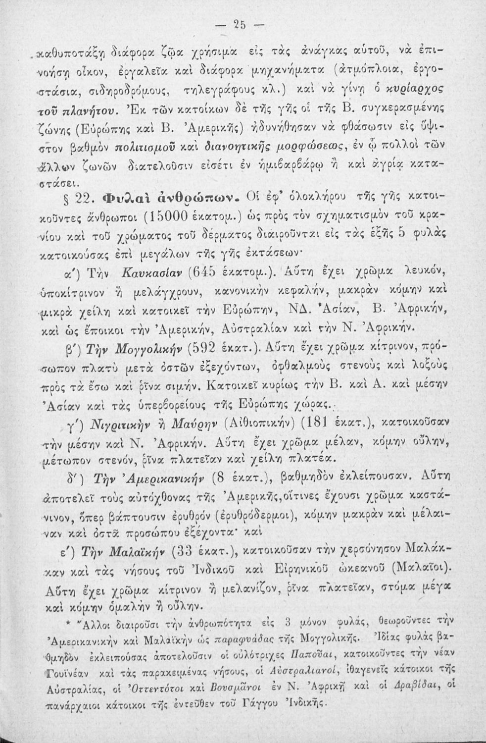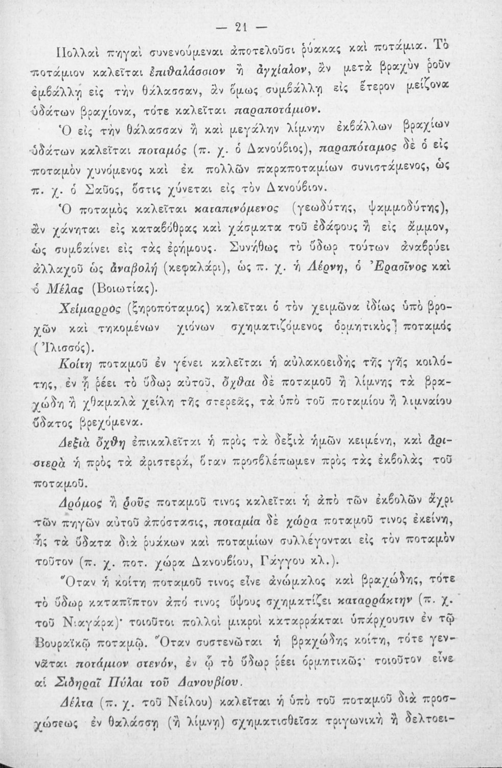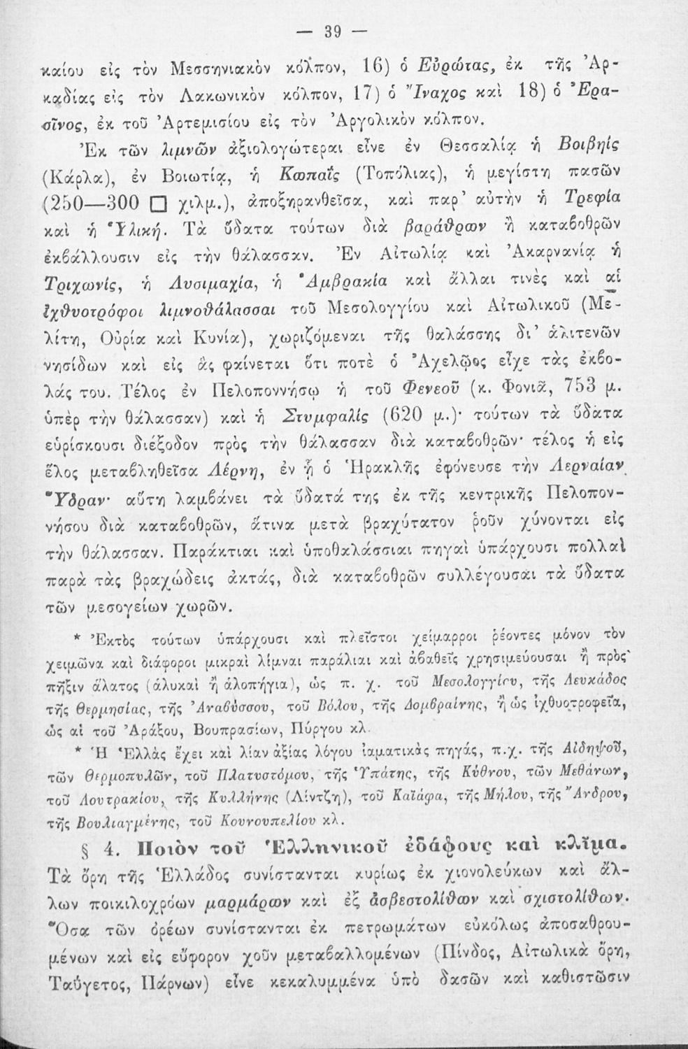 Σχολικό εγχειρίδιο Γεωγραφίας για τους μαθητές της Γ΄ τάξης των Ελληνικών Σχολείων και των Παρθεναγωγείων που περιέχει εισαγωγή στη μαθηματική, φυσική, φυσιογραφική και ανθρωπολογική γεωγραφία και παρουσιάζει την Ελλάδα ανά διαμέρισμα και νομό από φυσική, πολιτική και οικονομική άποψη.