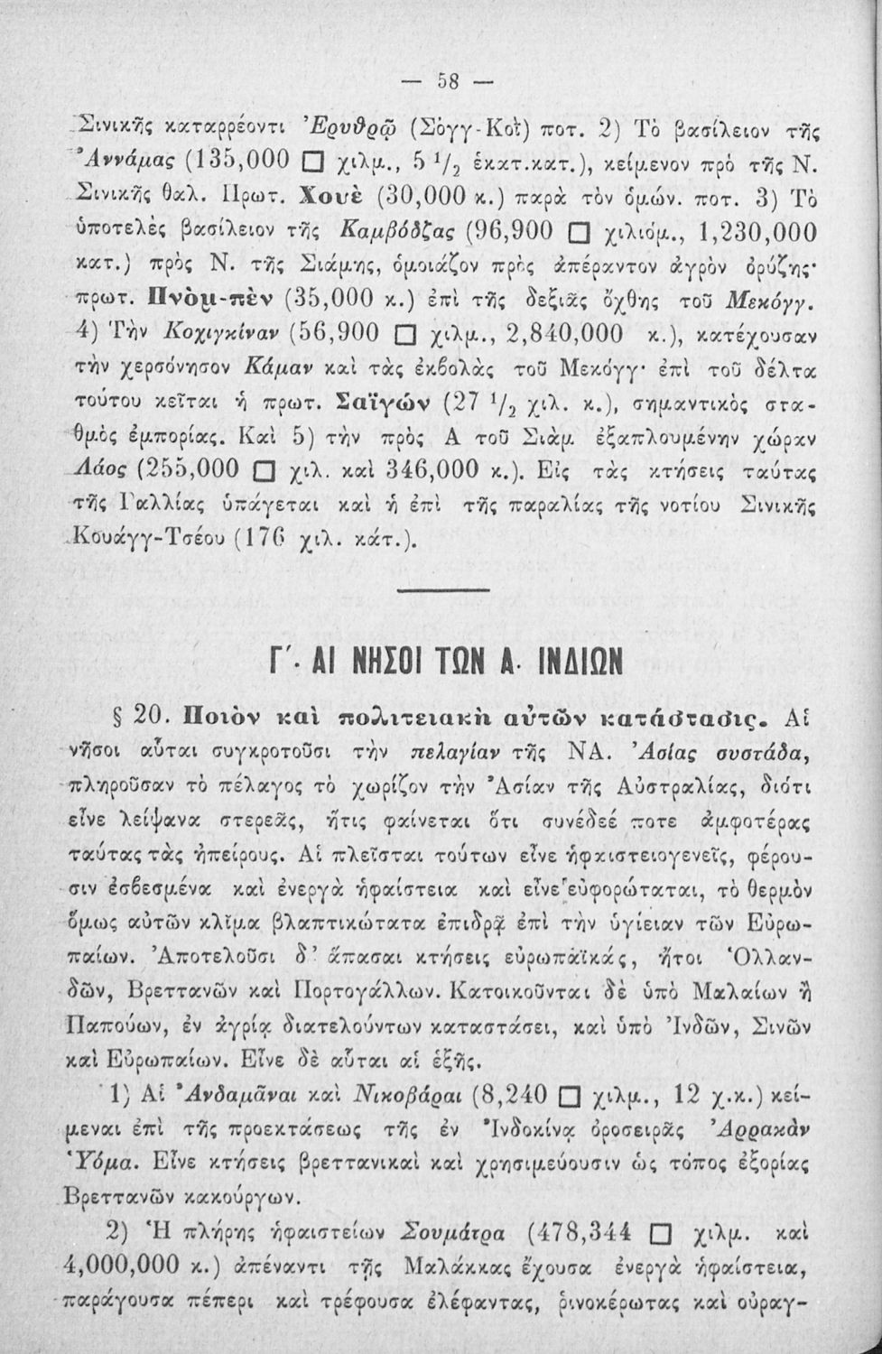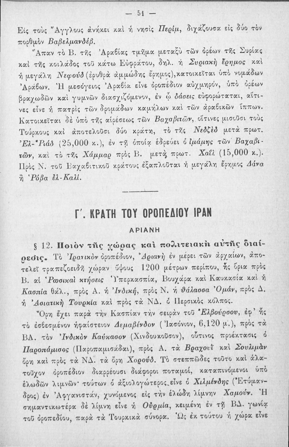 Σχολικό εγχειρίδιο Γεωγραφίας για τους μαθητές της Γ΄ τάξης των Ελληνικών Σχολείων και των Παρθεναγωγείων που περιέχει εισαγωγή στη μαθηματική, φυσική, φυσιογραφική και ανθρωπολογική γεωγραφία και παρουσιάζει ...