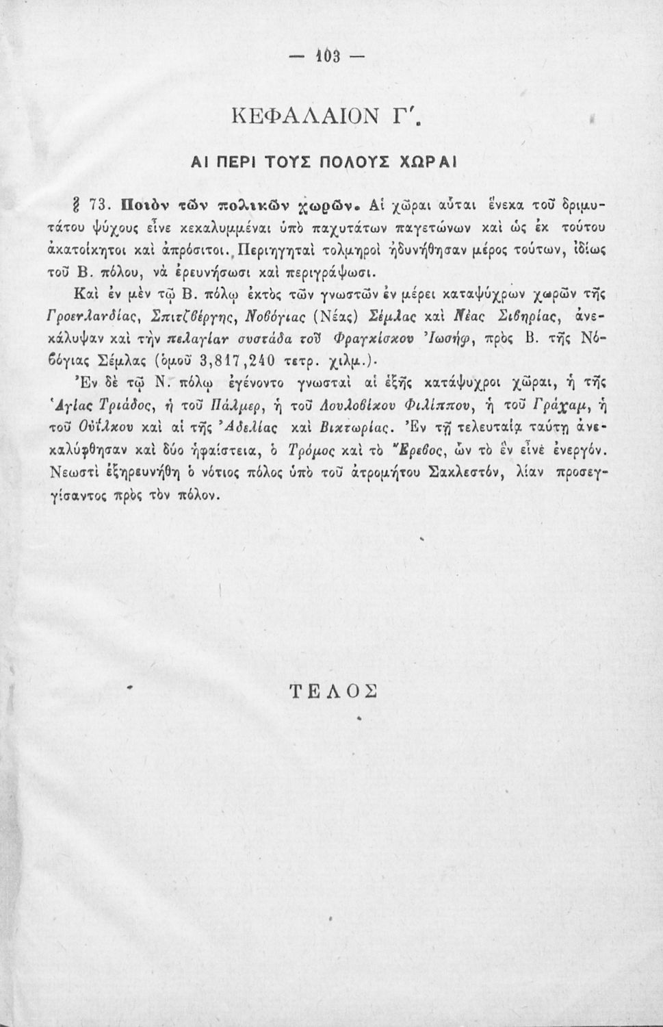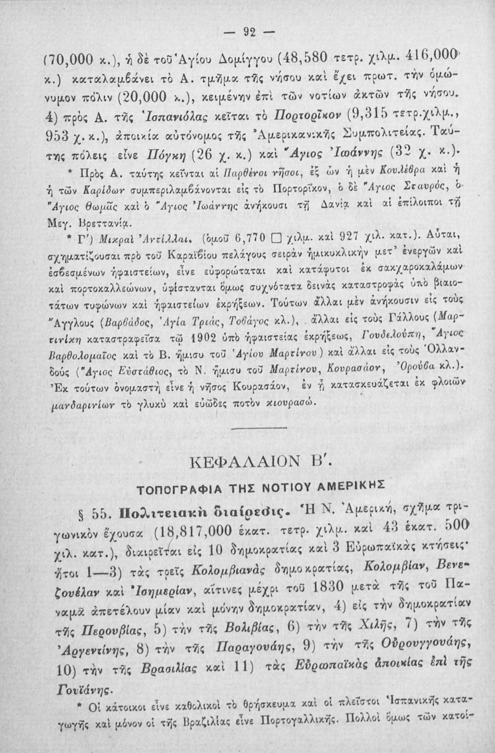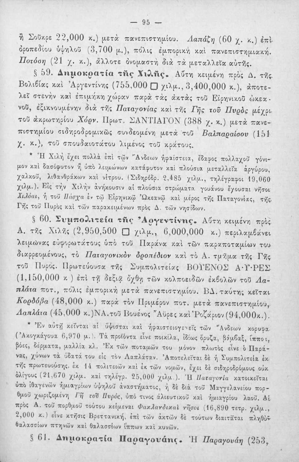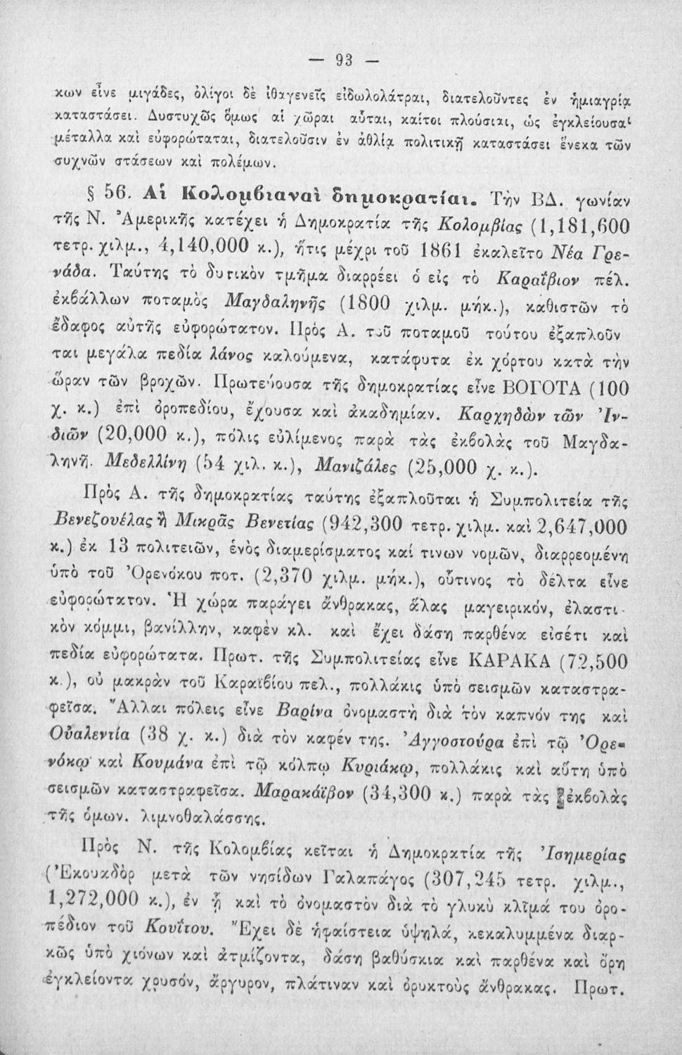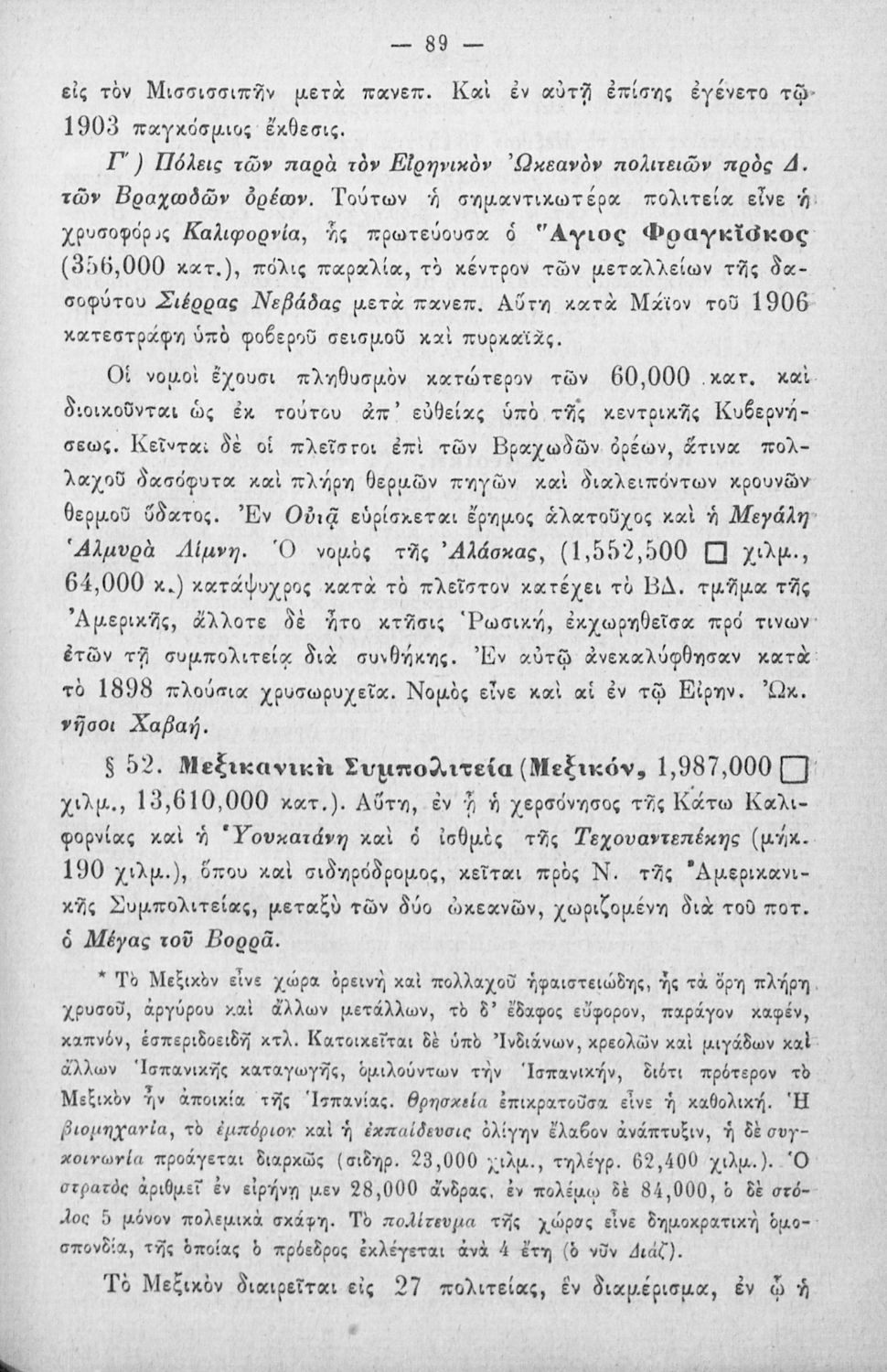 Σχολικό εγχειρίδιο Γεωγραφίας Α' Ελληνικού Σχολείου και Παρθεναγωγείου που περιλαμβάνει εισαγωγή περιέχει εισαγωγή στη μαθηματική, φυσική, φυσιογραφική και ανθρωπολογική γεωγραφία και εξετάζει τη γεωμορφολογία, την πληθυσμιακή σύσταση, το είδος του πολιτεύματος καθώς και τις μορφές οικονομίας των διαφόρων περιοχών της κάθε ηπείρου.