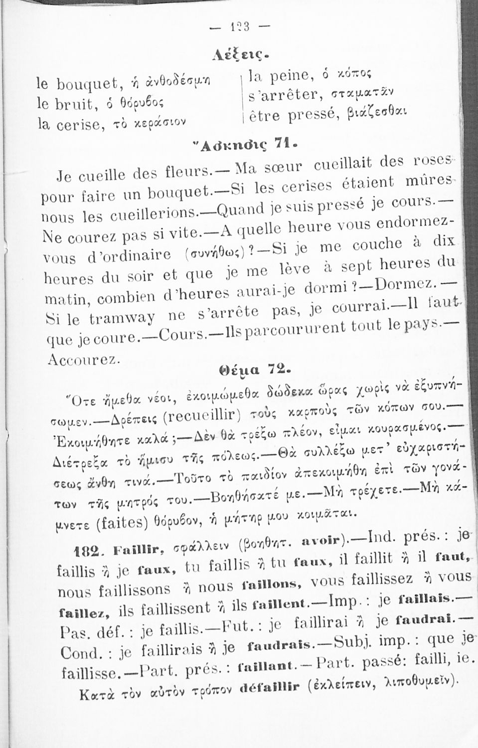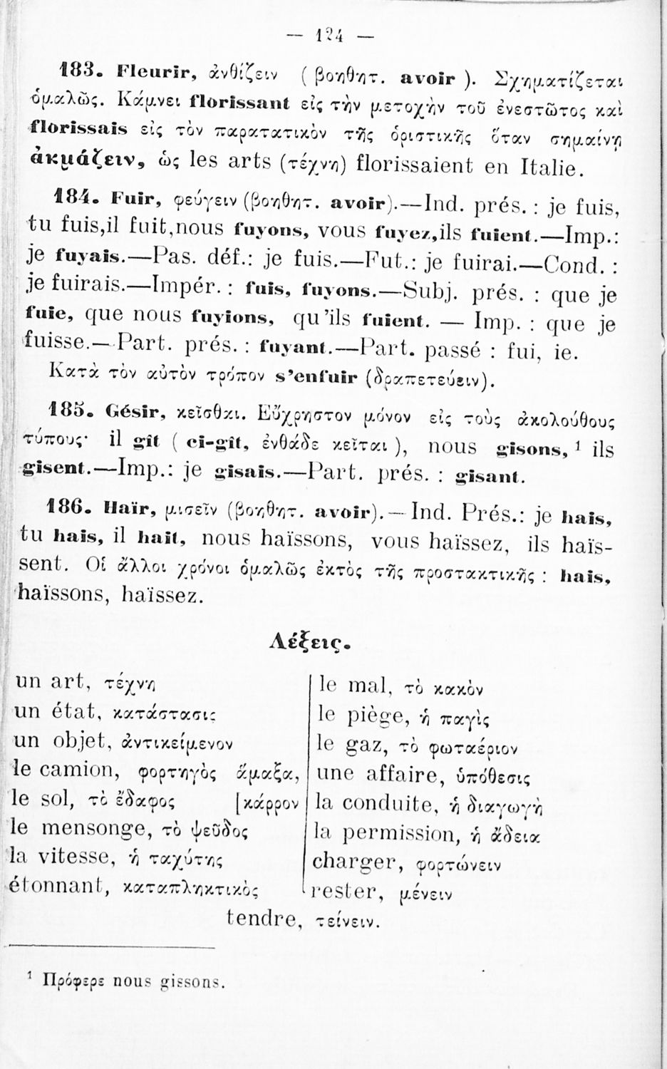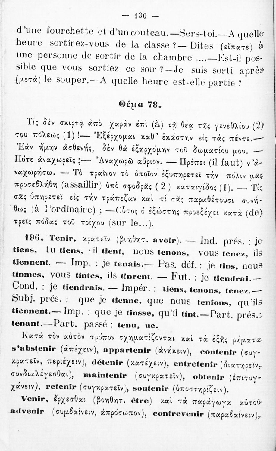 Γραμματική της Γαλλικής γλώσσας για τα Τετρατάξια Γυμνάσια, τη Γ΄ τάξη των Αστικών Σχολείων των Θηλέων και τα Διδασκαλεία της Δημοτικής Εκπαίδευσης που περιλαμβάνει θεωρία, ασκήσεις και λεξιλόγιο.