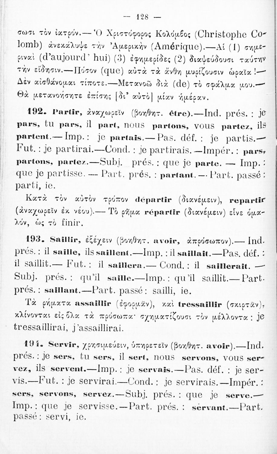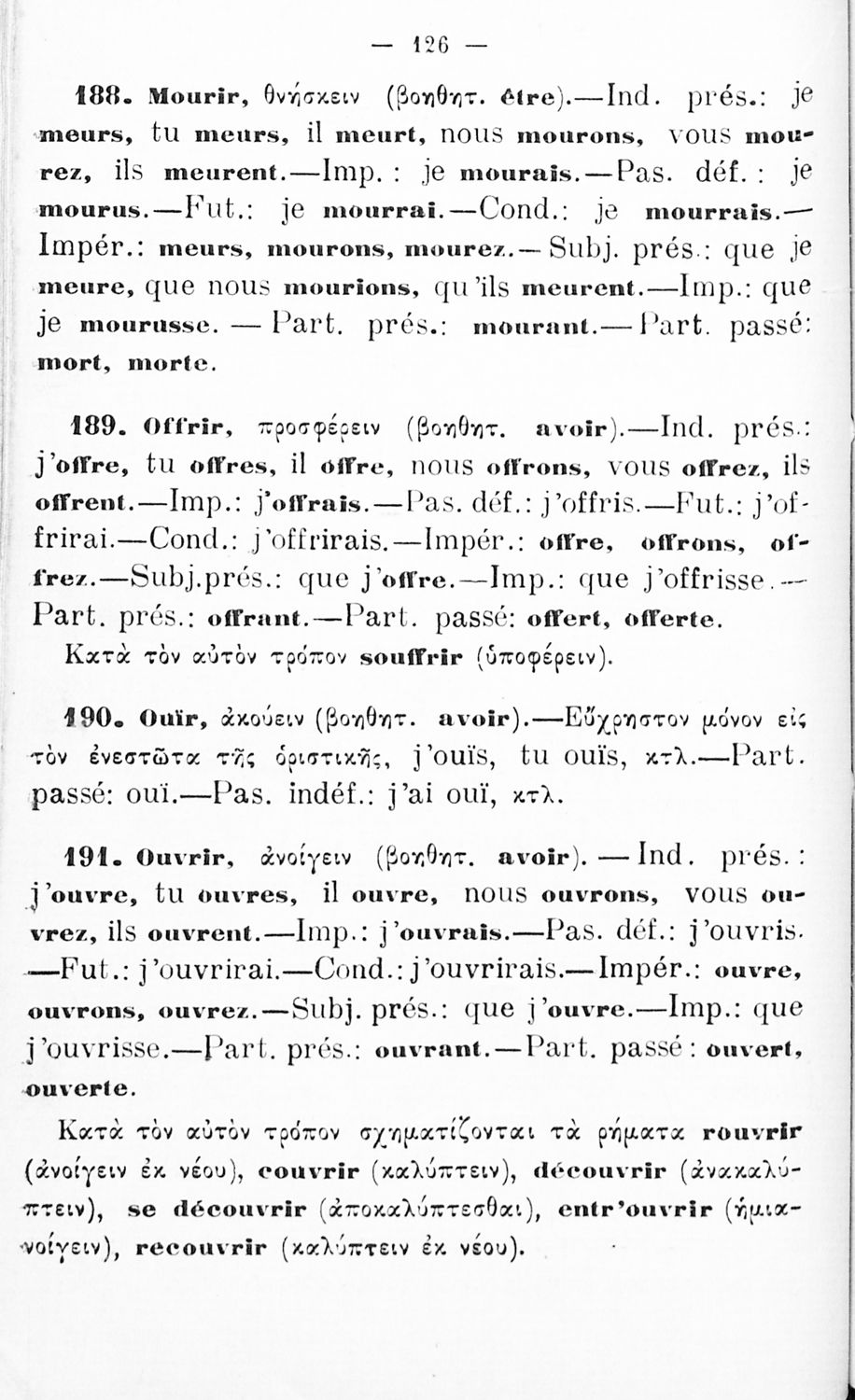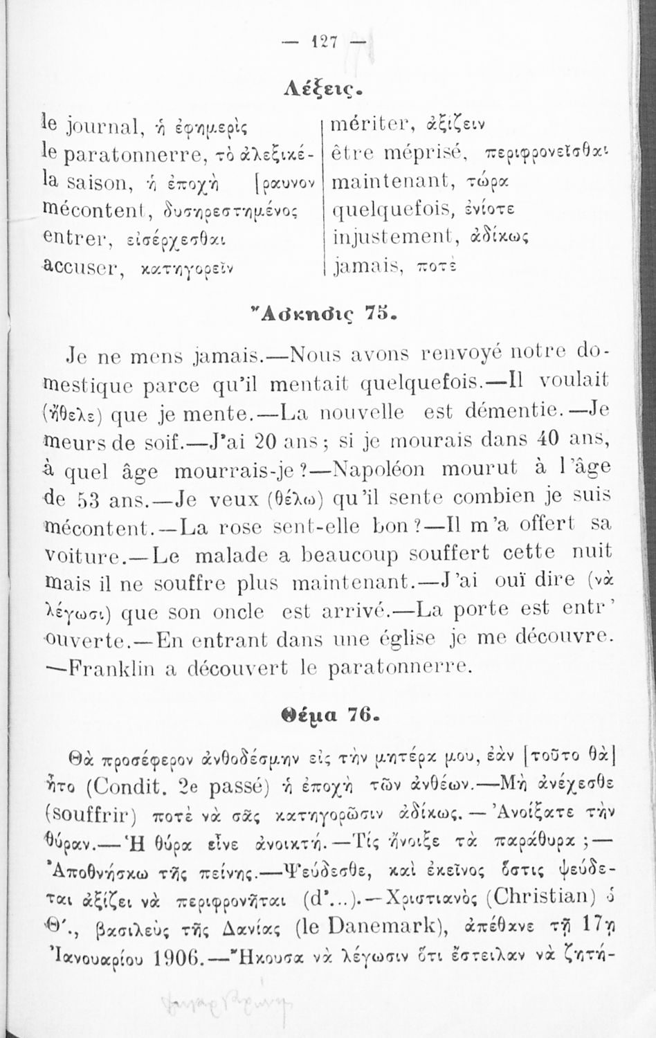 Γραμματική της Γαλλικής γλώσσας για τα Τετρατάξια Γυμνάσια, τη Γ΄ τάξη των Αστικών Σχολείων των Θηλέων και τα Διδασκαλεία της Δημοτικής Εκπαίδευσης που περιλαμβάνει θεωρία, ασκήσεις και λεξιλόγιο.