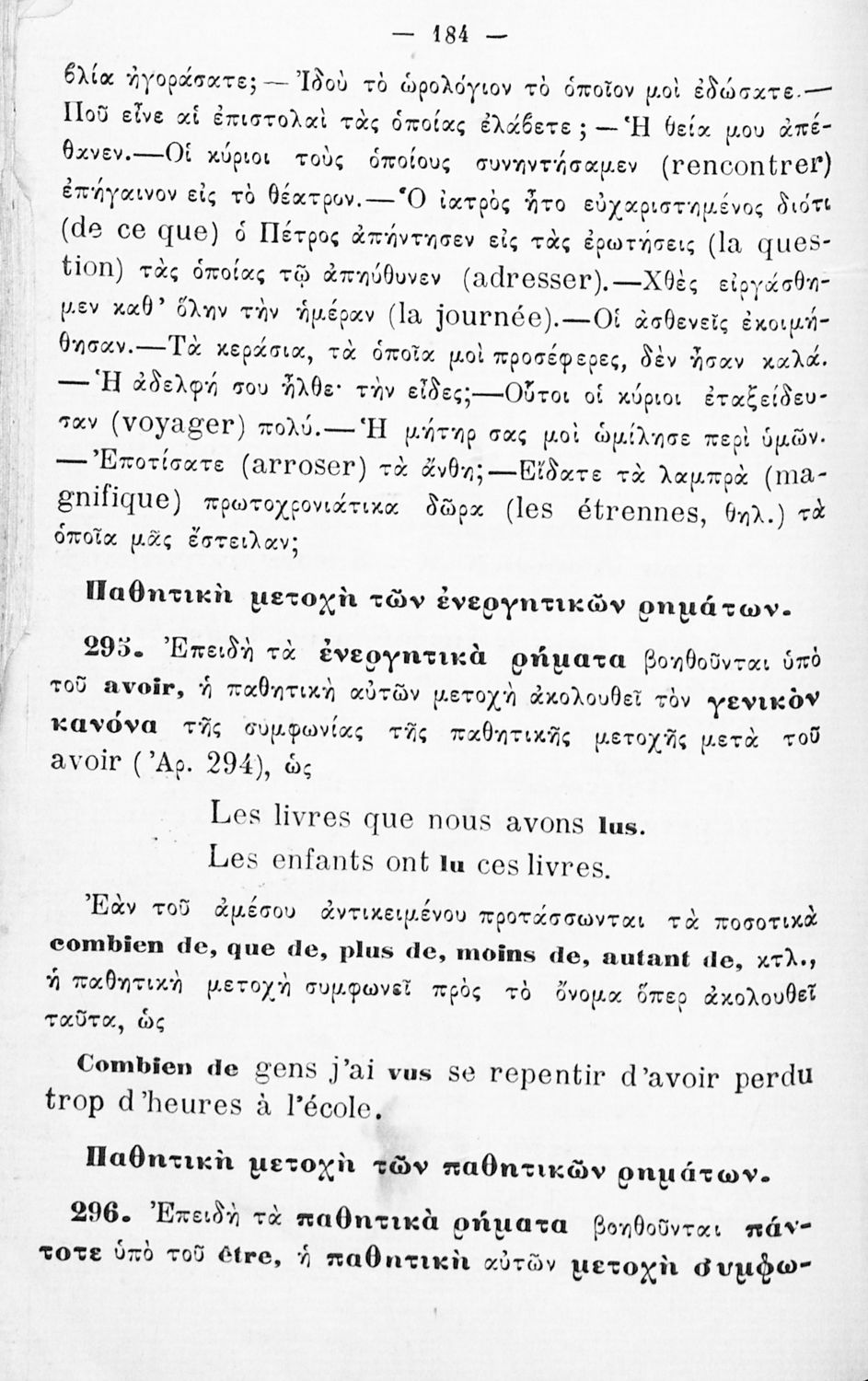 Γραμματική της γαλλικής γλώσσης, διά τα Γυμνάσια, το Βαρβάκειον Λύκειον και τας Εμπορικάς σχολάς