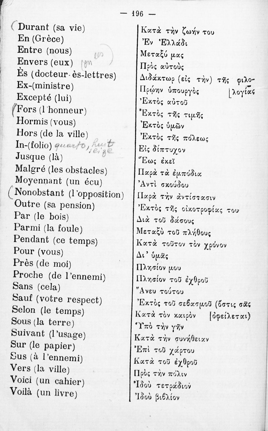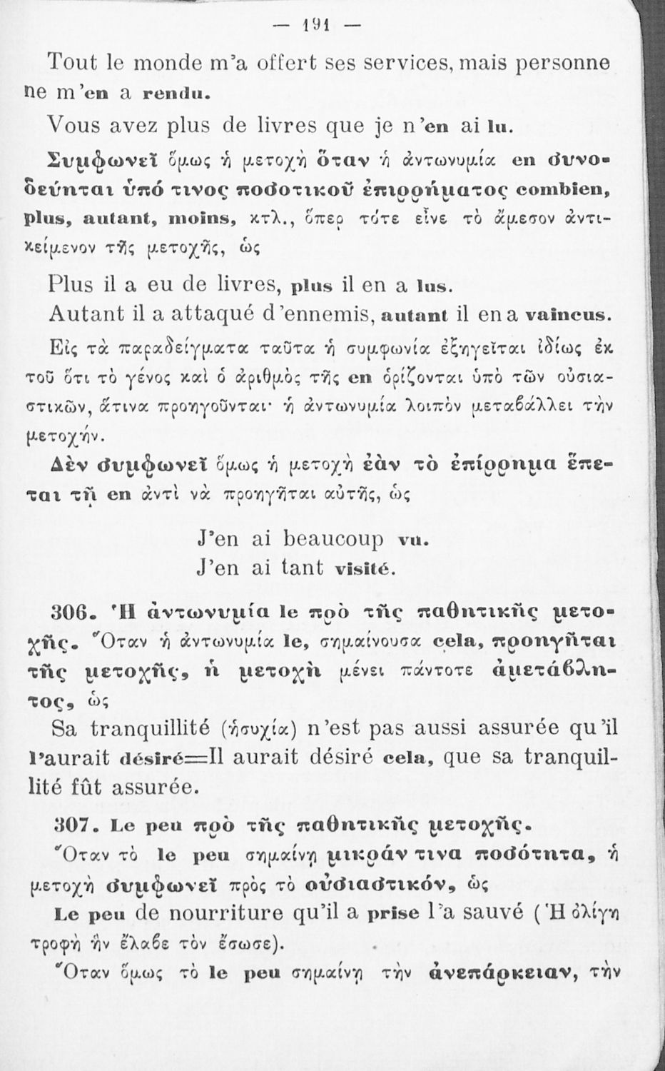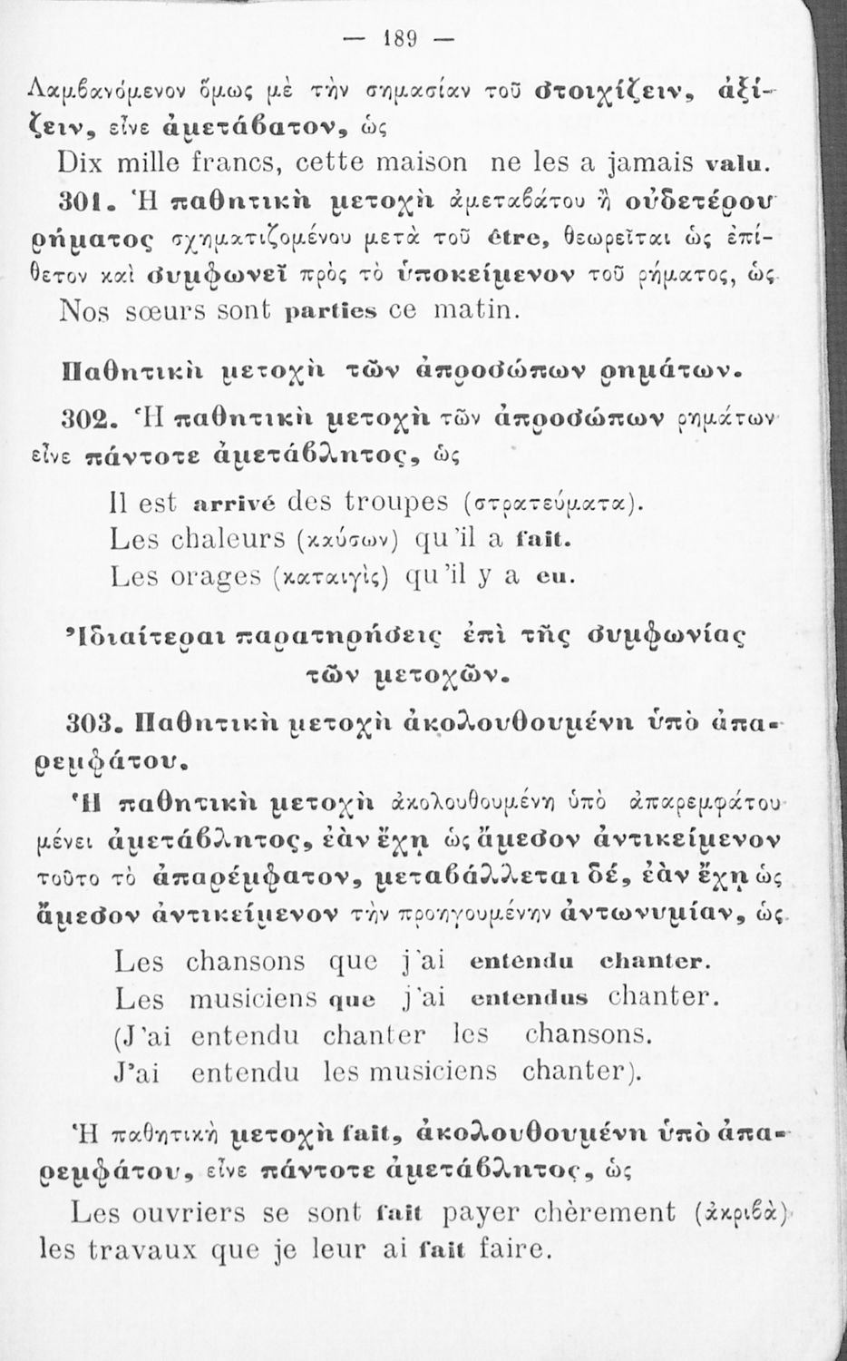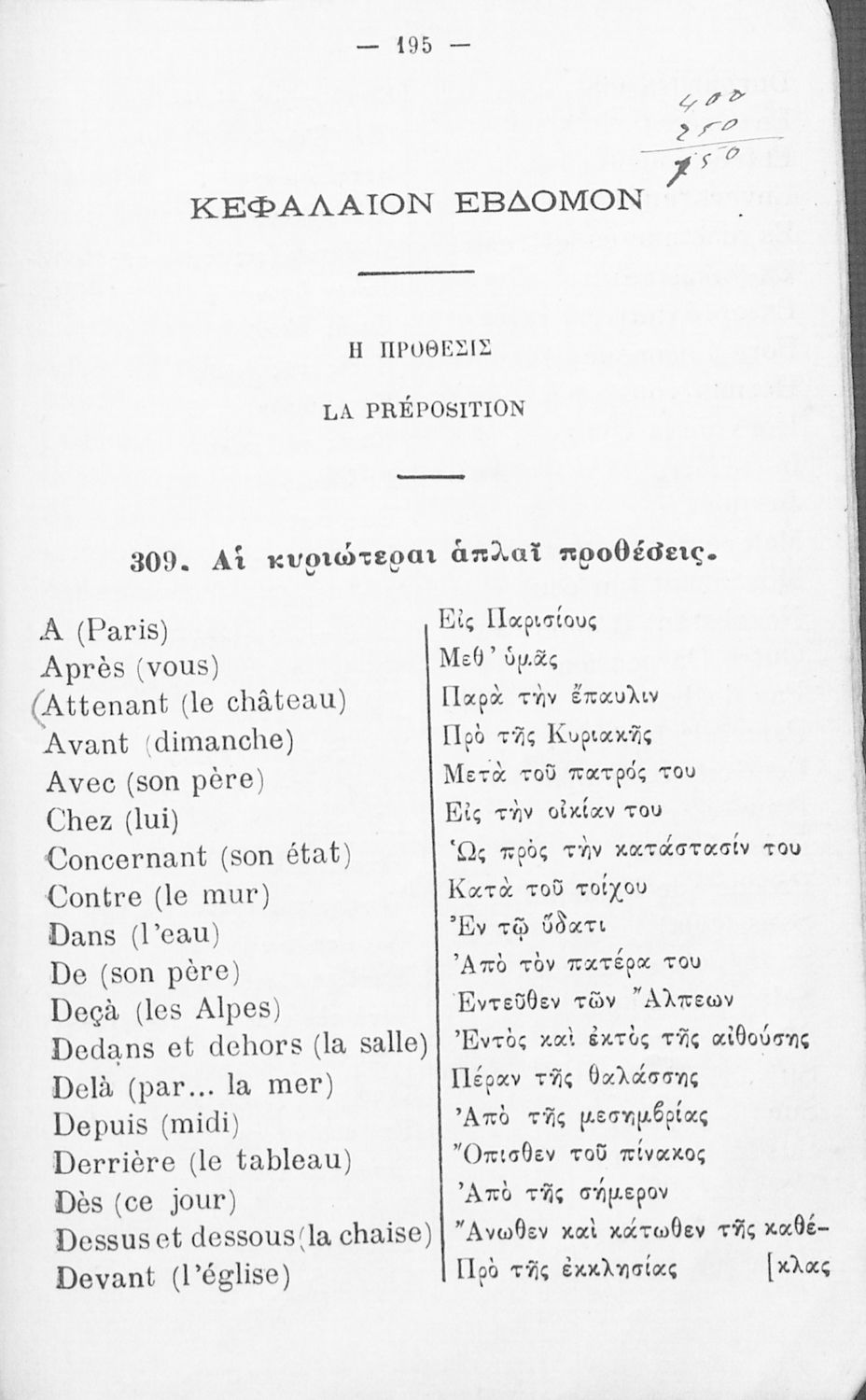 Γραμματική της Γαλλικής γλώσσας για τα Τετρατάξια Γυμνάσια, τη Γ΄ τάξη των Αστικών Σχολείων των Θηλέων και τα Διδασκαλεία της Δημοτικής Εκπαίδευσης που περιλαμβάνει θεωρία, ασκήσεις και λεξιλόγιο.