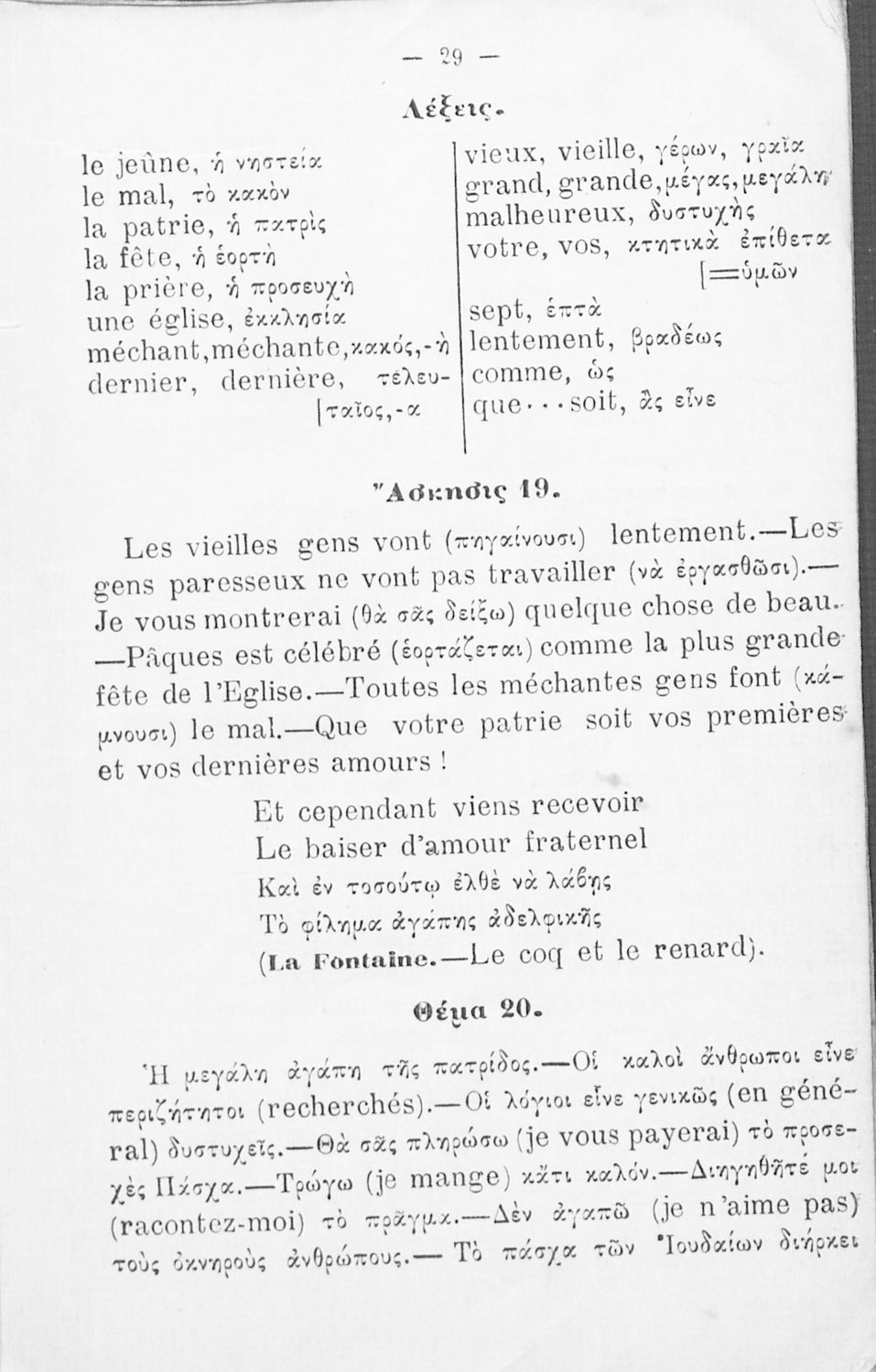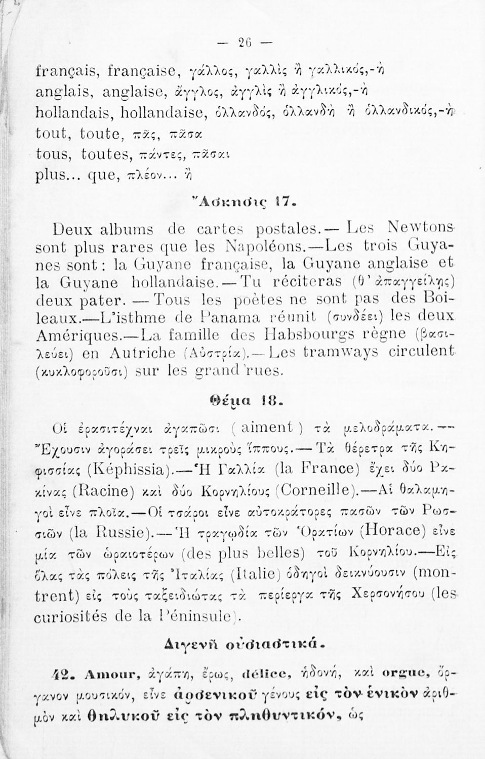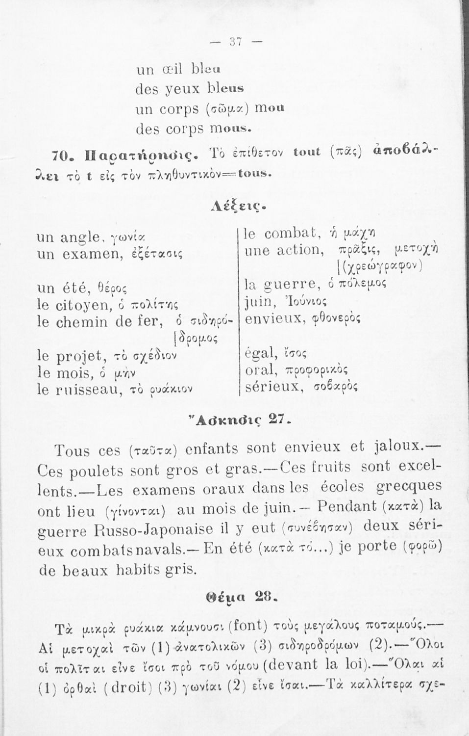 Γραμματική της Γαλλικής γλώσσας για τα Τετρατάξια Γυμνάσια, τη Γ΄ τάξη των Αστικών Σχολείων των Θηλέων και τα Διδασκαλεία της Δημοτικής Εκπαίδευσης που περιλαμβάνει θεωρία, ασκήσεις και λεξιλόγιο.