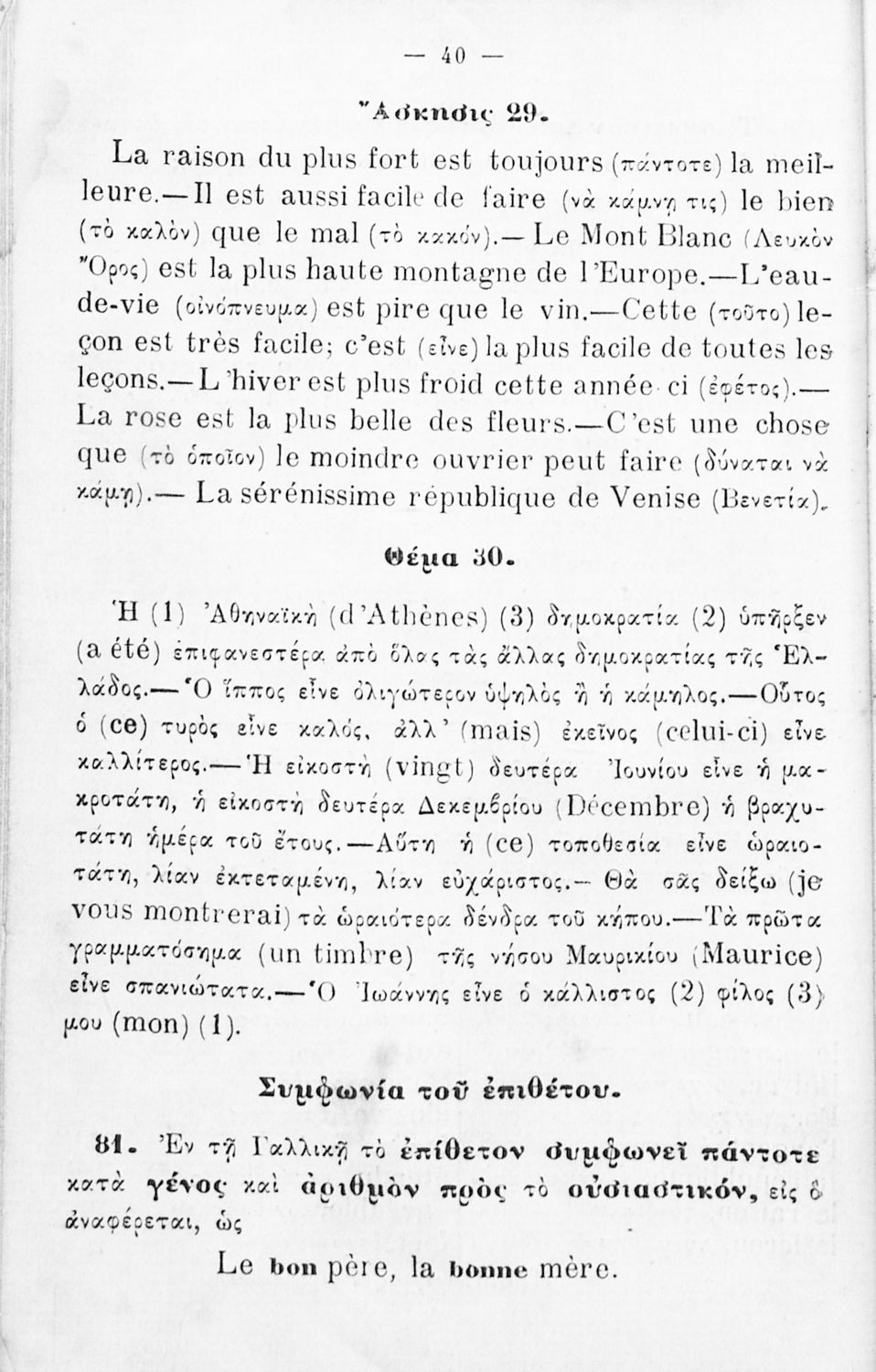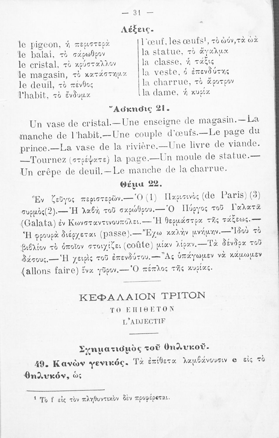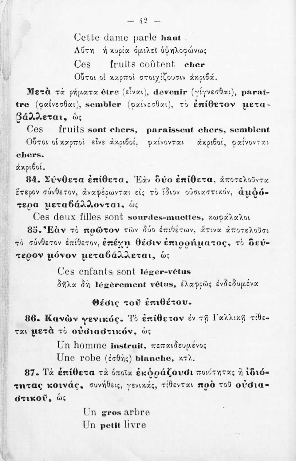 Γραμματική της γαλλικής γλώσσης, διά τα Γυμνάσια, το Βαρβάκειον Λύκειον και τας Εμπορικάς σχολάς