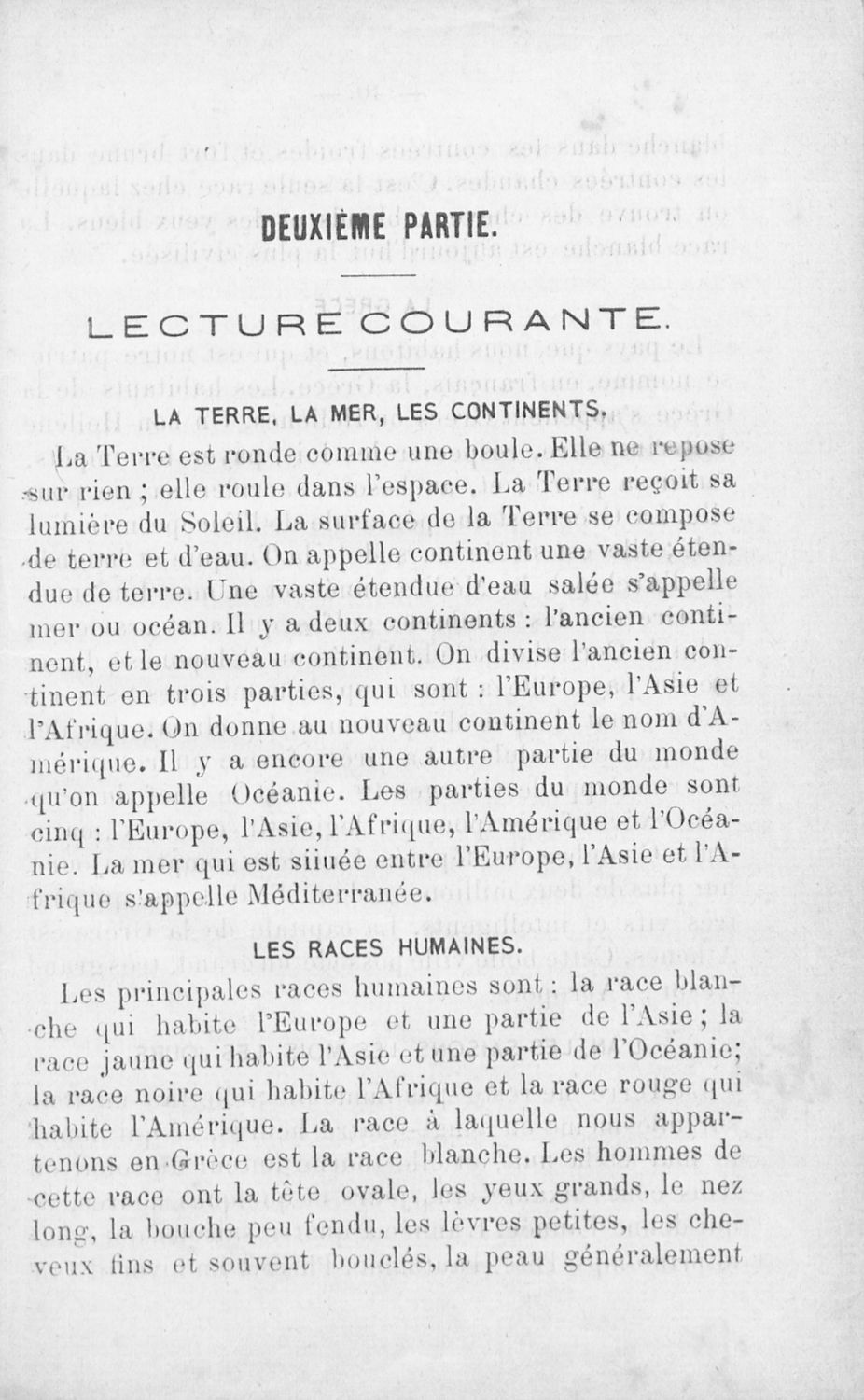 Αναγνωστικό Γαλλικών που περιλαμβάνει κείμενα στα γαλλικά και ελληνικά, θεωρία και λεξιλόγιο.