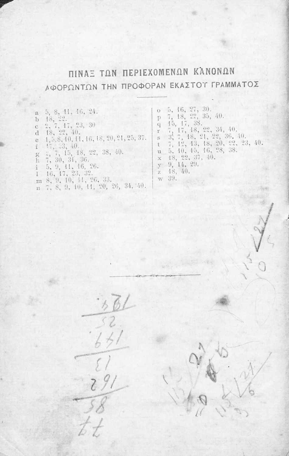 Σχολικό εγχειρίδιο Αρχαίων Ελληνικών για τα Ελληνικά Σχολεία, Παρθεναγωγεία και Γυμνάσια που περιέχει τους κανόνες γραμματικής και είναι χωρισμένο σε φθογγολογικό, τυπολογικό και ετυμολογικό μέρος.