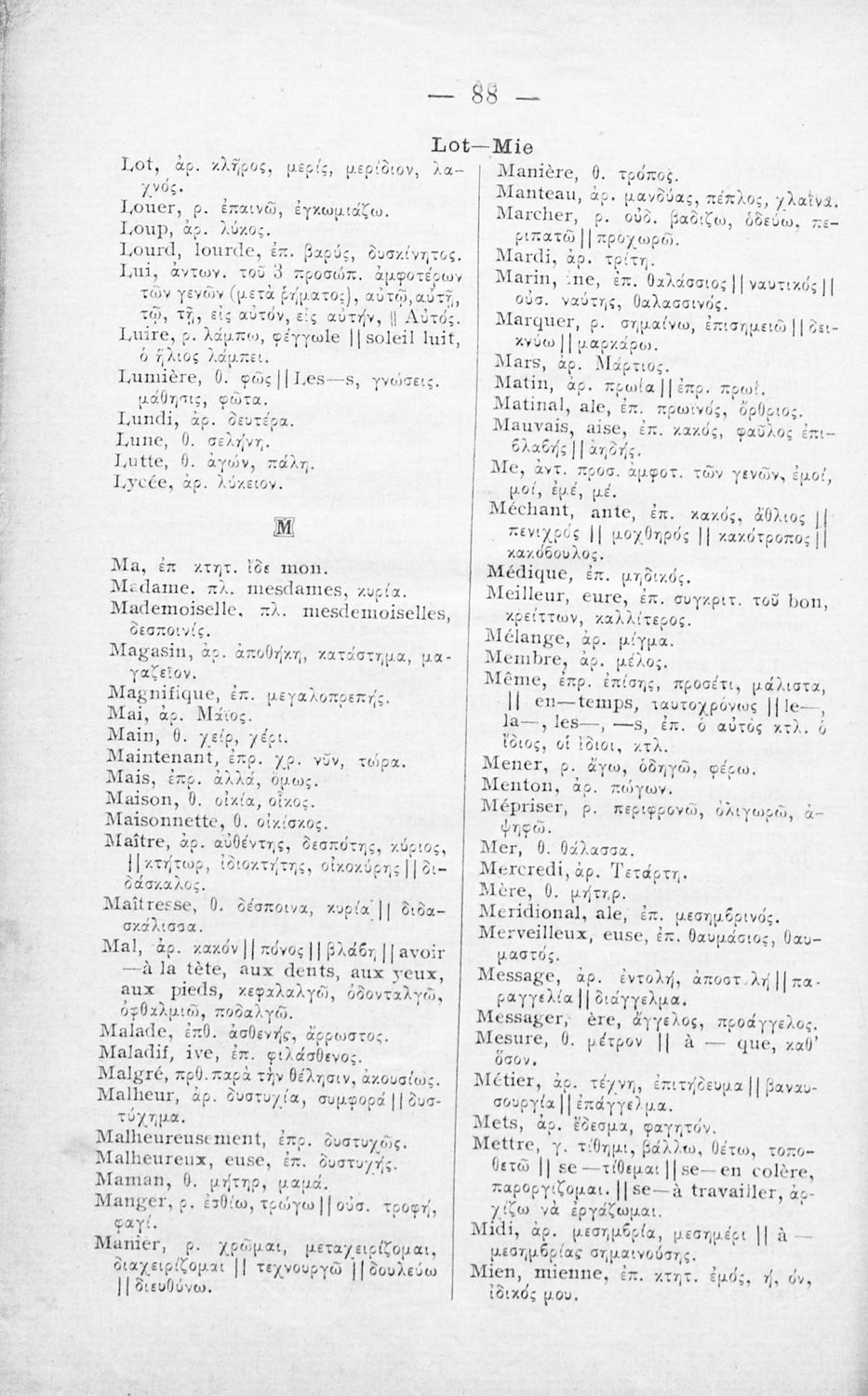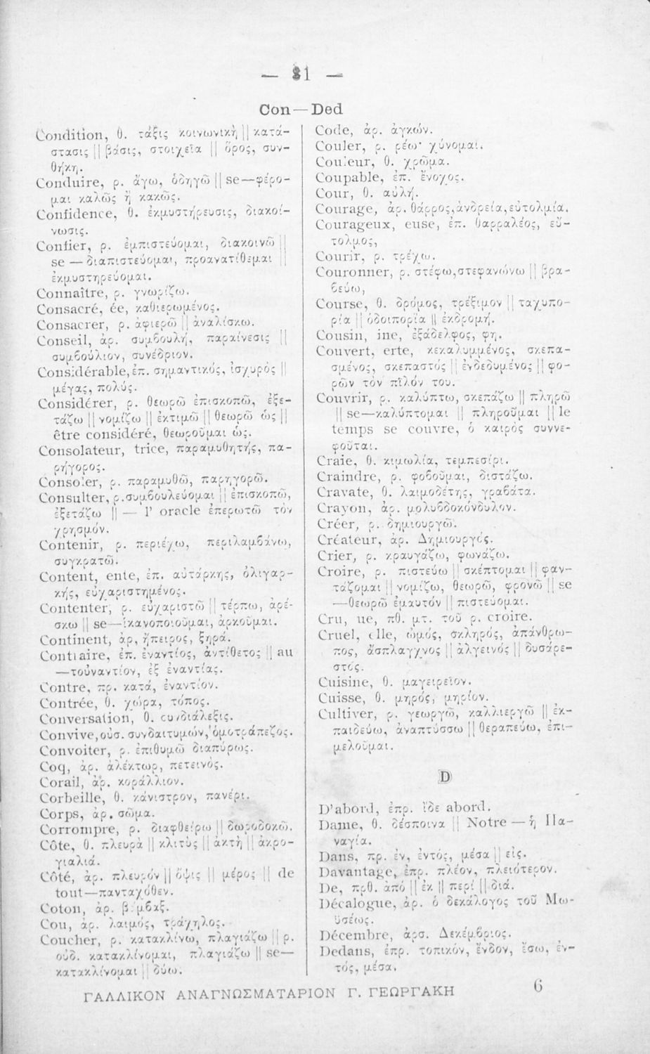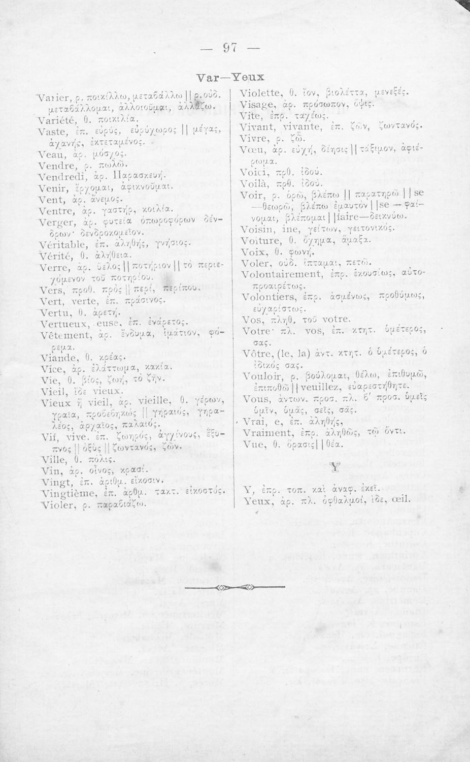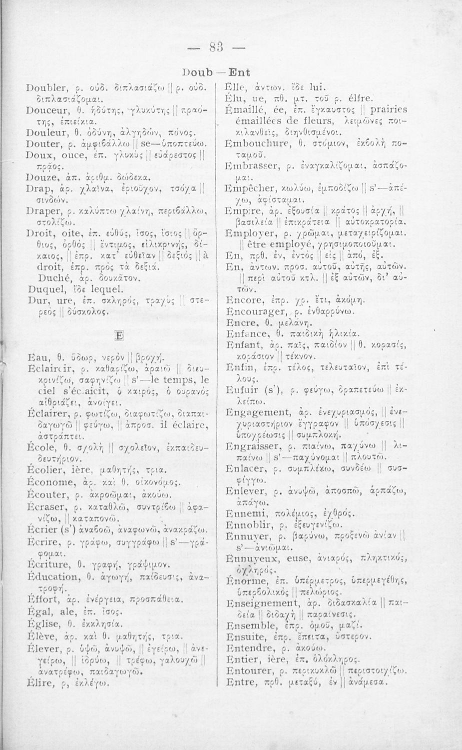 Σχολικό εγχειρίδιο Γαλλικών για τια Ελληνικά Σχολεία και των Παρθεναγωγεία που περιλαμβάνει τους βασικούς κανόνες γραμματικής καθώς και σειρά κειμένων ποικίλης θεματολογίας για πρακτική εξάσκηση των μαθητών. Περιλαμβάνεται και κατάλογος λεξιλογίου και υποδείγματα επιστολών.