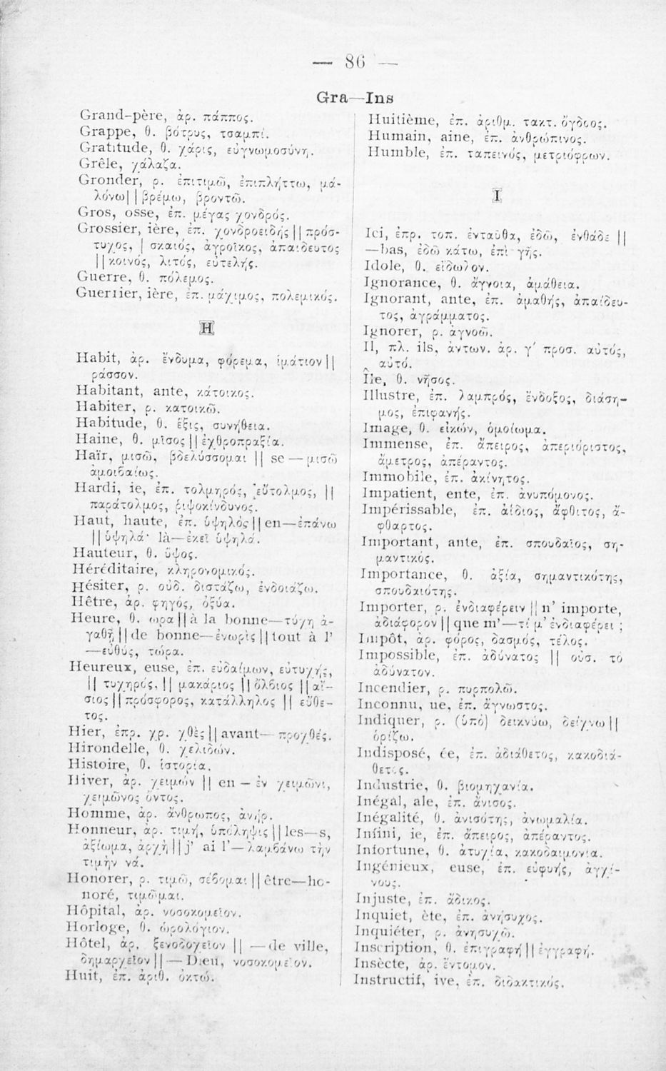 Μαθητικό βοήθημα Αρχαίων Ελληνικών για τα Ελληνικά Σχολεία, Παρθεναγωγεία και Γυμνάσια που περιλαμβάνει γραμματική της αρχαίας ελληνικής και κατάλογο ανωμάλων ρημάτων.