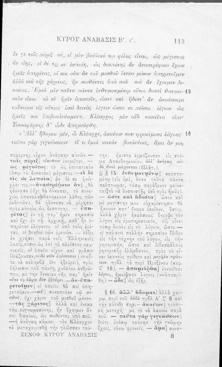 Ελληνική χρηστομάθεια περιέχουσα Ξενοφώντος Κύρου Ανάβασιν προς χρήσιν των Ελληνικών Σχολείων και των Παρθεναγωγείων τόμος Β΄ τεύχος Α΄ βιβλίον πρώτον και δεύτερον μετά σημειώσεων ερμηνευτικών, ιστορικών και παιδαγωγικών