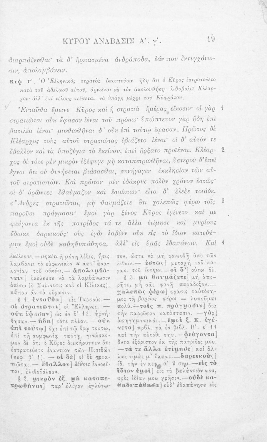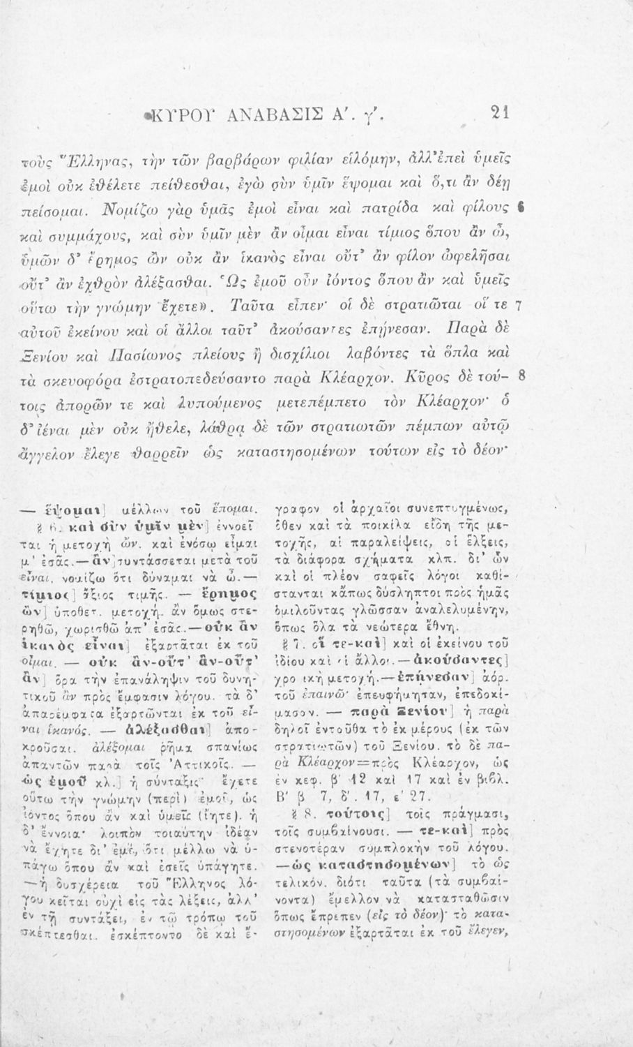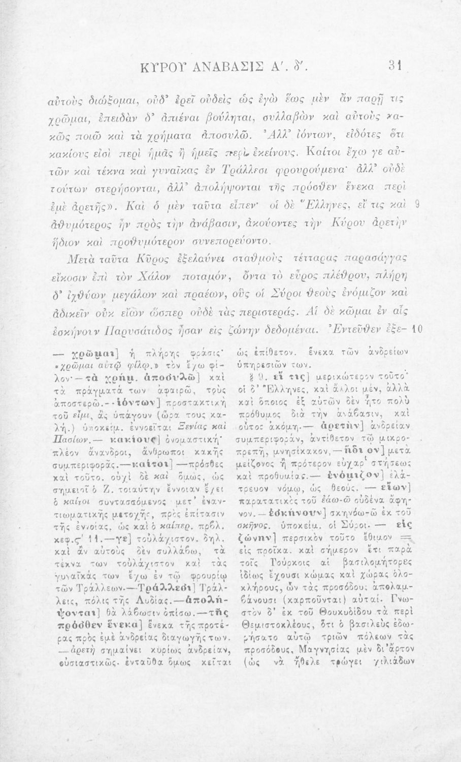 Ελληνική χρηστομάθεια περιέχουσα Ξενοφώντος Κύρου Ανάβασιν προς χρήσιν των Ελληνικών Σχολείων και των Παρθεναγωγείων τόμος Β΄ τεύχος Α΄ βιβλίον πρώτον και δεύτερον μετά σημειώσεων ερμηνευτικών, ιστορικών και παιδαγωγικών