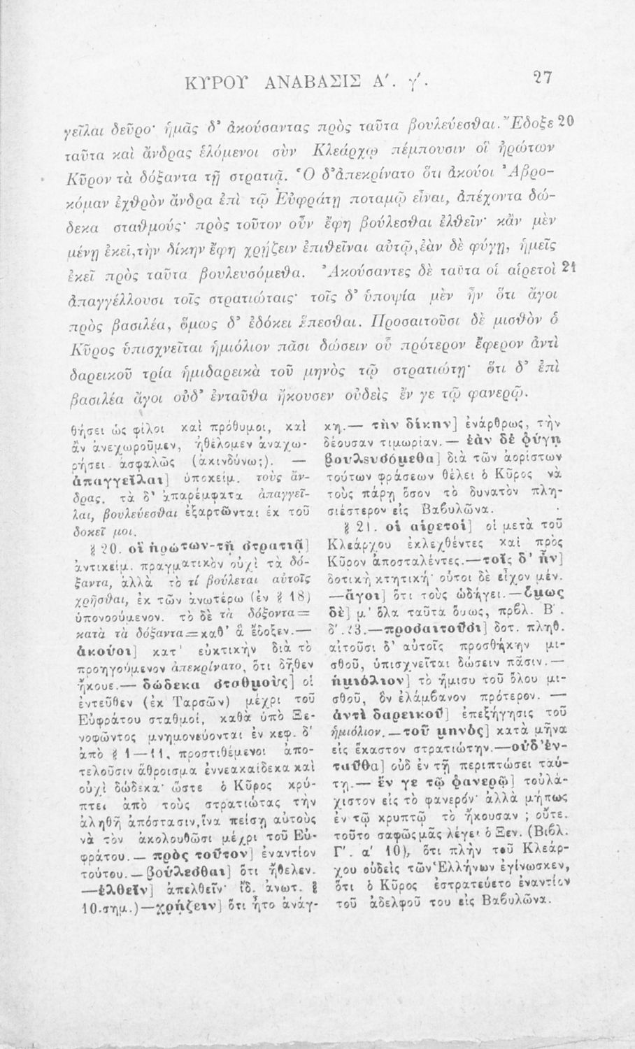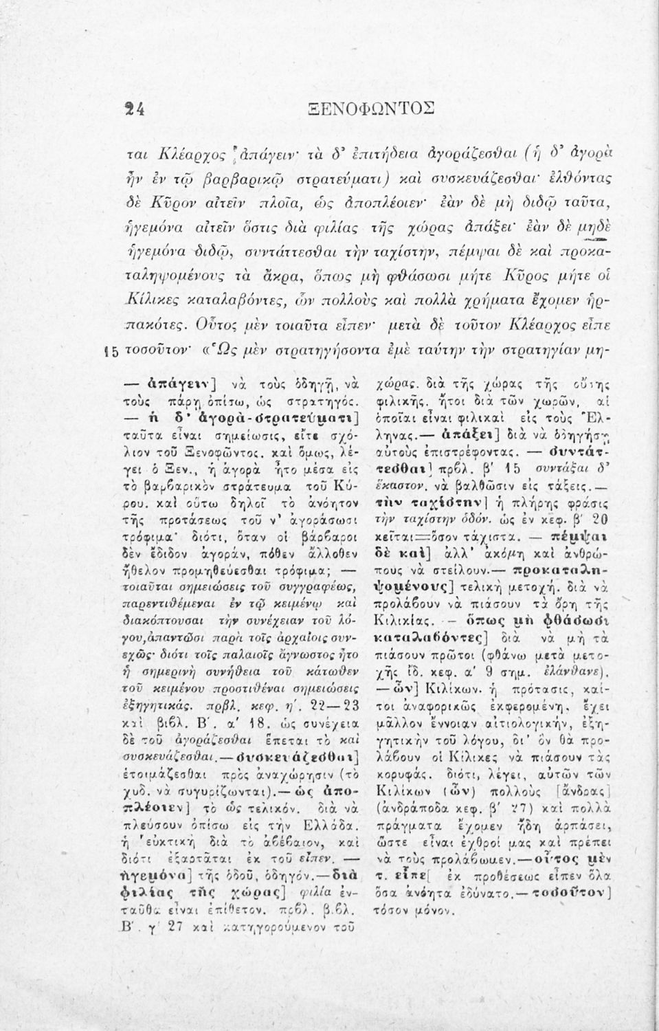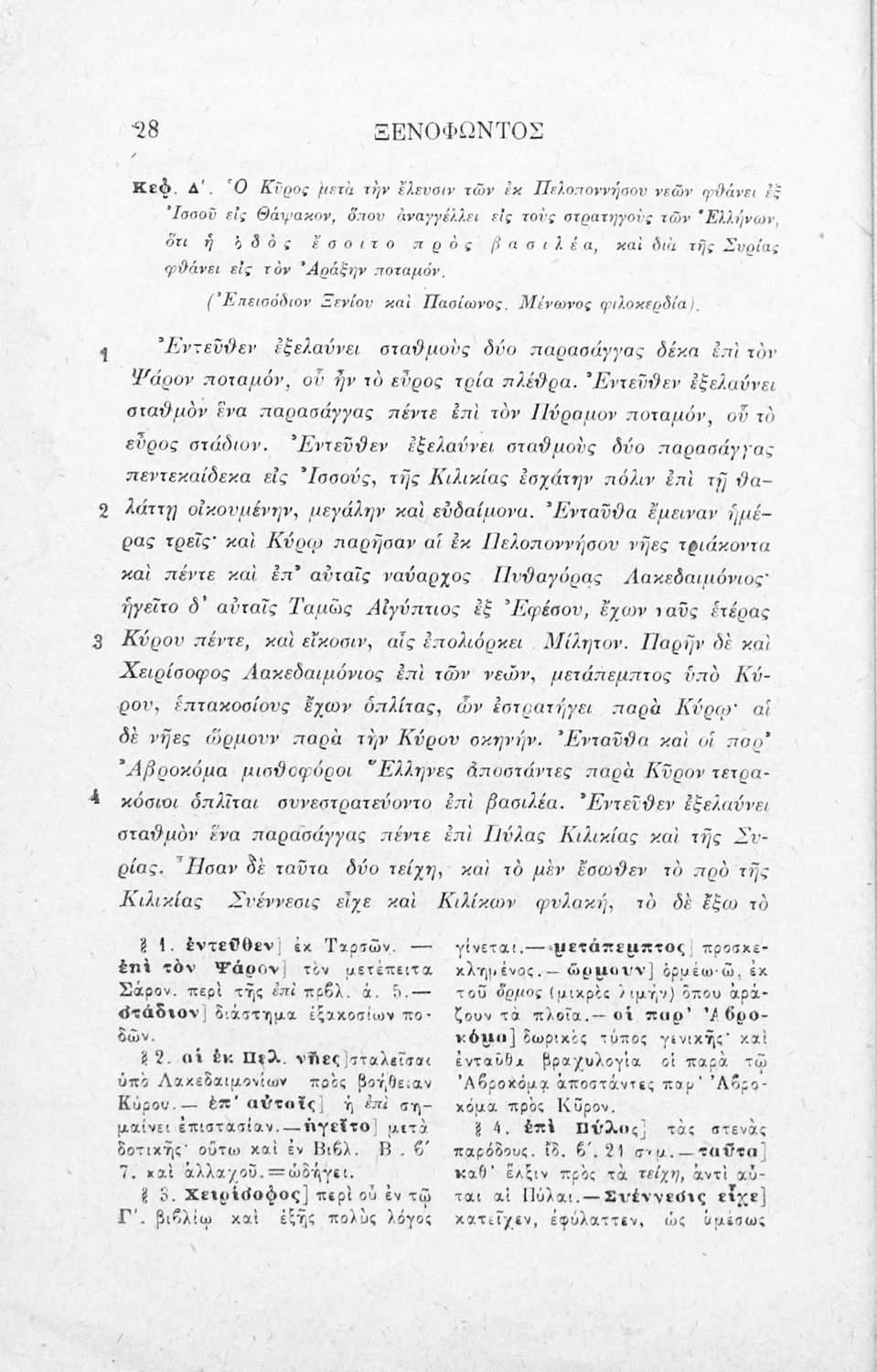 Ελληνική χρηστομάθεια περιέχουσα Ξενοφώντος Κύρου Ανάβασιν προς χρήσιν των Ελληνικών Σχολείων και των Παρθεναγωγείων τόμος Β΄ τεύχος Α΄ βιβλίον πρώτον και δεύτερον μετά σημειώσεων ερμηνευτικών, ιστορικών και παιδαγωγικών