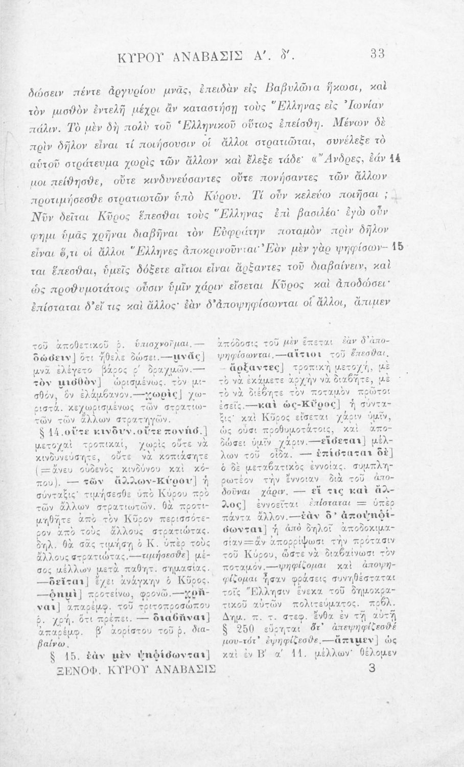 Ελληνική χρηστομάθεια περιέχουσα Ξενοφώντος Κύρου Ανάβασιν προς χρήσιν των Ελληνικών Σχολείων και των Παρθεναγωγείων τόμος Β΄ τεύχος Α΄ βιβλίον πρώτον και δεύτερον μετά σημειώσεων ερμηνευτικών, ιστορικών και παιδαγωγικών