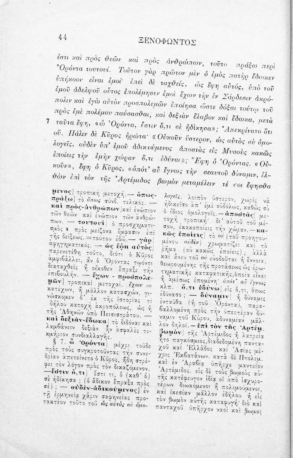 Σχολικό εγχειρίδιο Αρχαίων Ελληνικών για τα Ελληνικά Σχολεία και Παρθεναγωγεία που περιλαμβάνει αποσπάσματα από τα έργα του Ξενοφώντα Ελληνικά και Κύρου Παιδεία και λεξικολογικές παρατηρήσεις.