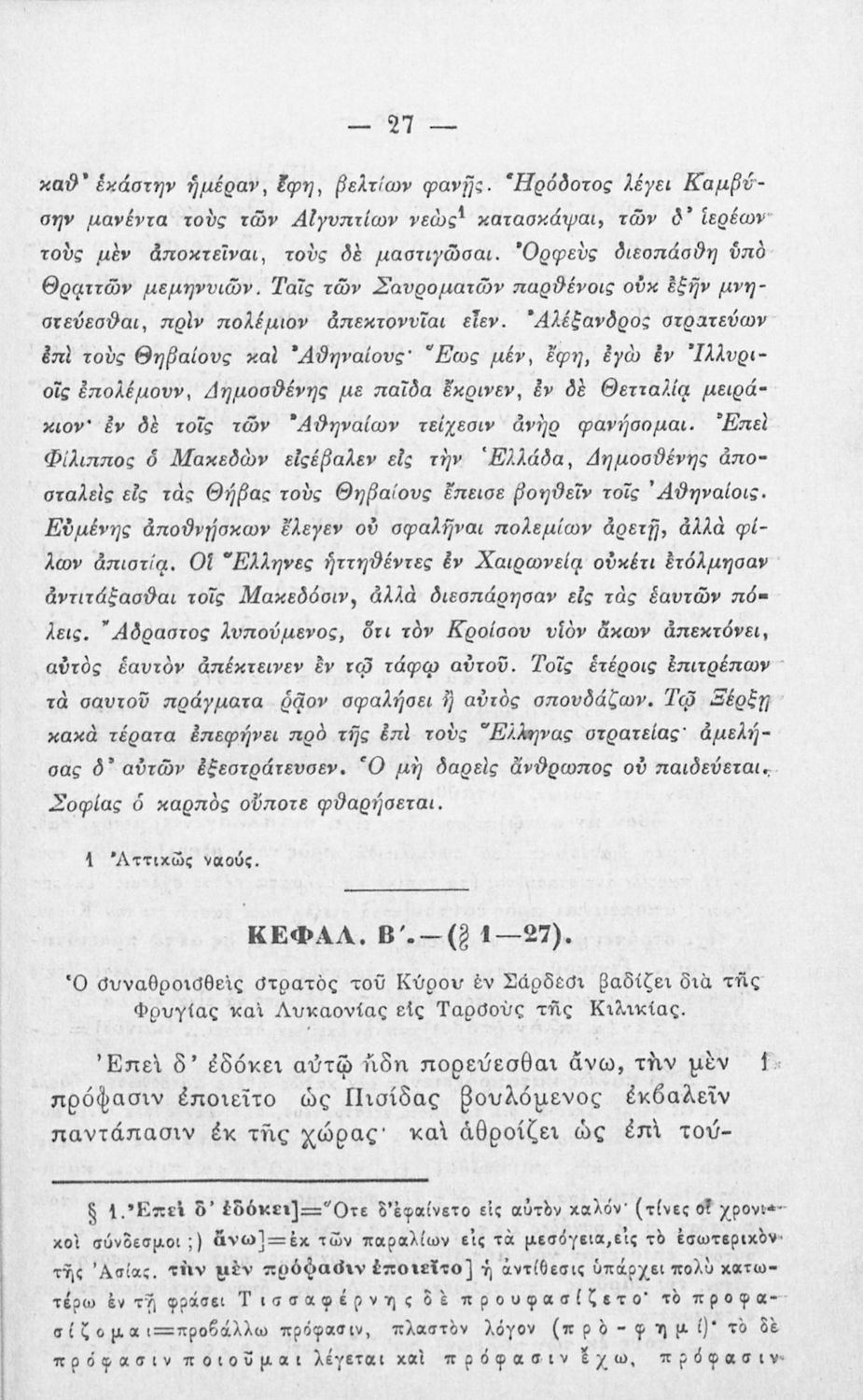 520 ## _aΣχολικό εγχειρίδιο Αρχαίων Ελληνικών για τις Β' Ελληνικού Σχολείου και ΣΤ΄ Δημοτικού Σχολείου που περιλαμβάνει αποσπάσματα από έργο του Ξενοφώντα Κύρου Ανάβασις το οποίο αξιοποιεί για τη διδασκαλία των γραμματικών φαινομένων, εισαγωγικά σχόλια για τη ζωή και το έργο του, ερμηνευτικές και γραμματικές παρατηρήσεις και λεξικολογικά σχόλια.