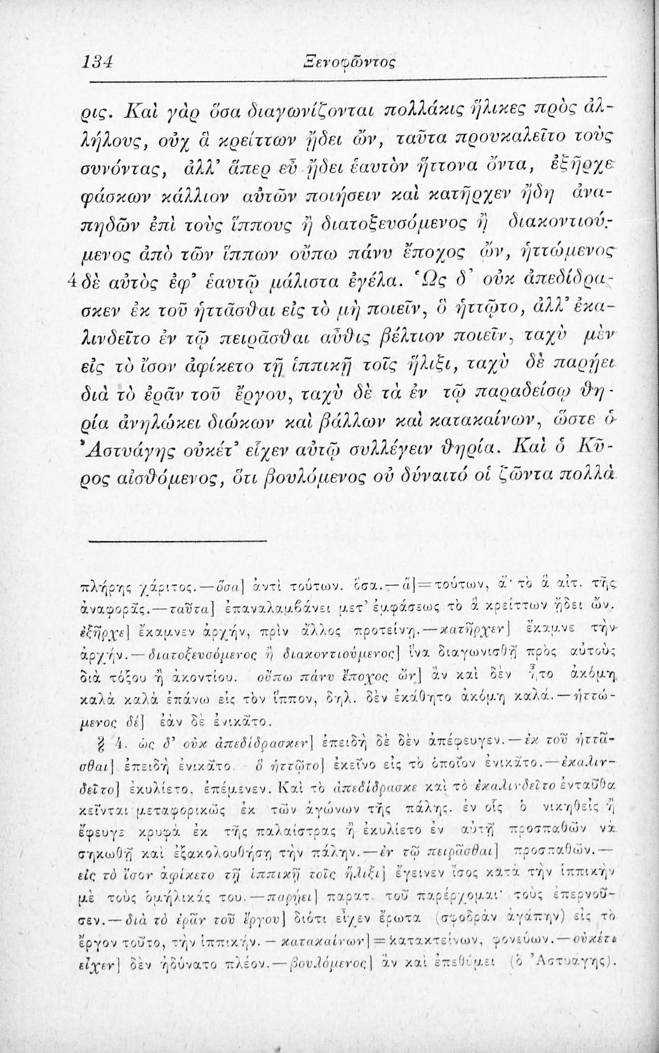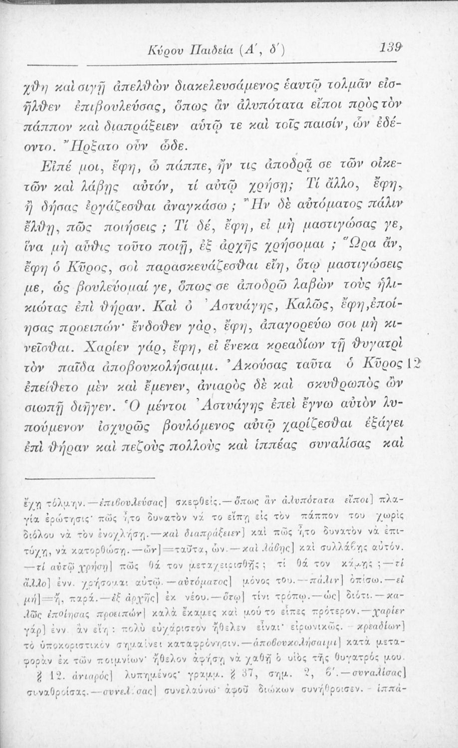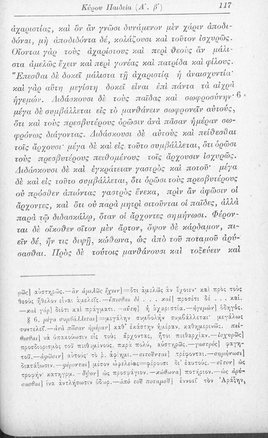 Σχολικό εγχειρίδιο Αρχαίων Ελληνικών για τα Ελληνικά Σχολεία και Παρθεναγωγεία που περιλαμβάνει αποσπάσματα από τα έργα του Ξενοφώντα Ελληνικά και Κύρου Παιδεία και λεξικολογικές παρατηρήσεις.
