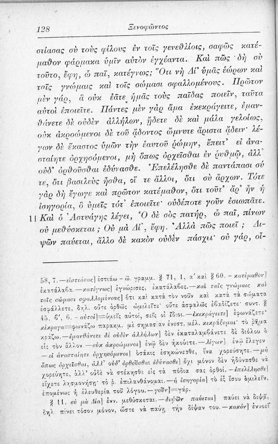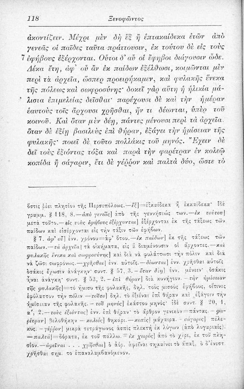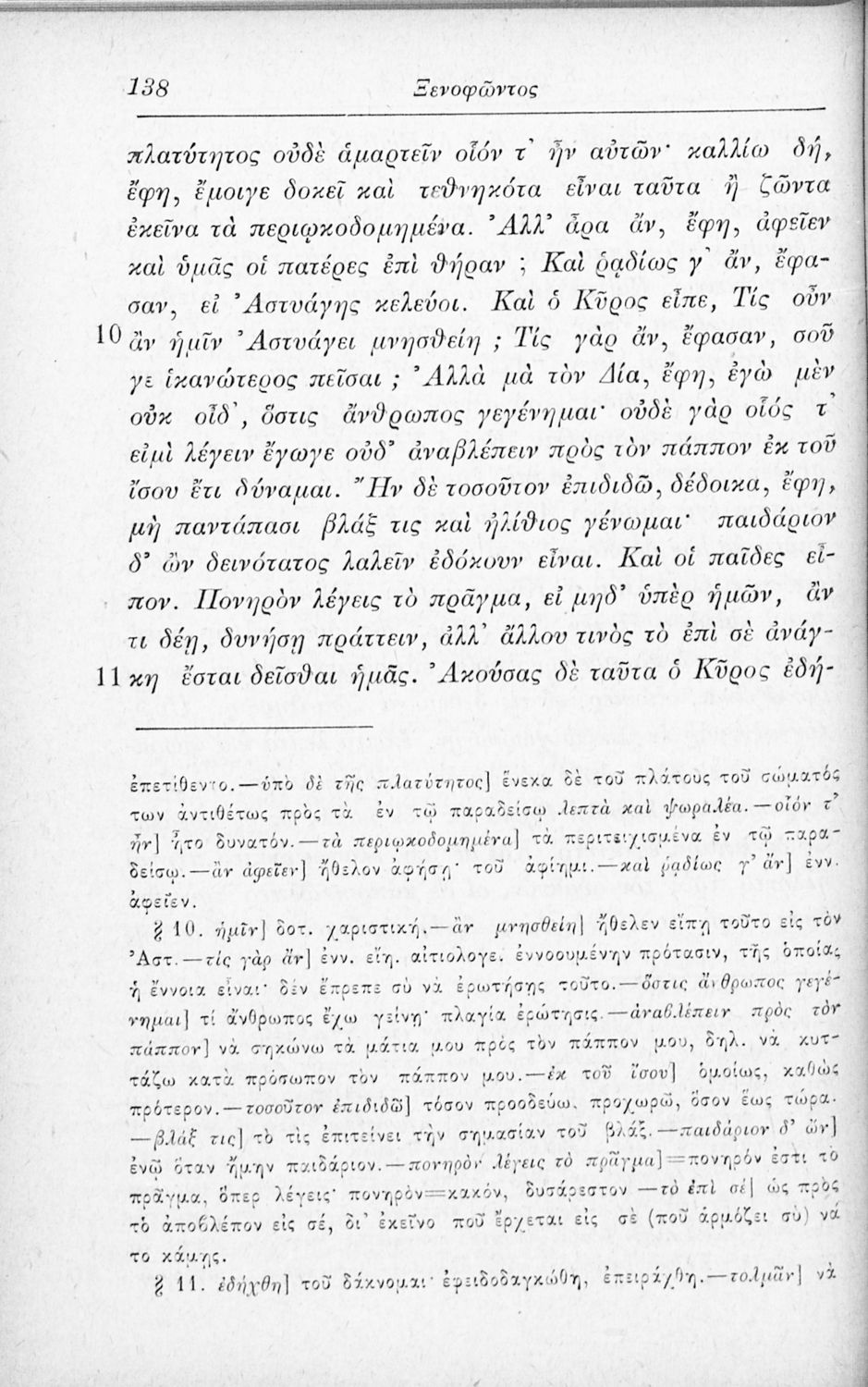 Σχολικό εγχειρίδιο Αρχαίων Ελληνικών για τα Ελληνικά Σχολεία και Παρθεναγωγεία που περιλαμβάνει αποσπάσματα από τα έργα του Ξενοφώντα Ελληνικά και Κύρου Παιδεία και λεξικολογικές παρατηρήσεις.