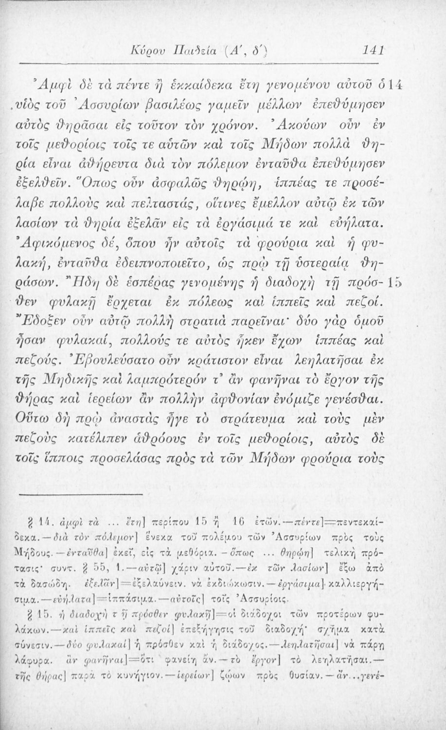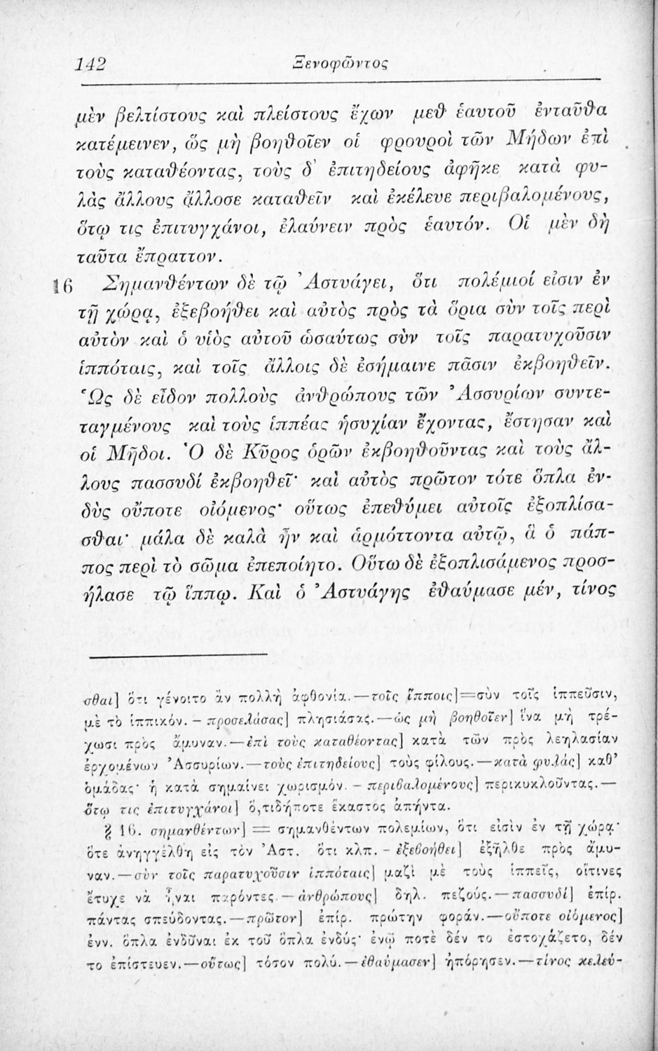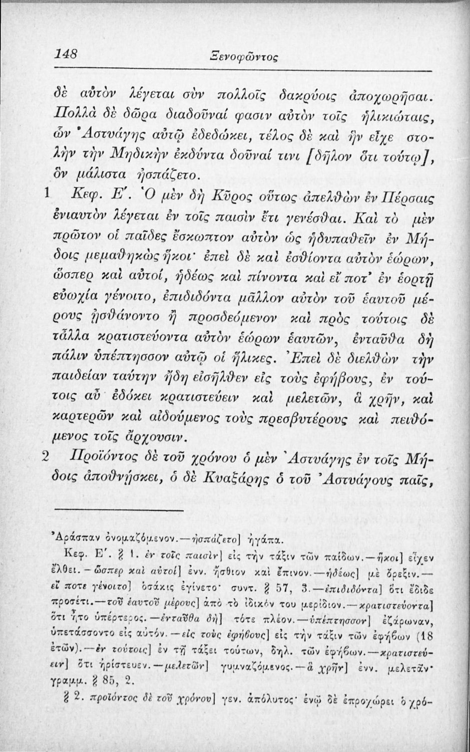 Σχολικό εγχειρίδιο Αρχαίων Ελληνικών για τα Ελληνικά Σχολεία και Παρθεναγωγεία που περιλαμβάνει αποσπάσματα από τα έργα του Ξενοφώντα Ελληνικά και Κύρου Παιδεία και λεξικολογικές παρατηρήσεις.
