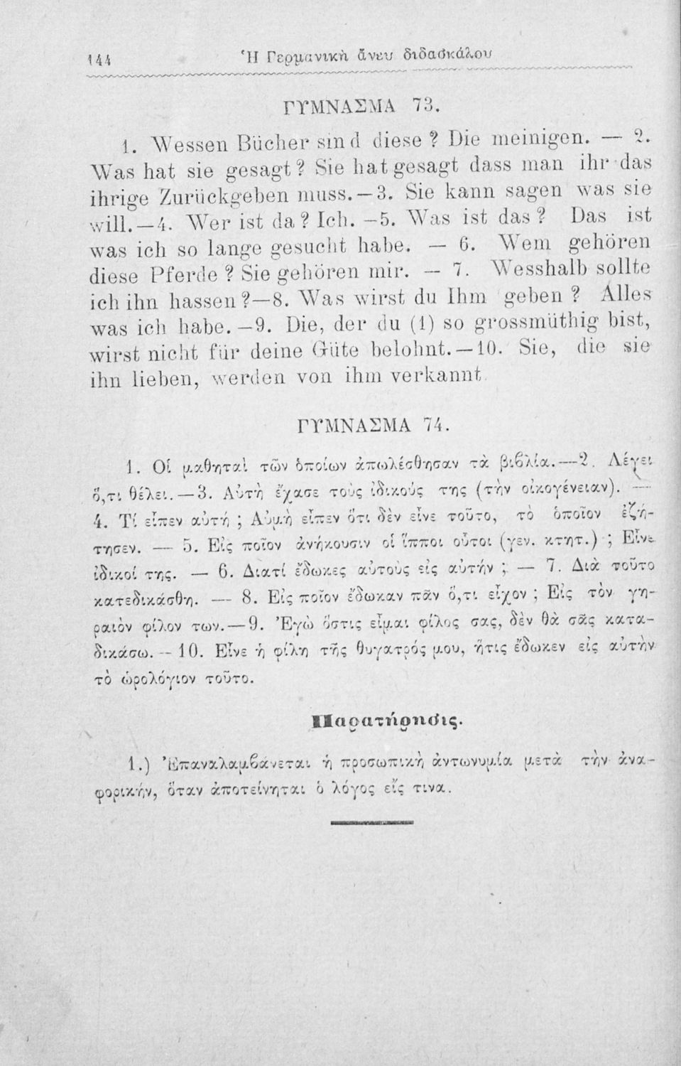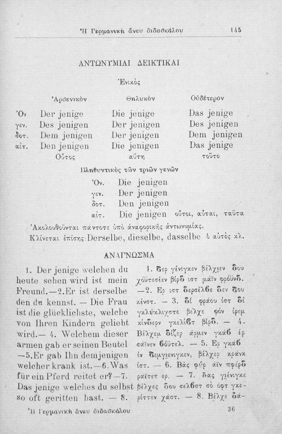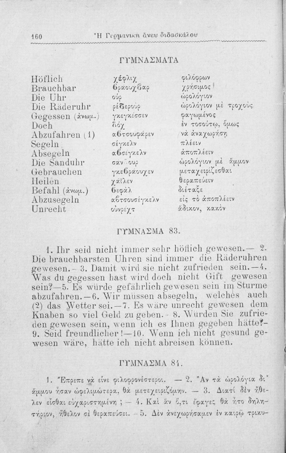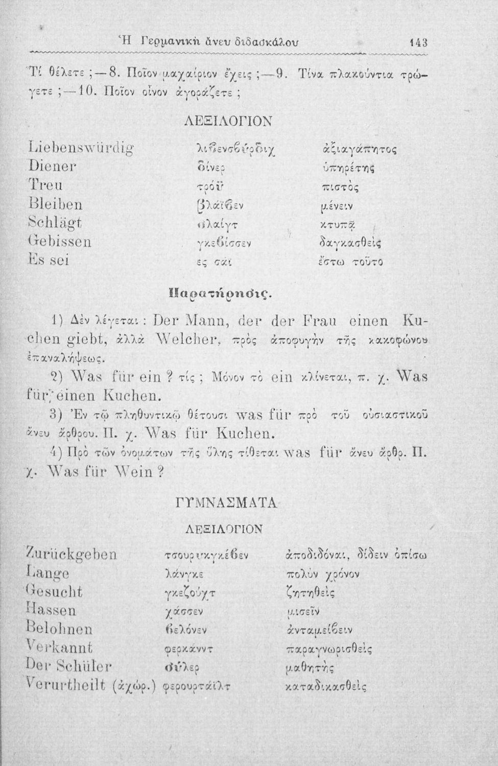 Πρόκειται για εγχειρίδιο που στόχο είχε την εκμάθηση, μέσω της μεθόδου της αυτοδιδασκαλίας κατά το σύστημα Traut-Berlitz-Dr Wogasli, των γραμματικών και συντακτικών φαινομένων της Γερμανικής γλώσσας σε ...