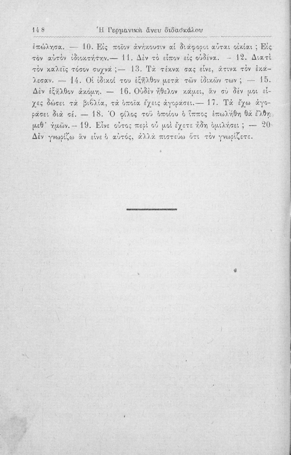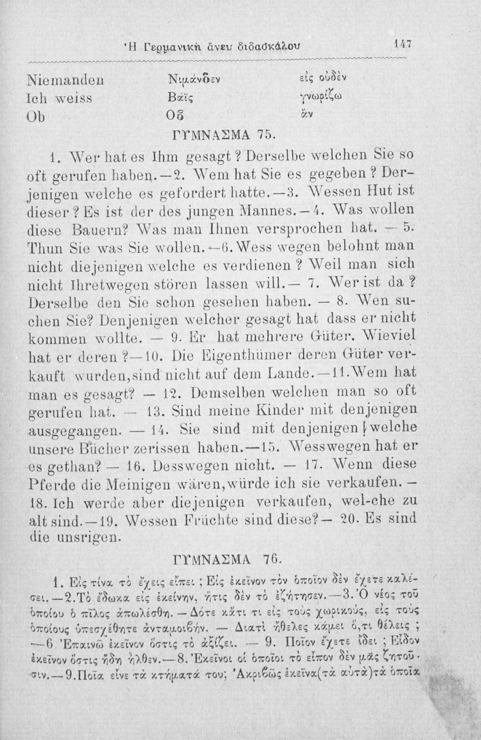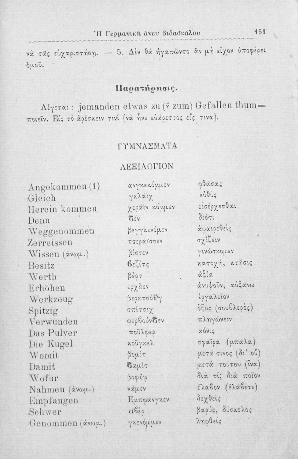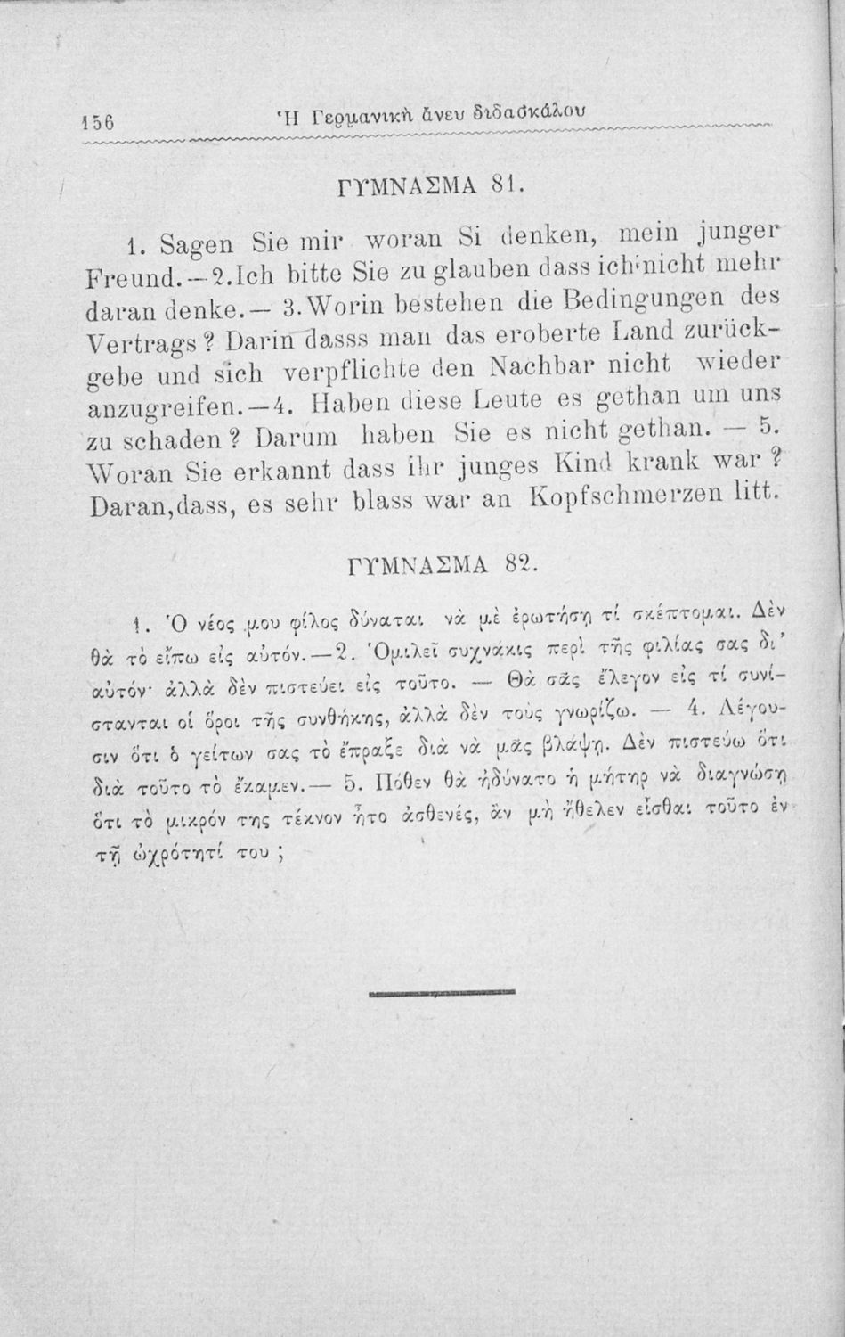 Πρόκειται για εγχειρίδιο που στόχο έχει την εκμάθηση της γερμανικής γλώσσας άνευ διδασκάλου. Το βιβλίο χωρίζεται σε δύο μέρη. Στο πρώτο μέρος, περιλαμβάνει και παρουσιάζει τα διάφορα μέρη του λόγου, τη σωστή ...