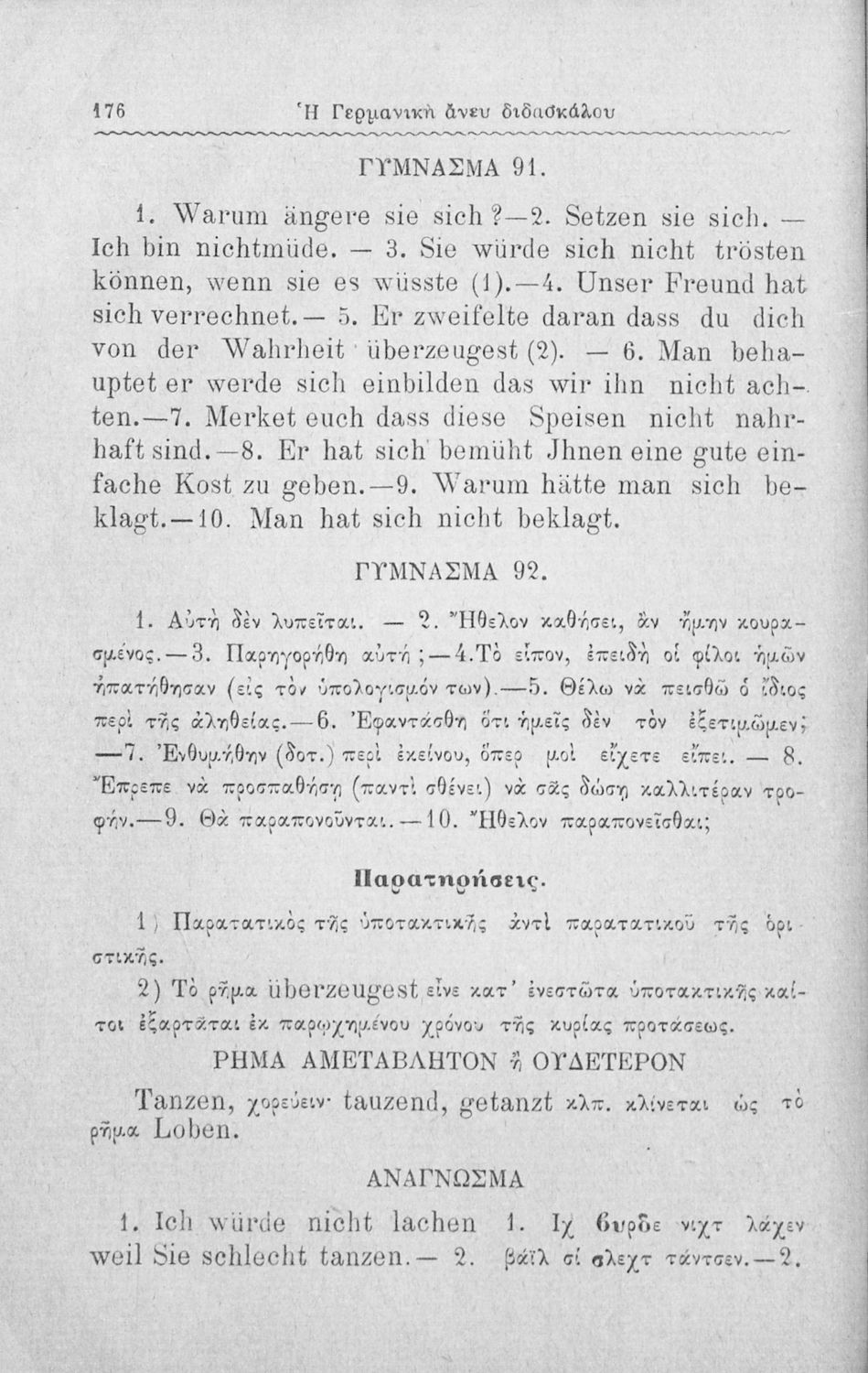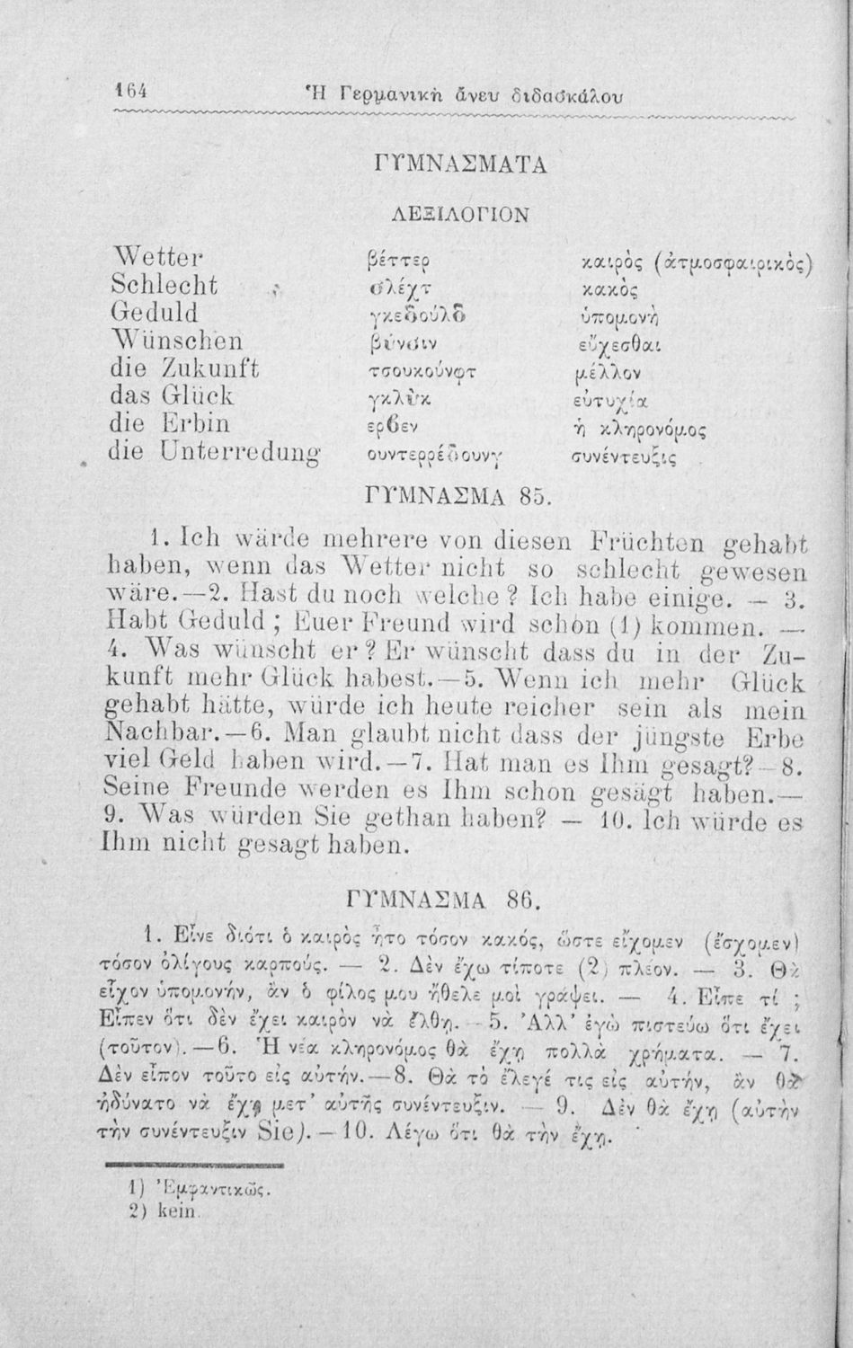 Πρόκειται για εγχειρίδιο που στόχο είχε την εκμάθηση, μέσω της μεθόδου της αυτοδιδασκαλίας κατά το σύστημα Traut-Berlitz-Dr Wogasli, των γραμματικών και συντακτικών φαινομένων της Γερμανικής γλώσσας σε ...