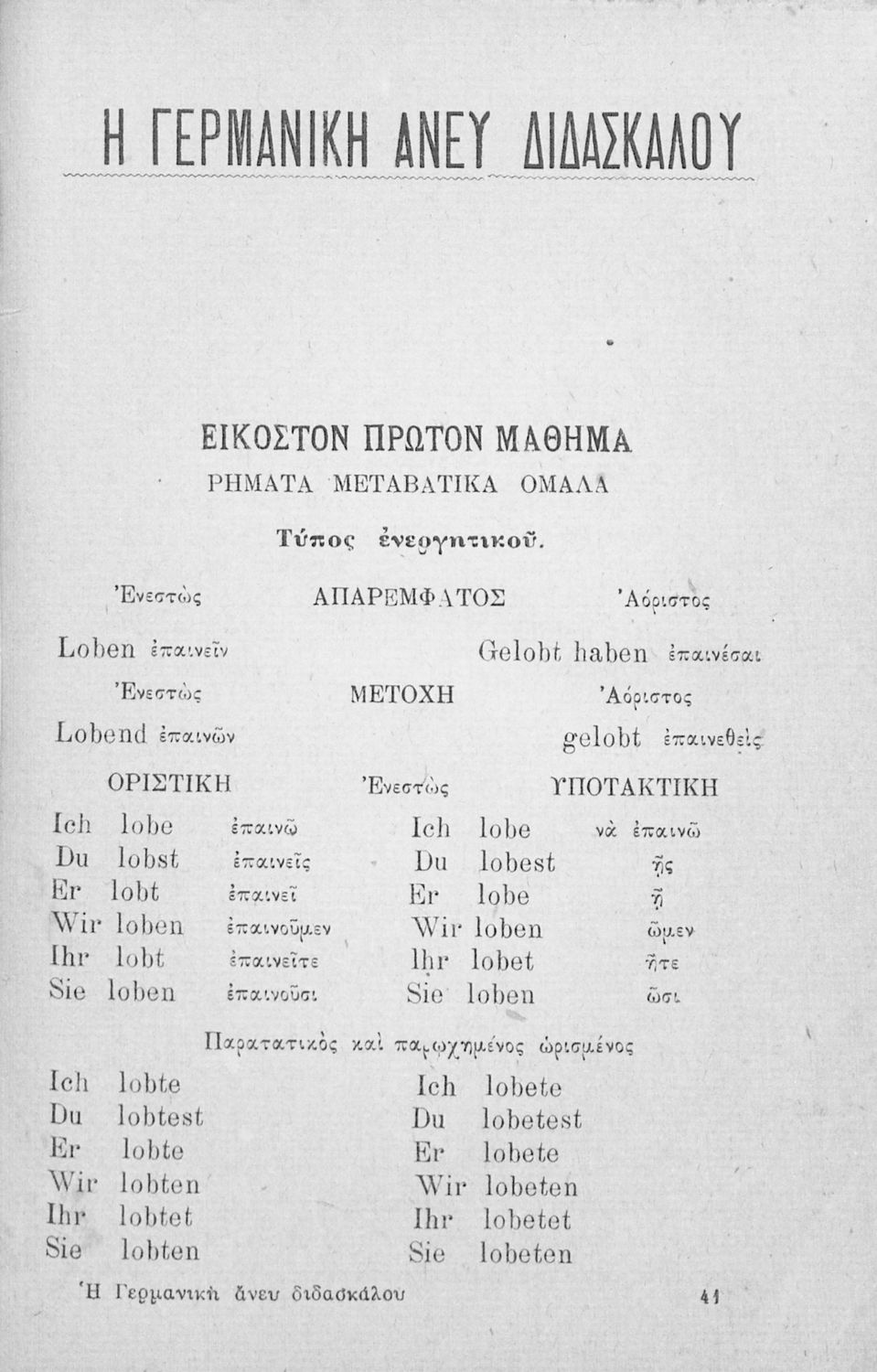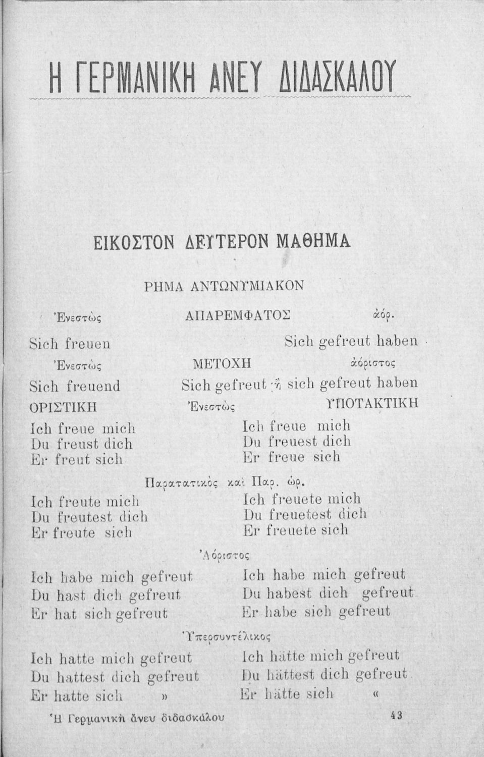 Μαθητικό Βοήθημα αυτοδιδασκαλίας Γερμανικών που περιλαμβάνει γραμματική, σύντομα κείμενα για την εκμάθησή της και λεξιλόγιο.