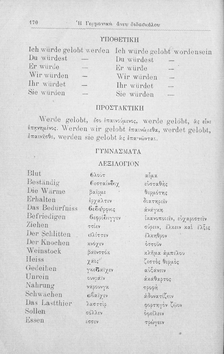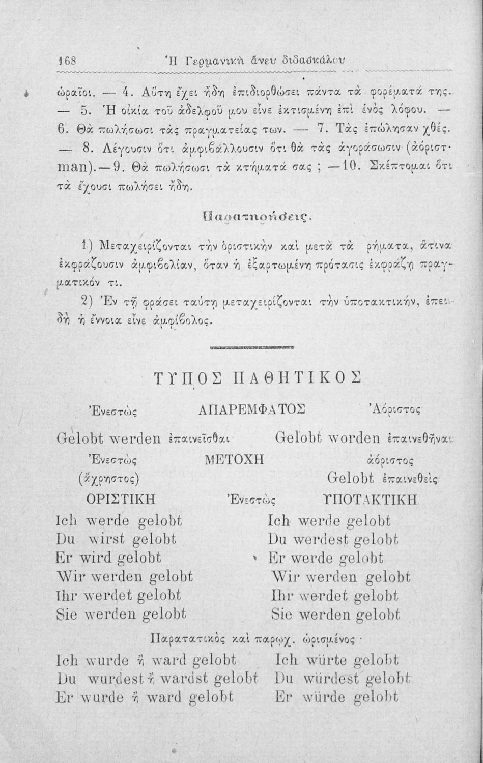 Σχολικό εγχειρίδιο Γ΄ και Δ΄ Δημοτικού που περιέχει τη γραμματικής της νέας ελληνικής. Την έκδοση επιμελήθηκε ο Γ. Λογοθέτης, τέως διευθυντής του επταταξίου δημ. Τμήμ.της Ευαγγελικής Σχολής.