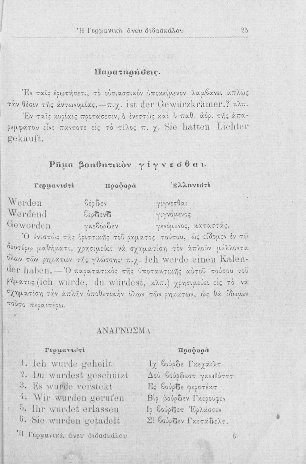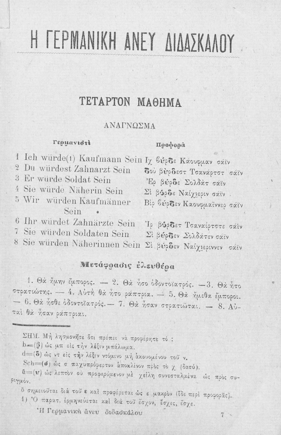 Σχολικό εγχειρίδιο Γ΄ και Δ΄ Δημοτικού που περιέχει τη γραμματικής της νέας ελληνικής. Την έκδοση επιμελήθηκε ο Γ. Λογοθέτης, τέως διευθυντής του επταταξίου δημ. Τμήμ.της Ευαγγελικής Σχολής.